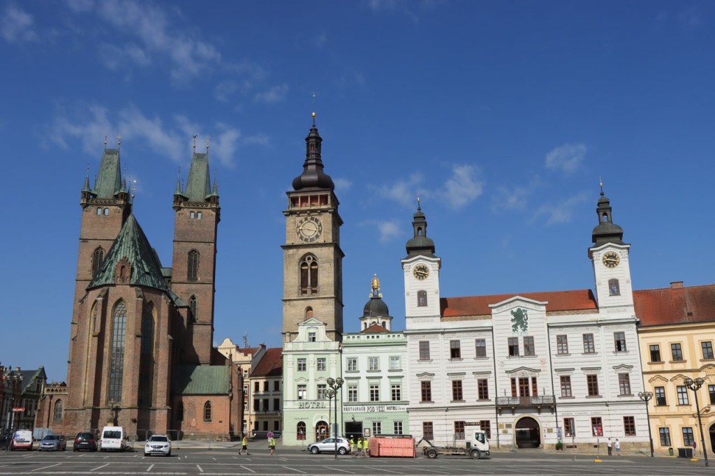 Het weer van deze morgen leek wel een doorslag van dat van gisteren, na een natte nacht volgde een erg wisselvallige voormiddag, met echter als bonus nog wat behoorlijk pittige rukwindjes er bovenop. Nu, ik was al blij dat er deze voormiddag geen stortbuien uitvielen want daar zag het er soms echt wel naar uit. Kutna Hora bleek inderdaad wel een bezoekje waard. Als stadje op een heuvel en met smalle kasseistraatjes volgens een ingewikkeld stratenplan was het ook wel een moeilijk stadje om met de zware fiets te bezoeken. Toen ik klaar was met Kutna Hora ging ik terug naar het noorden, richting de Elbe. Bij Tynec … vond ik het spoor van de Elbe weer terug, letterlijk het spoor dus. Ik besloot er niet aan te beginnen en naar de weg te keren, die was trouwens ook rustig genoeg. Even voor Hradec Kralove ging ik opzoek naar een camping maar ik kon ze niet vinden. Uiteindelijk bleek ik een spookcamping na te jagen, er stonden wel enkele caravans in het wild maar van een camping kon er geen sprake zijn. Ik moest dus nog wat verder om aan de andere kant van Hradec Kralova een echte camping te vinden. Terwijl de stad passeerde was ik eigenlijk wel een beetje klaar met naar een camping te rijden en toen ik een hotel zag dat me wel geschikt leek, ging ik even informeren naar een kamer. Ze waren echter volzet, het was dus sowieso geen optie. Ik reed dus verder voorbij de stad naar de camping. Het is weer één van die campings met een te zwak netwerk, er is wel wifi maar je slaagt er niet in om verbinding te maken. Het netwerk is trouwens niet het enige dat nogal zwak is op de camping, het sanitair is ook wel erg beperkt voor de grote van de camping. Voor een camping waar ik zolang naar toe reed viel ze toch nogal tegen. Toch blijkt ze erg populair, vooral bij families. Kinderen hebben hier ruimte en activiteit genoeg om zich dagen veilig bezig te houden.