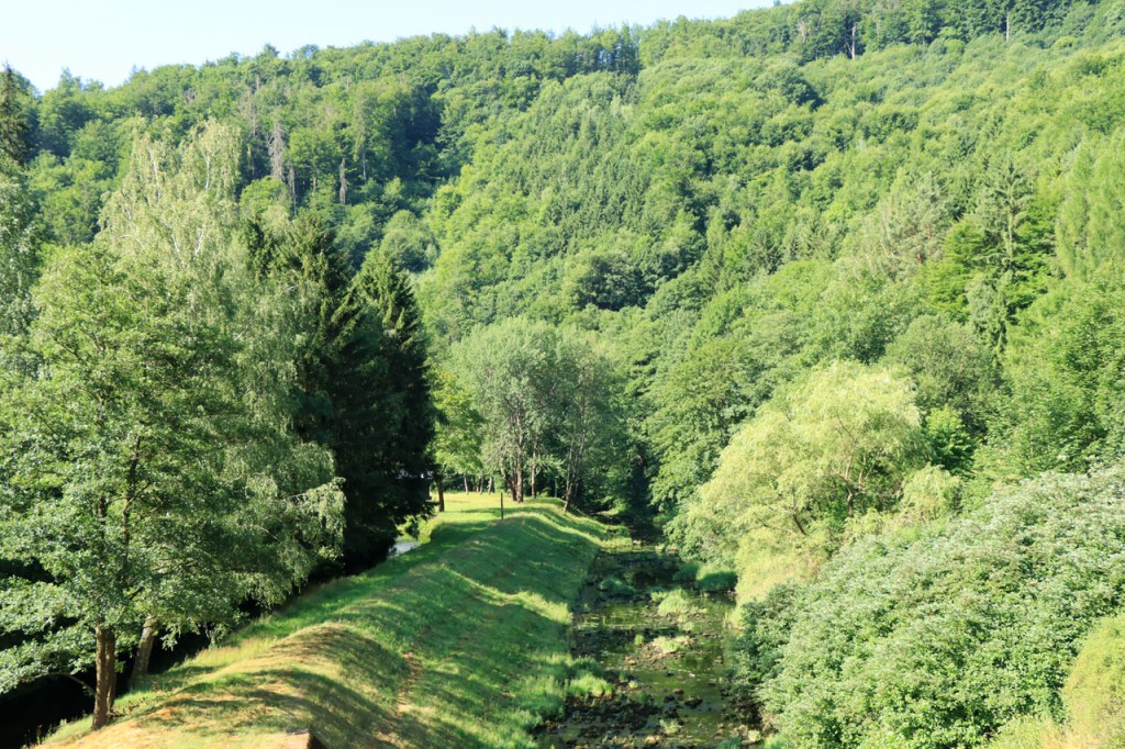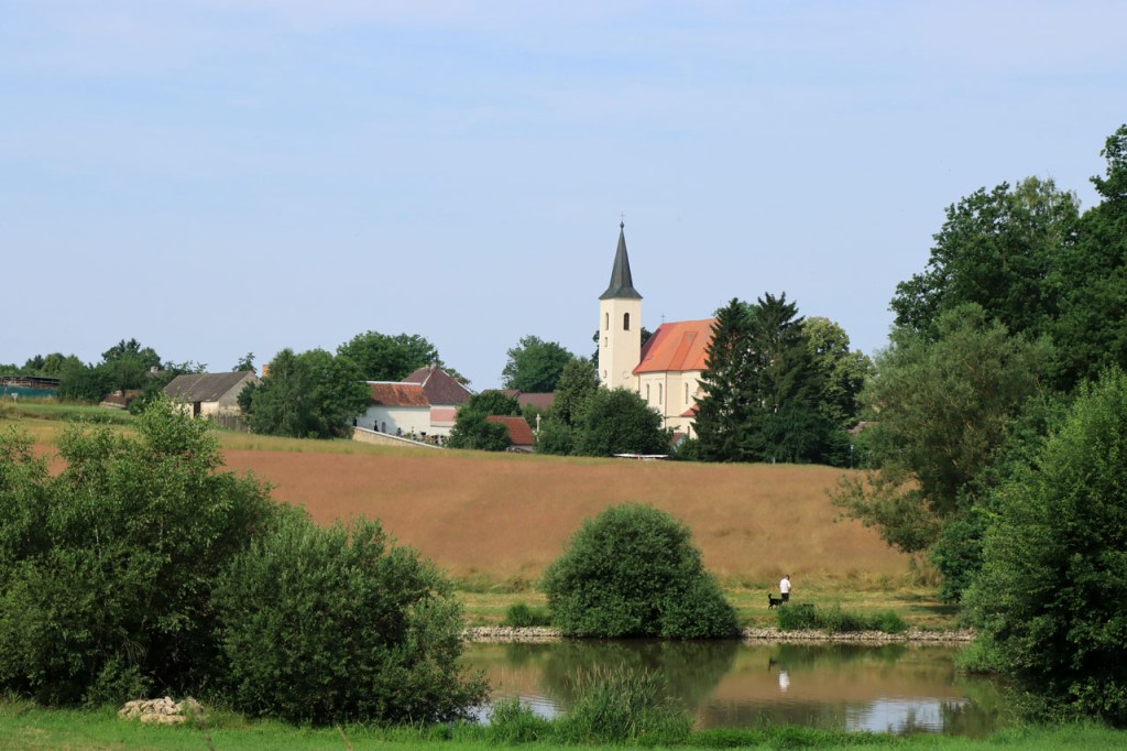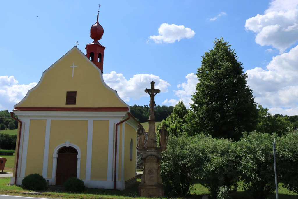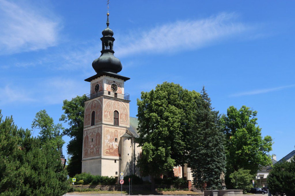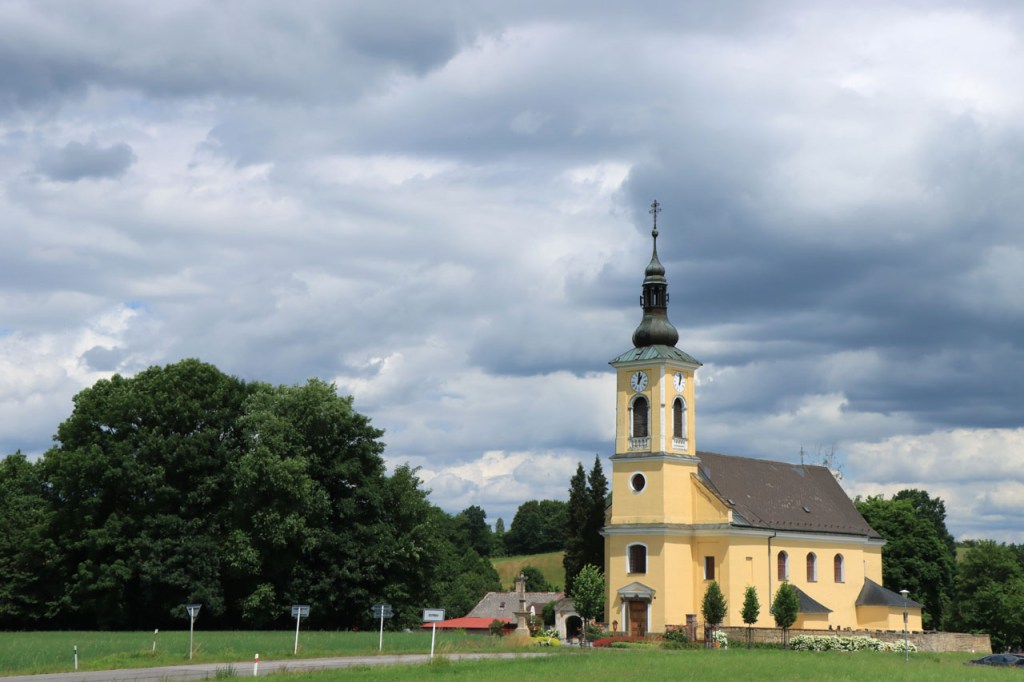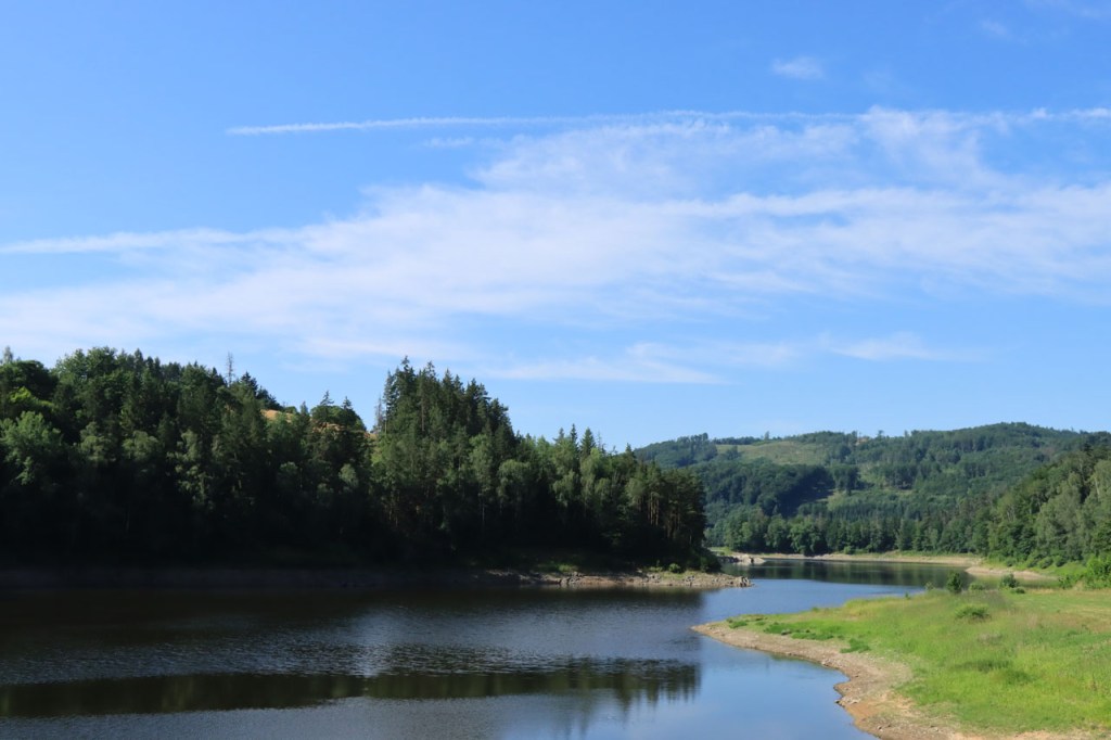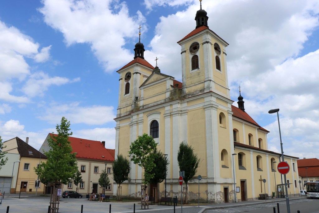 Vandaag weer tropisch. Omdat ik niet langs dezelfde weg wilde vertrekken als dat ik gekomen was, nam ik de ietwat langere route langs de andere kant. Natuurlijk moest ook langs hier weer geklommen worden natuurlijk, stevig geklommen zou blijken. Het kabbelende riviertje voor de deur zou iets verder een stevig stuwmeer blijken te zijn. Ik passeerde vandaag langs Nove Mesto. Nove Mesto is misschien niet de grootste culturele naam in Tsjechië maar wel één van de sportiefste. Elk jaar passeert hier het circus van de wereldbeker mountainbike en in de winter komt het biatlon wel eens langs. Bij het naderen van de stad kon ik in de verte ook nog een skischans opmerken. Verder is het ook wel een best leuk stadje natuurlijk, met een opvallend kerkje. In frissere omstandigheden zou ik mogelijk even langs het biatlonstadion gepasseerd zijn maar het lag een drietal kilometers de verkeerde kant uit, en waarschijnlijk ook nog wel een stuk de berg op, en na de zware rit van gisteren en de stevige start van vanmorgen had ik de energie niet voor die extra inspanning. Ik deed in Nove Mesto wel een stevige poging om dat energiepeil terug wat op te krikken, met een dubbele koffie en een lekkere, stevige wafel 🙂 . De zwaarste beklimmingen waren na Nove Mesto wel achter de rug maar het bleef wel de hele tijd op en neer gaan en elke stijging was weer lastig. Al ging het wel stilaan terug beter, dankzij de koffie en de wafel? 😉 Een potentiële camping, zonder garanties want die heb je eigenlijk nooit, zou vandaag weer erg ver worden dus had ik al op voorhand beslist om, indien mogelijk, naar een hotel uit te kijken. Nove Mesto vond ik na 38 kilometer echt nog wel te vroeg maar verder bleek er niets te zijn. Na 77 kilometer zag ik wel iets maar dat bleek gesloten te zijn van 1 tot 10 juli, wat een idee om je hotel te sluiten in de piek van het hoogseizoen. Het zou dan in principe Jihlava worden, toch een behoorlijk grote plaats dus dat moest wel lukken. Ter plaatse bleek dat toch nog wel tegen te vallen maar ik vond uiteindelijk toch een plaatsje in het “Grand Hotel”. Het is waarschijnlijk een beetje meer Grand van naam dan van werkelijkheid maar ik heb wel een mooi kamertje voor een schappelijke prijs. Ik ben hier natuurlijk ook nog eens uit gaan eten, koken op mijn kamertje leek me geen goed idee 😉 , niet zomaar pizza maar echt eten met soep, aardappelen, groenten en vlees 🙂 . Ik ben ook vanavond weer best moe maar slaagde er toch in om de blog nog in orde te krijgen.