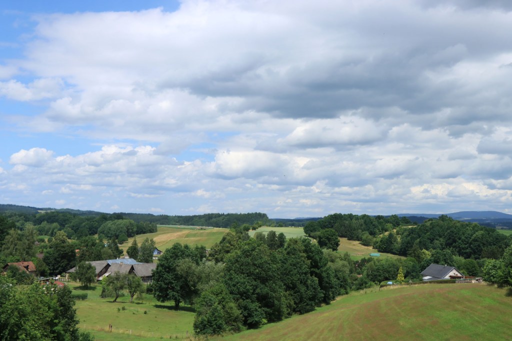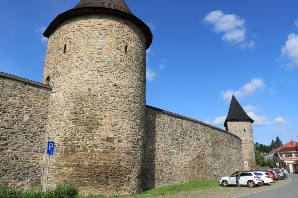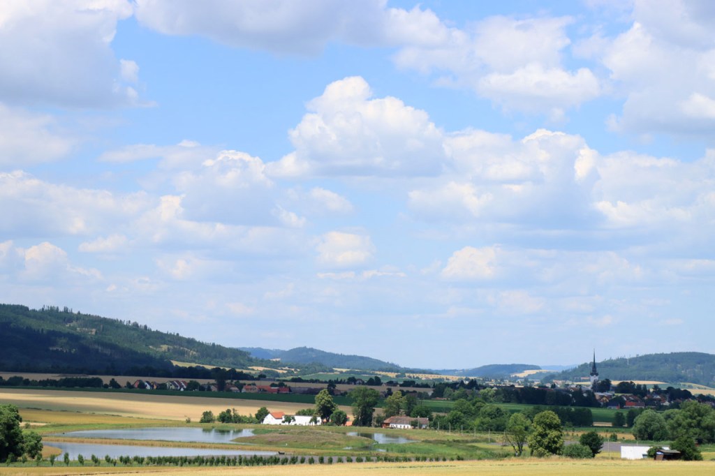 Het weer blijft tropisch, nog voor het vertrek zat ik al zwaar aan de drank 😉 . Het was vanmorgen de bedoeling van om Jindrichuv Hradec heen te rijden maar door een afslag te missen moest ik er toch doorheen. Het bleek een goede meevaller te zijn, best een mooi stadje. Ik moest daarna weer even mijn route herleggen. Even dacht ik om het “op zijn Belgisch” toch te proberen maar een risico van 12 Km leek me toch wat groot. Uiteindelijk maakte het in het geheel toch niet zo’n groot verschil, denk ik. Ondertussen zag ik het weer veranderen en werd het de vraag: waar en wanneer gaat het losbarsten en waar ben ik dan. Het zou voor mij tot één bui beperkt blijven, eerder kort maar toch wel vrij pittig. Omdat het ook nog even stevig ging waaien, ben ik toch maar even aan de rand van het bos gaan schuilen. Daar stond ik uit de wind en daardoor meteen redelijk droog. Nu ik in Tsjechië was moest ik toch zeker ook eens langs Tabor passeren. Net zoals Nove Mesto is Tabor niet de grootste culturele naam van Tsjechië maar sportief betekent hij, voor ons Belgen, toch ook wel wat. Om te beginnen is Tabor geen makkelijke stad om met de fiets te benaderen, met een kluwen van grote en snelle wegen eromheen. Als je het dan toch benadert hebt is het niet makkelijk om er met de fiets binnen te rijden, het ligt als een muur langs het water. Boven is het dan leuk en interessant maar toch wel veel minder indrukwekkend dan vele andere plaatsen. Bij het verlaten van Tabor viel me opnieuw de vele grote wegen en ook de commerciële centra rondom Tabor op, het lijkt dus vooral een industrieel en commercieel centrum te zijn. Op de camping werkt de wifi weer met een pop-up scherm waarop je de “terms” moet “agreeën” om verder te kunnen maar op mijn laptop verscheen dat scherm niet. Op mijn telefoon wel maar ook daar valt de verbinding telkens uit. Ik had dus de hoop alweer opgegeven, tot de pop-up plots toch verscheen. Het bleek zelfs plots een best goede verbinding te zijn. Er is ondertussen ook al behoorlijk wat meer dan dat ene buitje gepasseerd.