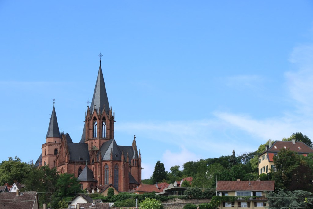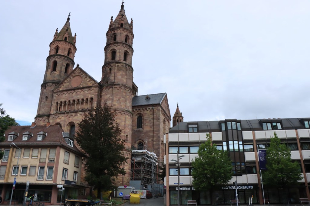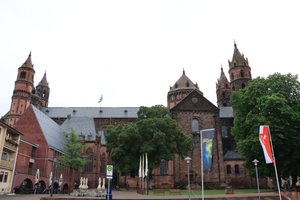Worms bleek toch iets minder interessant dan verwacht. Er was wel een grote Domkerk, vergelijkbaar met deze van Speyer, maar die was moeilijk in beeld te brengen, ook al omdat ze er aan het werken waren en het licht ook niet bijzonder was. Verder is er een bijzondere oude poort bij een erg nieuwe brug. Ik miste nog wel een leuk beeld van een wijngaard aan de rand van de stad met een kerk op de achtergrond. Net op die moment passeerde er een, voorlopig, laatste bui passeerde, waarin ik mijn camera niet tevoorschijn kom halen en wachten tot ze voorbij was leek me ook geen optie. Verder was Worms een moeilijk plaatsje om te verlaten.