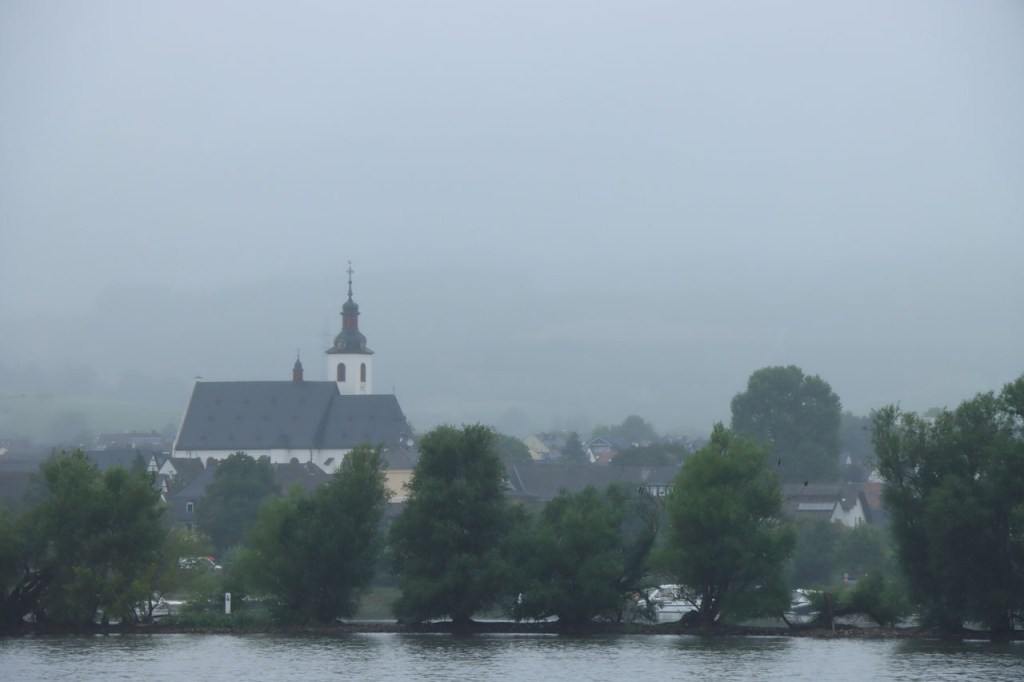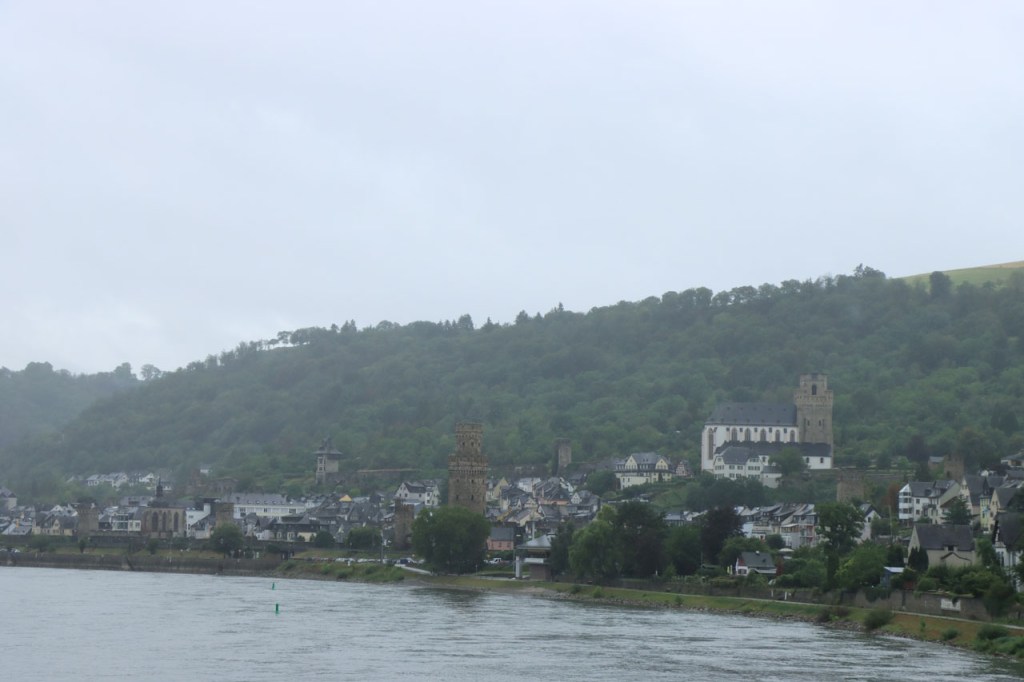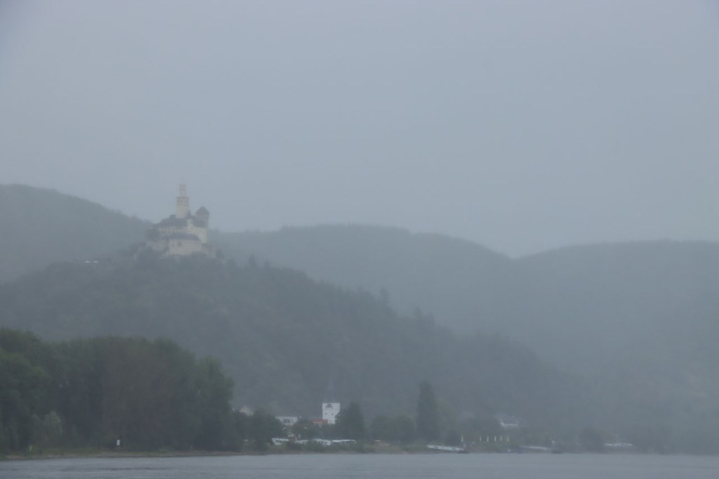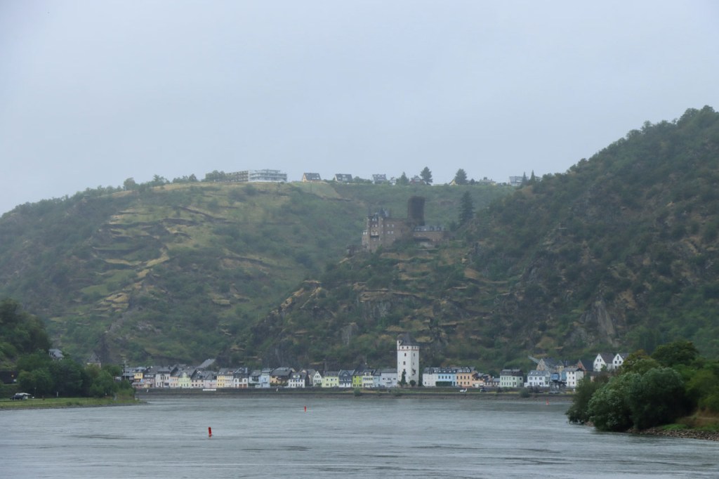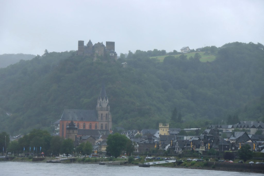 Vanmorgen opgestaan met regen en het zag er niet naar uit dat die direct ging stoppen, dat deed hij dan ook niet. Eén van de mooiste stukken Rijn kwam er aan en het zou een verregende dag worden 😦 . Slechts wanneer het al eens wat minder regende kon ik de camera bovenhalen en dan hopen om geen druppels op de lens te krijgen. Omhoog richten voor de torens en ruïnes op de bergkanten was ook dan uit den boze.