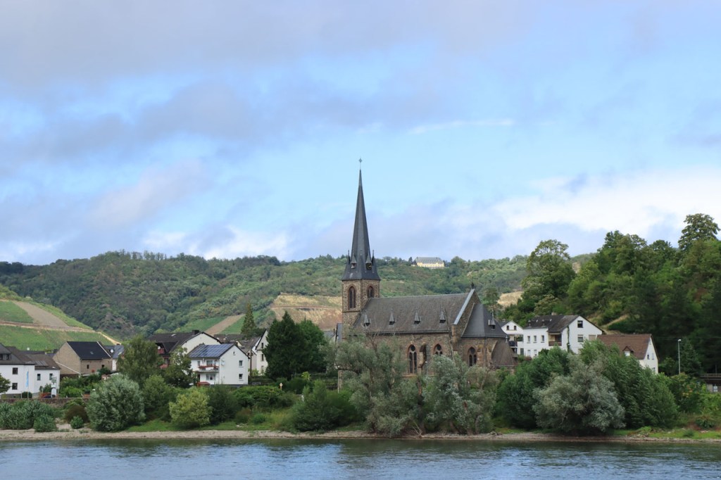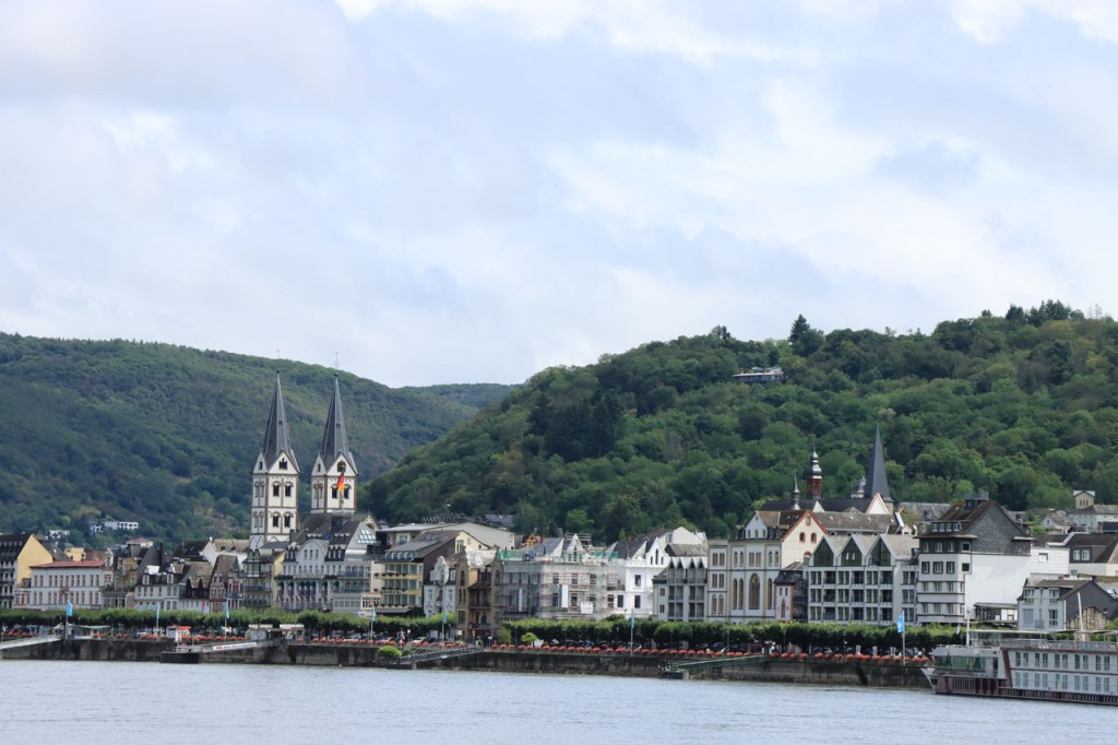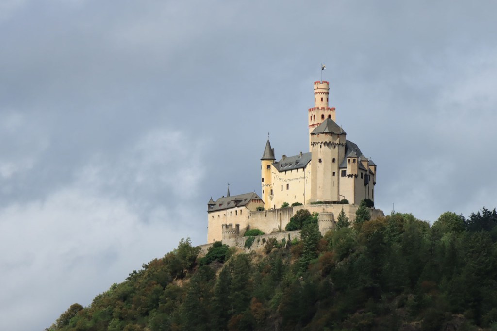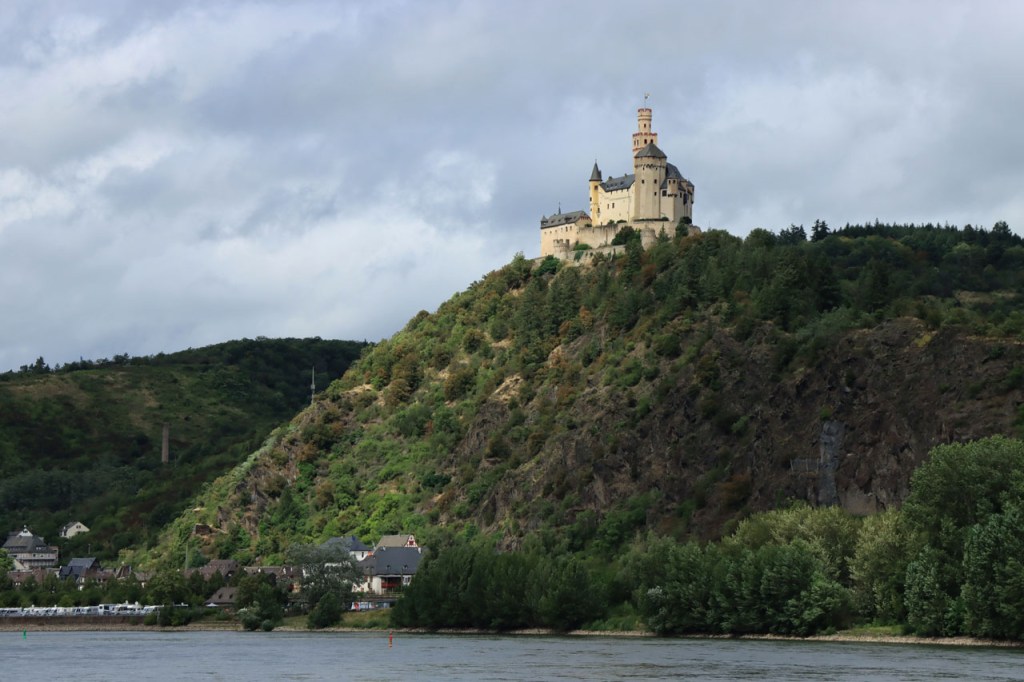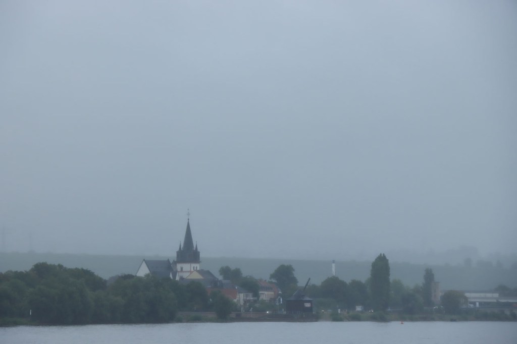 Vanmorgen opgestaan met regen en het zag er niet naar uit dat die direct ging stoppen, dat deed hij dan ook niet. Eén van de mooiste stukken Rijn kwam er aan en het zou een verregende dag worden 😦 . Slechts wanneer het al eens wat minder regende kon ik de camera bovenhalen en dan hopen om geen druppels op de lens te krijgen. Omhoog richten voor de torens en ruïnes op de bergkanten was ook dan uit den boze.