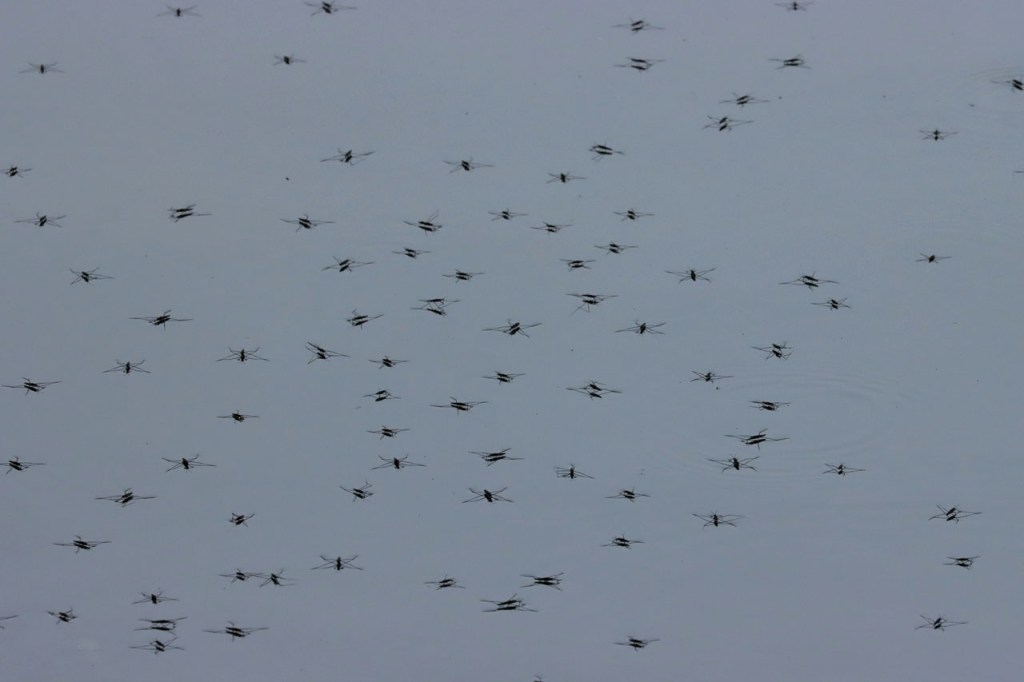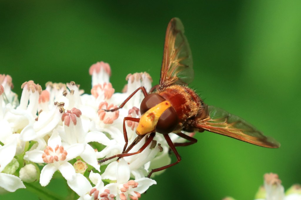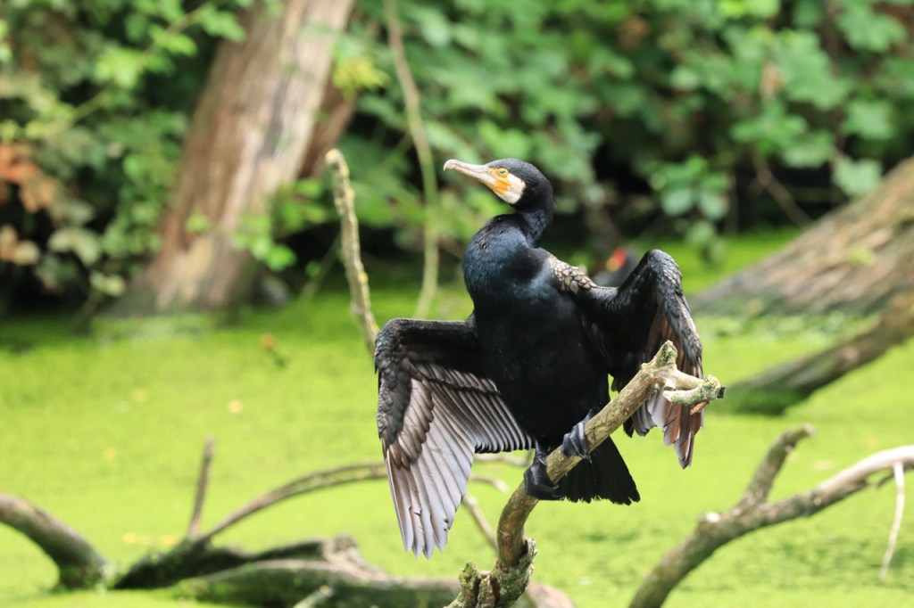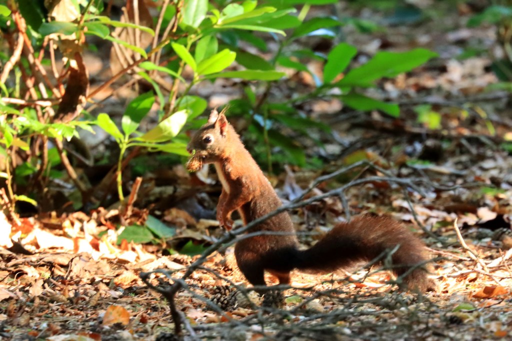 Vanmorgen begon ik met een ochtendwandelingetje. Het was echter weer niet te doen, ook de dreef bleek vergeven van de muggen. In het bos in de buurt van thuis viel het nog mee maar ik zou zeggen dat de Kempen met een muggenplaag zit in zijn bossen. Ik veronderstel dat het bij thuis nog meevalt omdat het een droger bos is, er zijn minder grachten of plassen in dat bos. De muggenplaag had ook wel zijn invloed op de foto’s, het is moeilijk rustig te blijven wanneer je door tientallen belaagd wordt als je even stopt voor een foto. Bovendien was het ook nog behoorlijk duister in de dreef, wat de foto’s ook al niet ten goede kwam. Het eekhoorn kon ik echter, ondanks wat gebrek aan scherpte, toch niet wegselecteren.