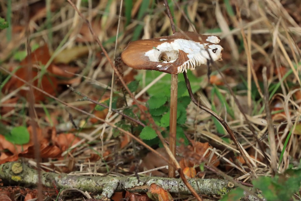 Ik schijn momenteel moeilijk terug echt op de fiets te geraken. Dat was vandaag wel de bedoeling maar dan kwamen er tegen de middag donkere wolken opzetten, met af en toe ook nog wat nattigheid daarbij. Niets dramatisch maar wel onaangenaam om te fietsen, het werd dus weer een wandeling. Ik nam daarbij wel de fiets om nog eens op verplaatsing te gaan. Het zou uitlopen op een, vooral, paddenstoelen wandeling.