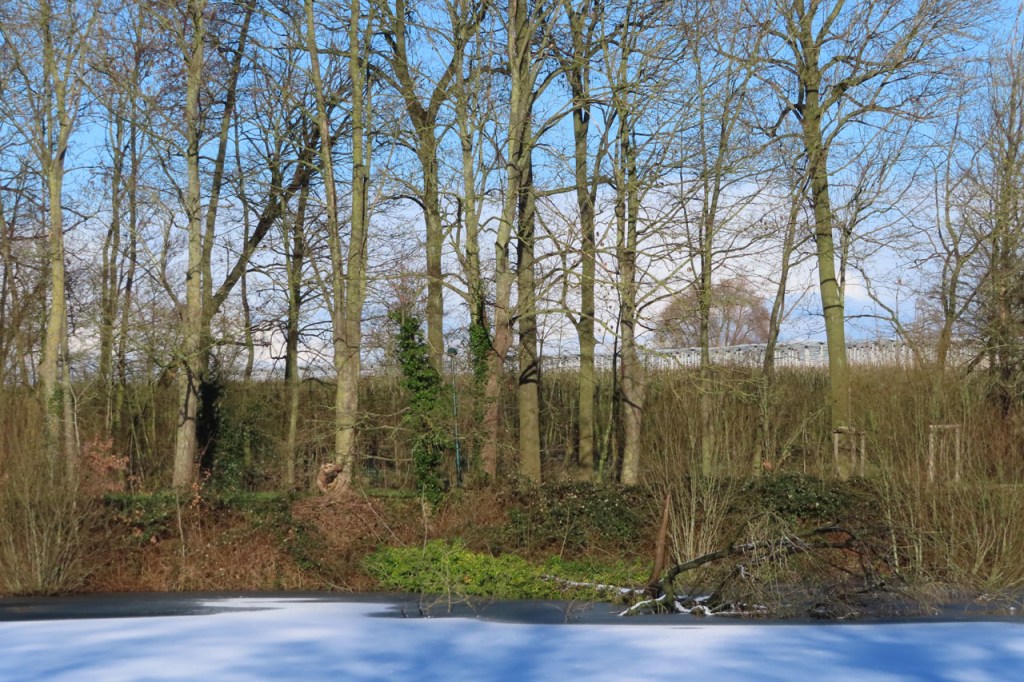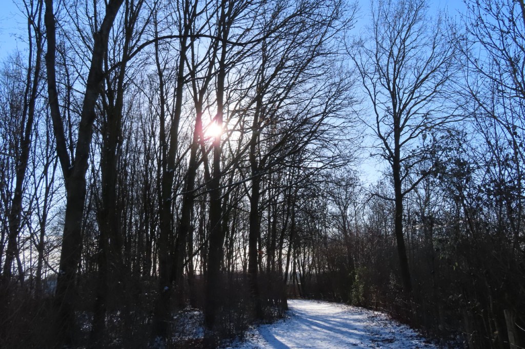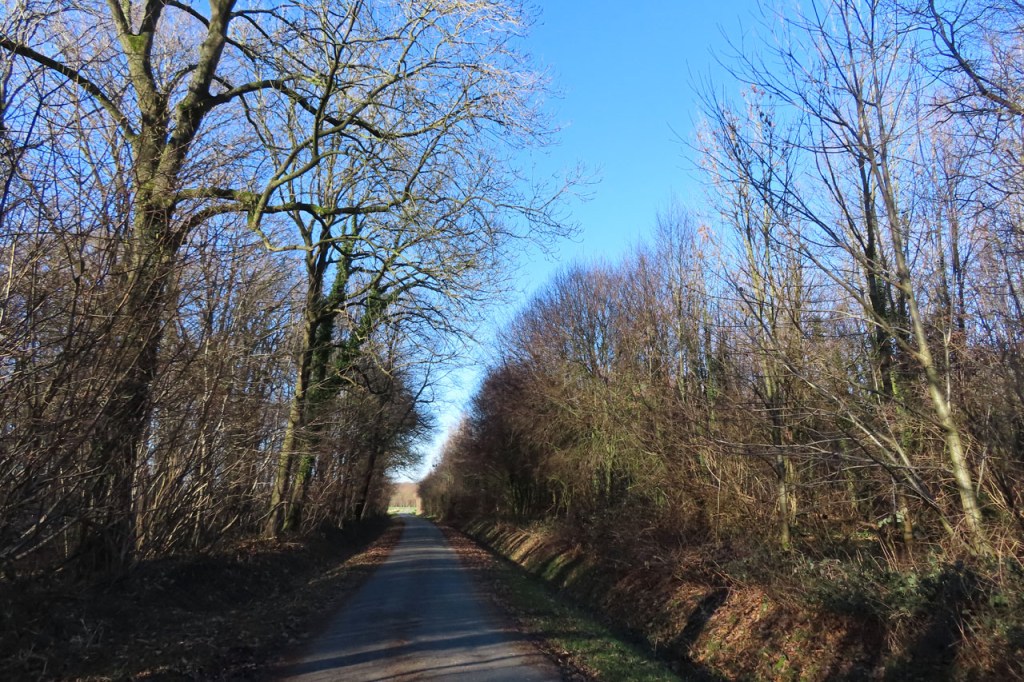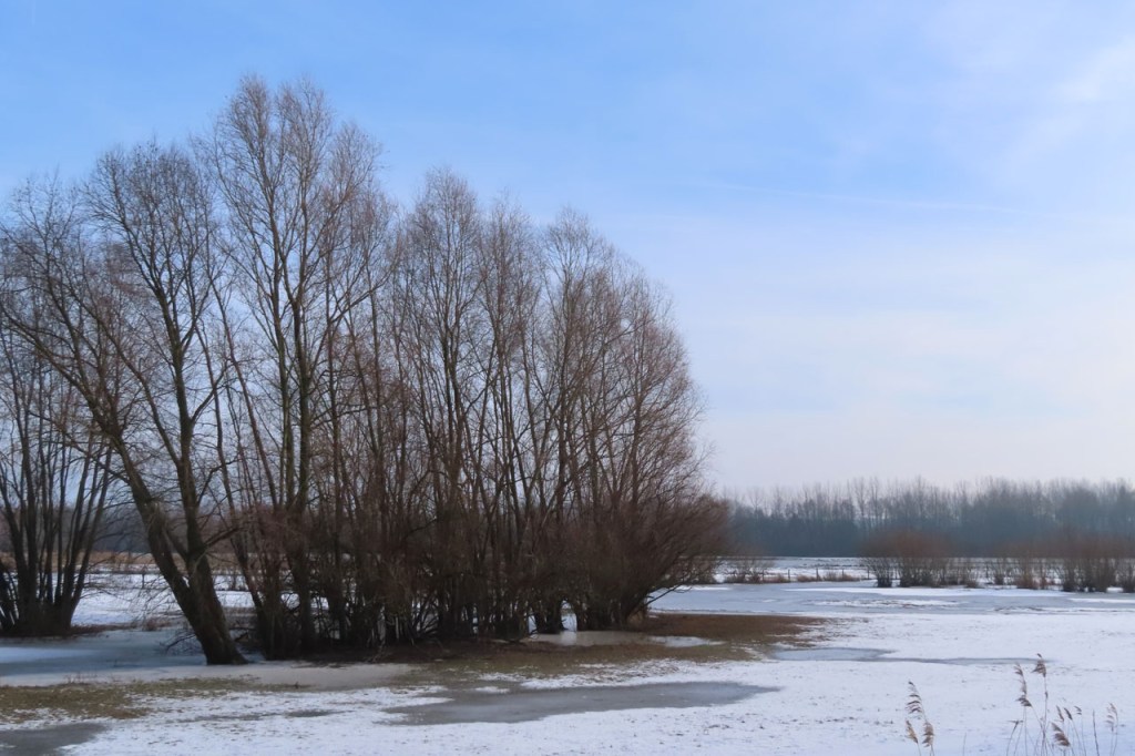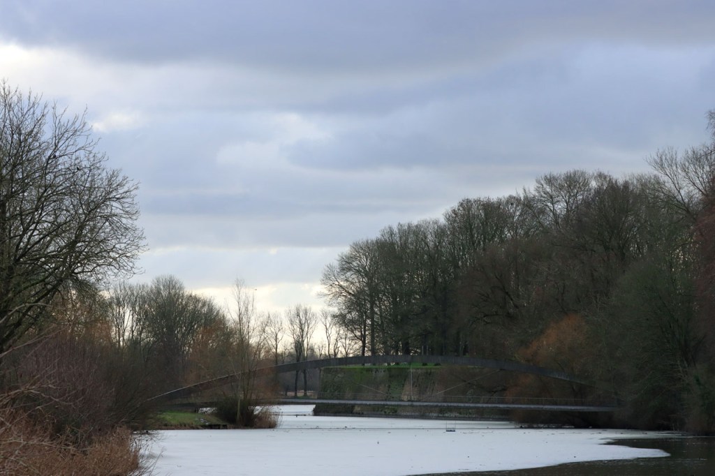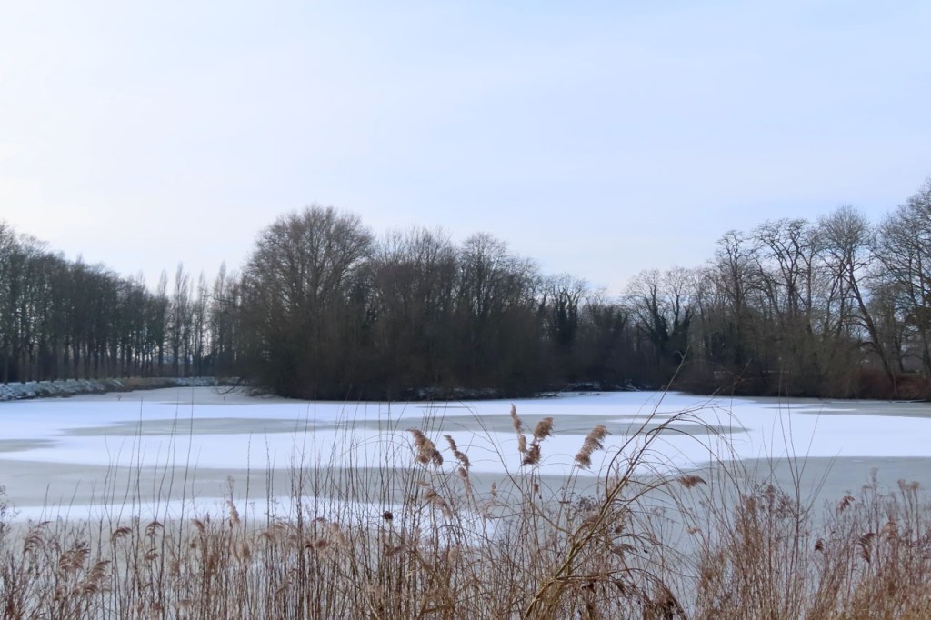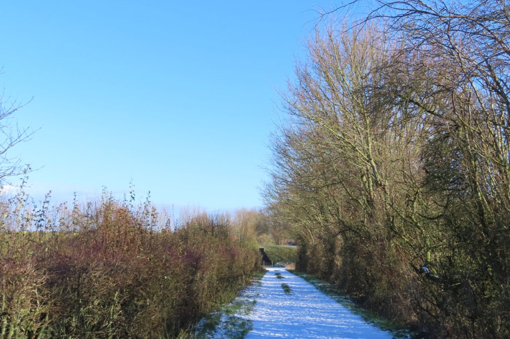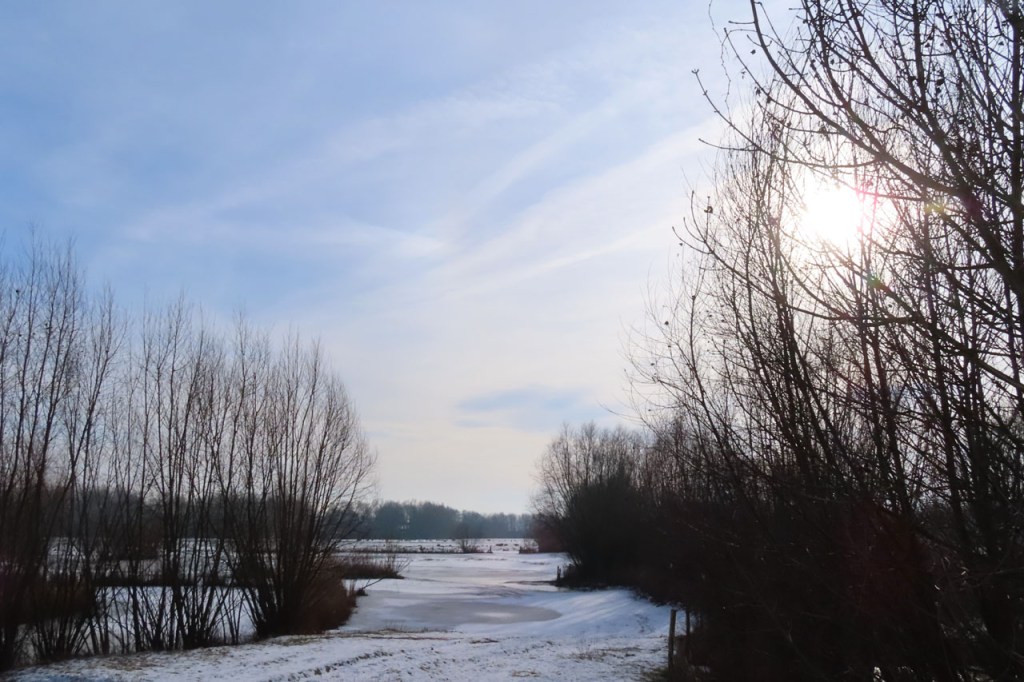 De dooi maakte het op sommige plaatsen al wat vettig maar op andere plaatsen, waar de sneeuw steviger tot ijs aangereden was, bleef het toch nog wat glad. Vooral het asfaltweggetje richting Palingbeek was precair, wat het daar trouwens altijd wel is in gelijke omstandigheden. Ik zag er ook een paar wielertoeristen het zekere voor het onzekere nemen en terug naar de grote weg draaien maar te voet was het nog net te doen.