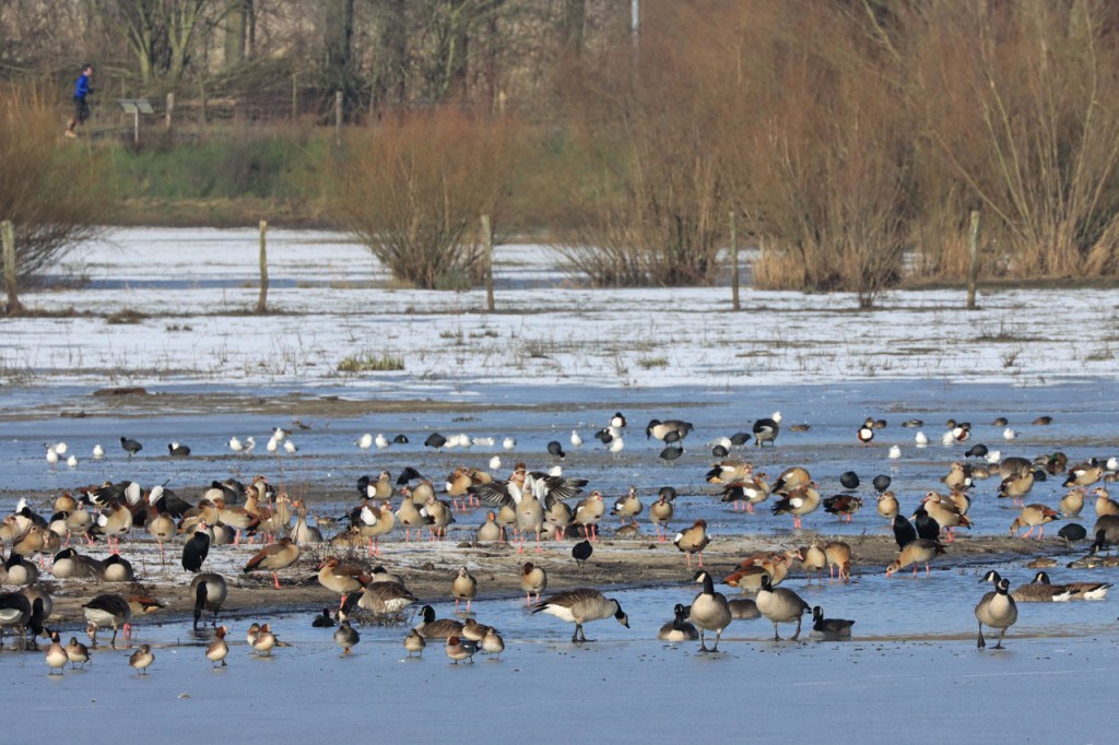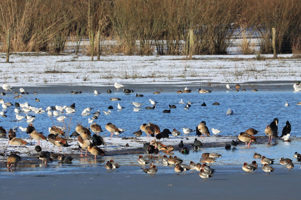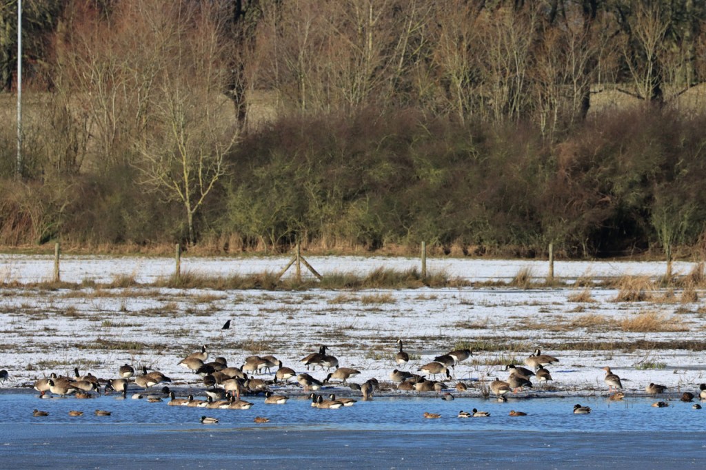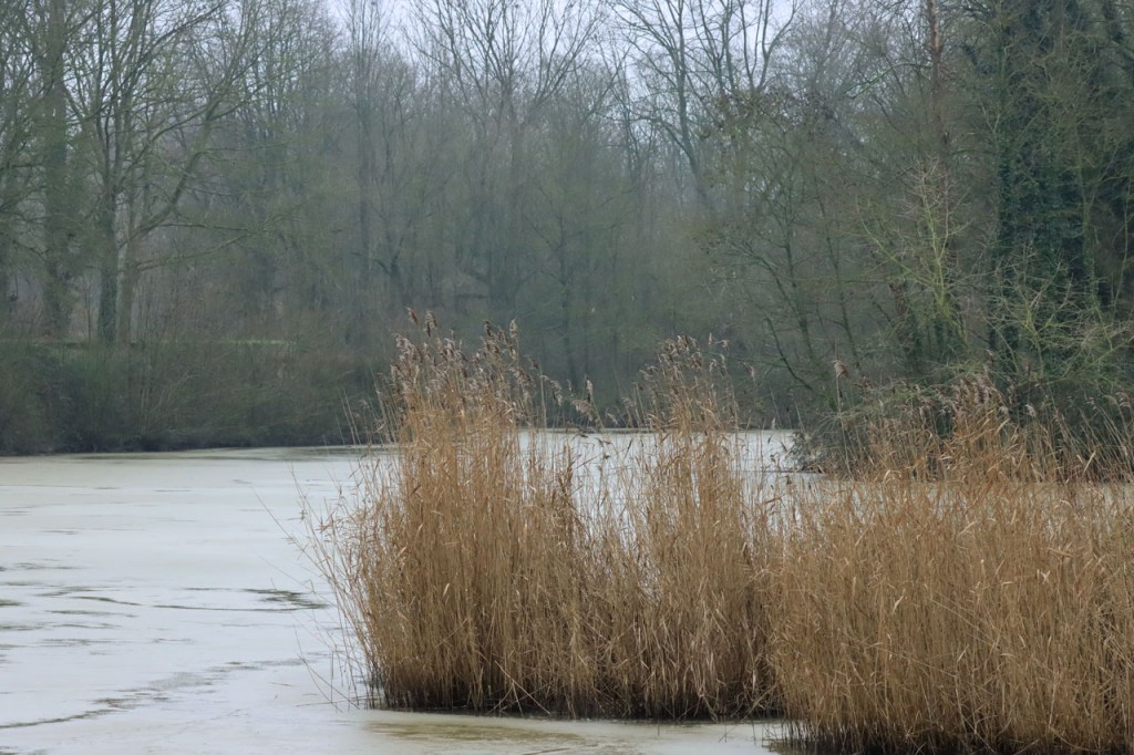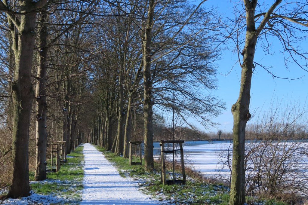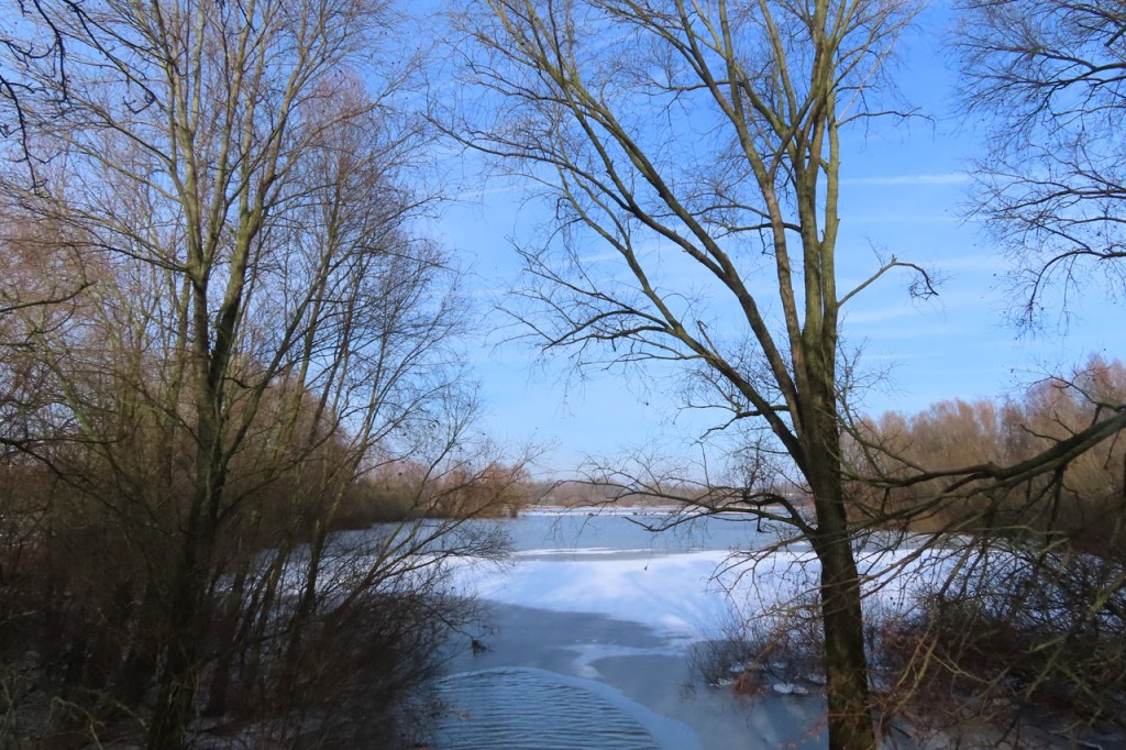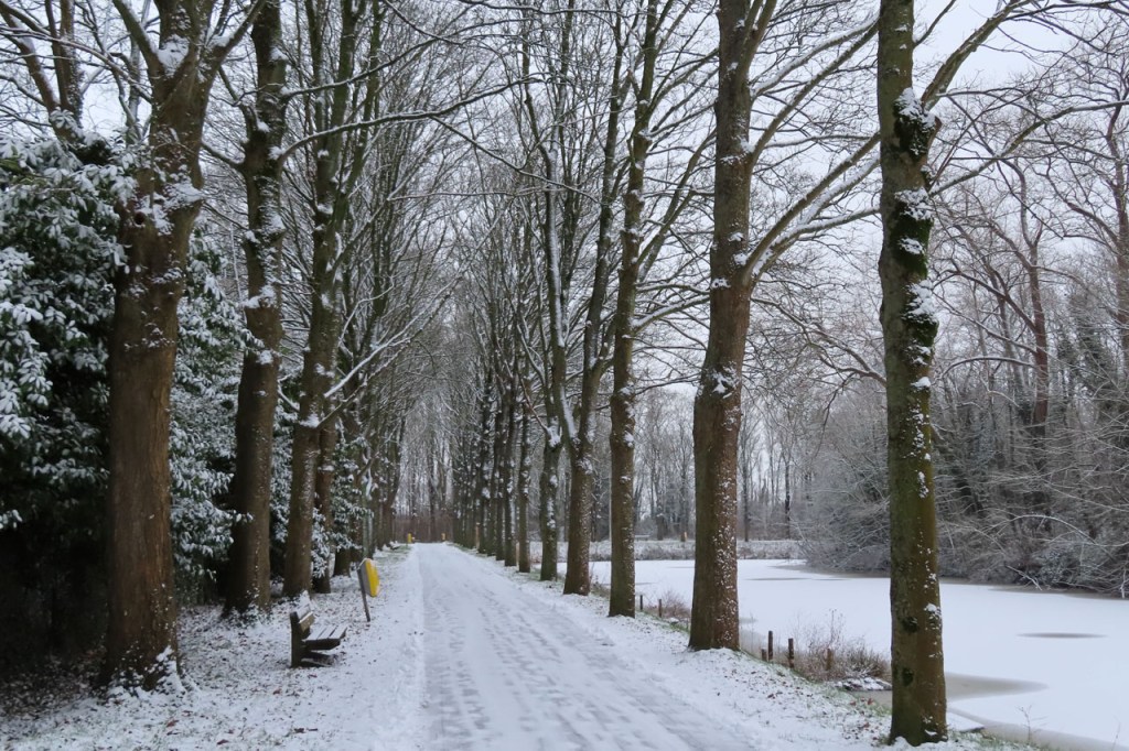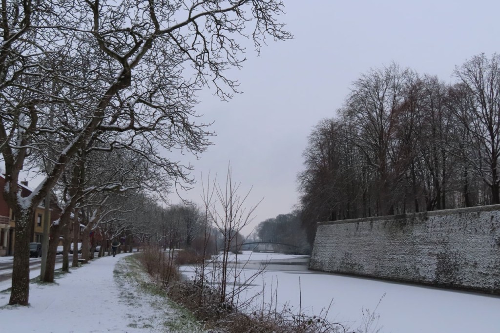 De dooi maakte het op sommige plaatsen al wat vettig maar op andere plaatsen, waar de sneeuw steviger tot ijs aangereden was, bleef het toch nog wat glad. Vooral het asfaltweggetje richting Palingbeek was precair, wat het daar trouwens altijd wel is in gelijke omstandigheden. Ik zag er ook een paar wielertoeristen het zekere voor het onzekere nemen en terug naar de grote weg draaien maar te voet was het nog net te doen.
