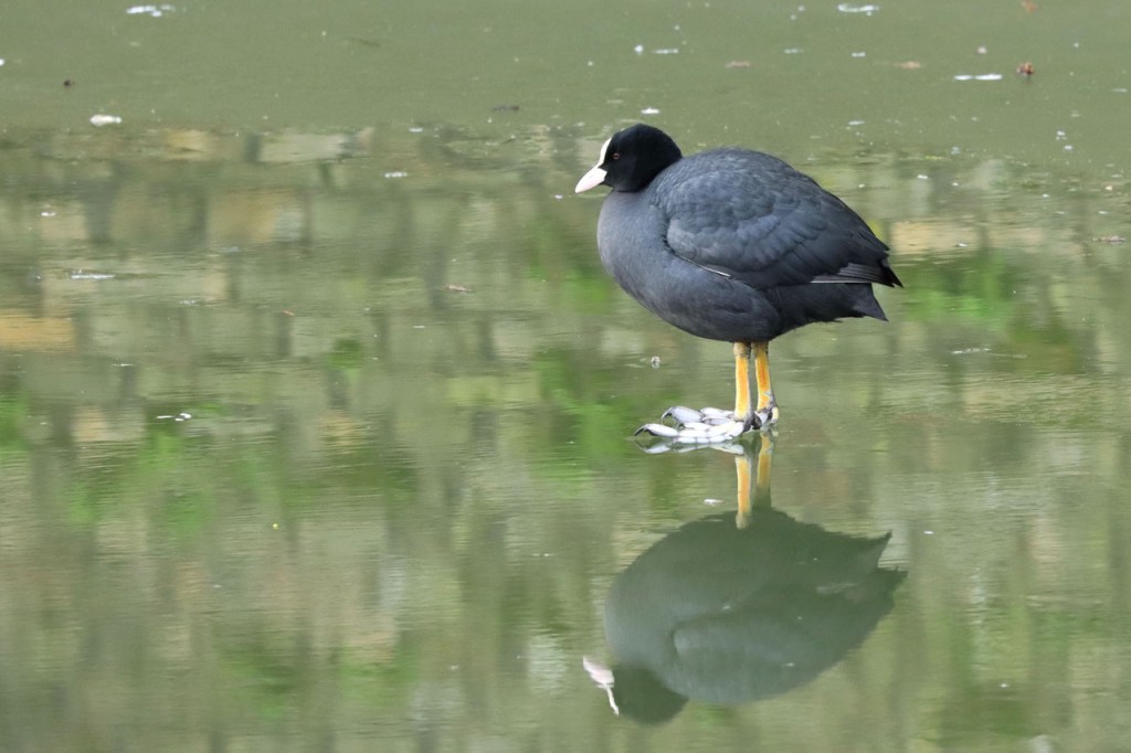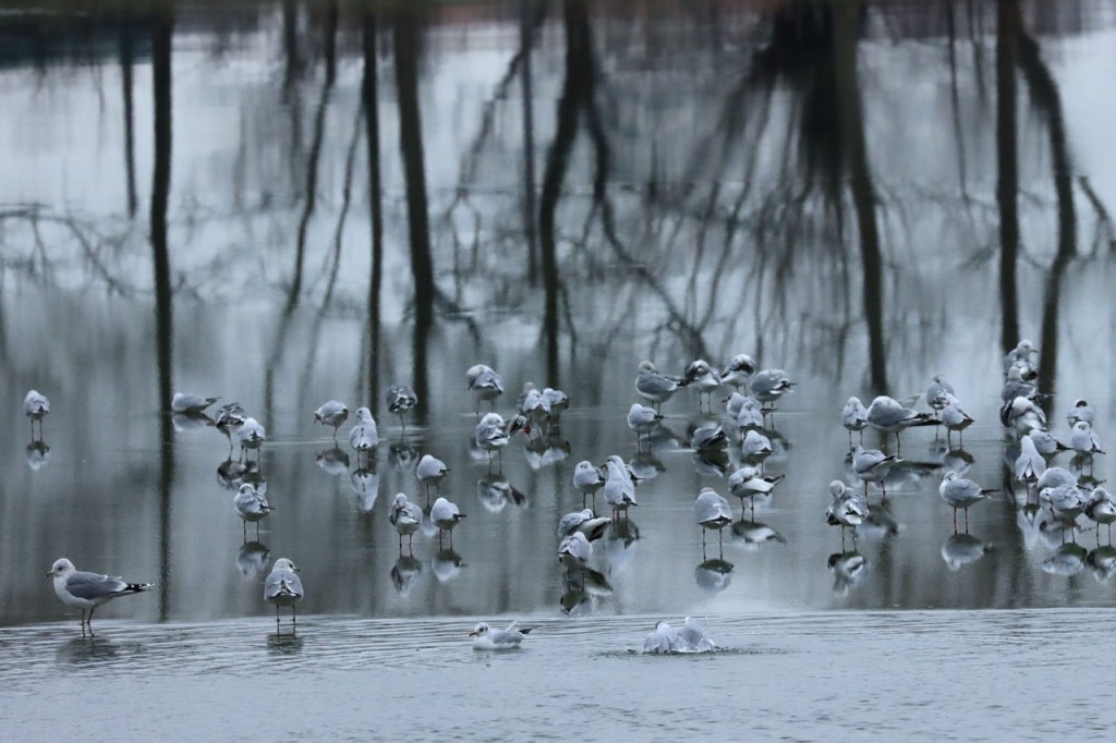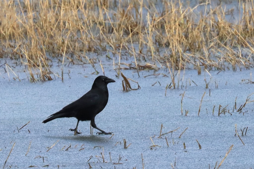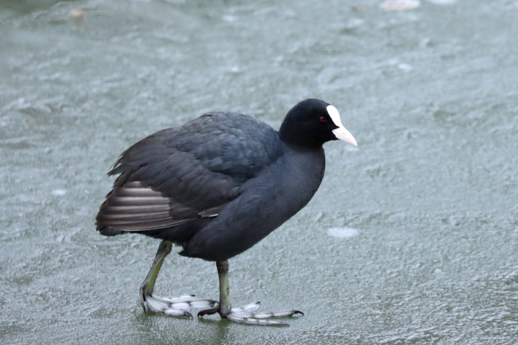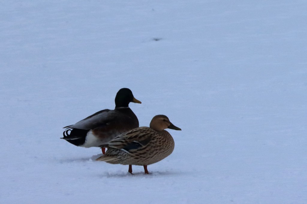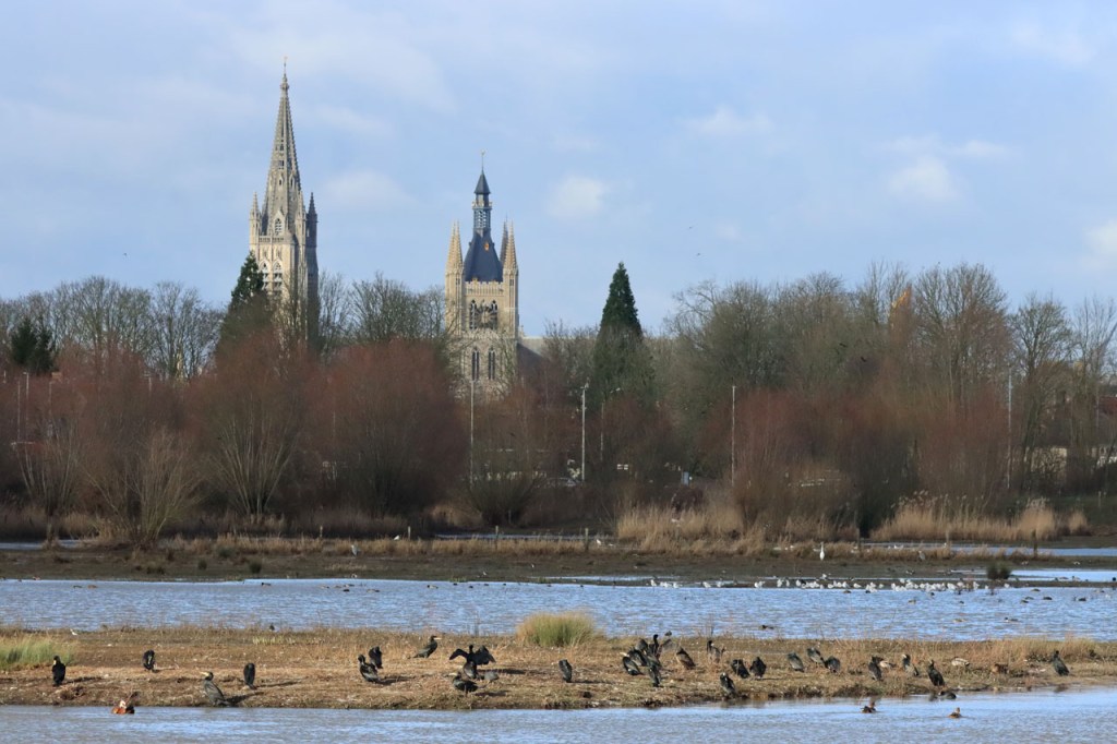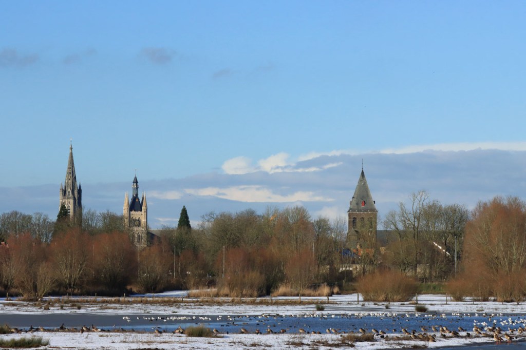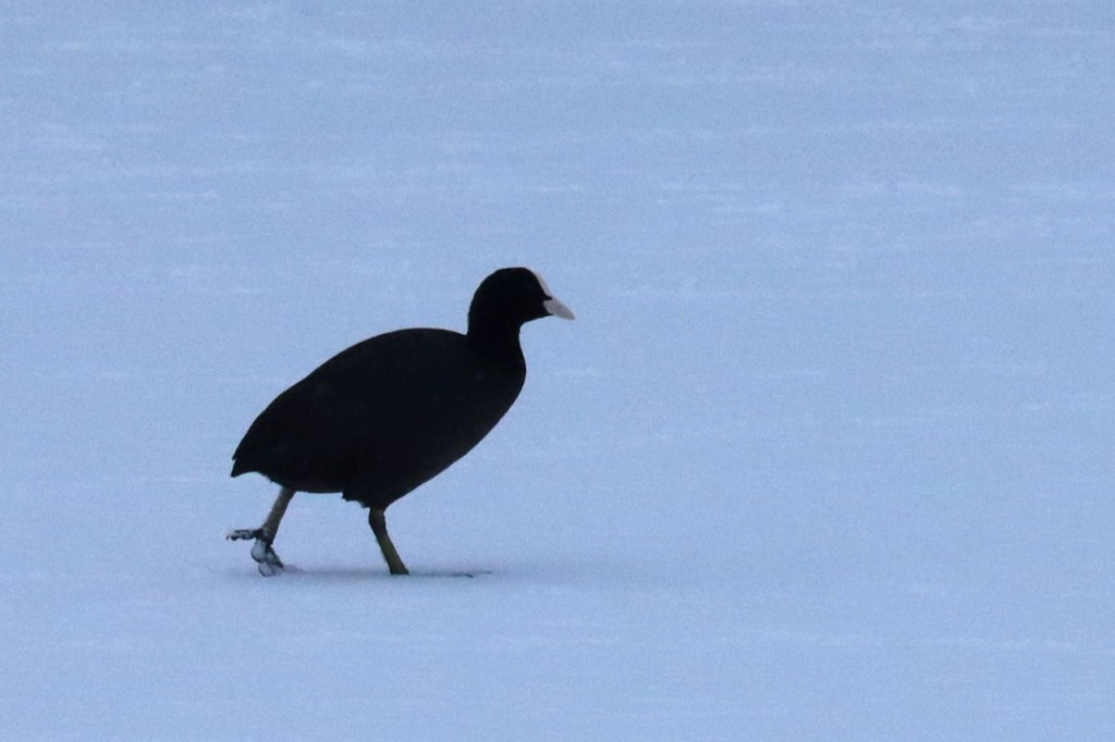 De dooi maakte het op sommige plaatsen al wat vettig maar op andere plaatsen, waar de sneeuw steviger tot ijs aangereden was, bleef het toch nog wat glad. Vooral het asfaltweggetje richting Palingbeek was precair, wat het daar trouwens altijd wel is in gelijke omstandigheden. Ik zag er ook een paar wielertoeristen het zekere voor het onzekere nemen en terug naar de grote weg draaien maar te voet was het nog net te doen.