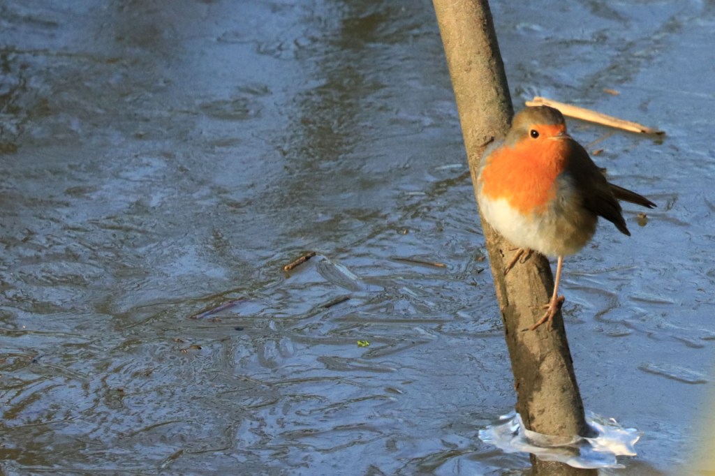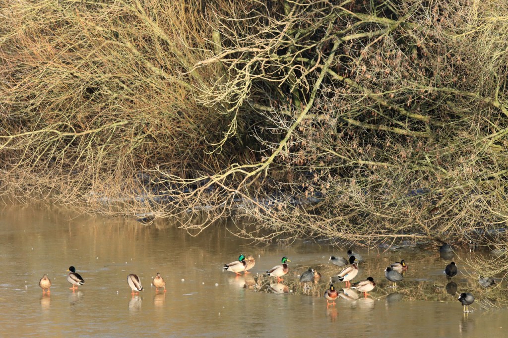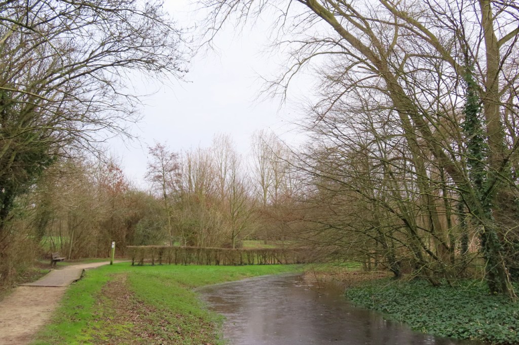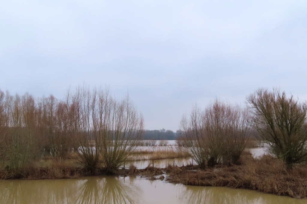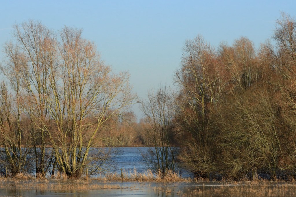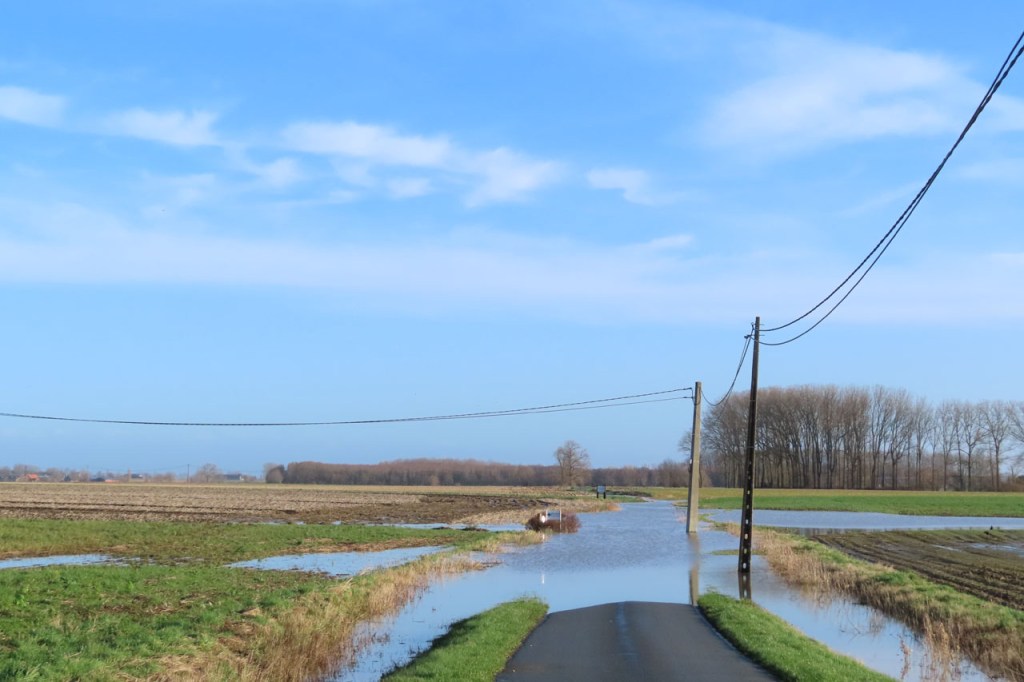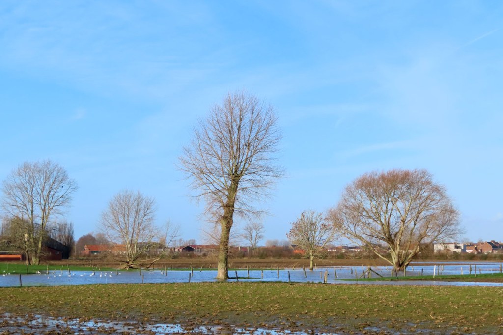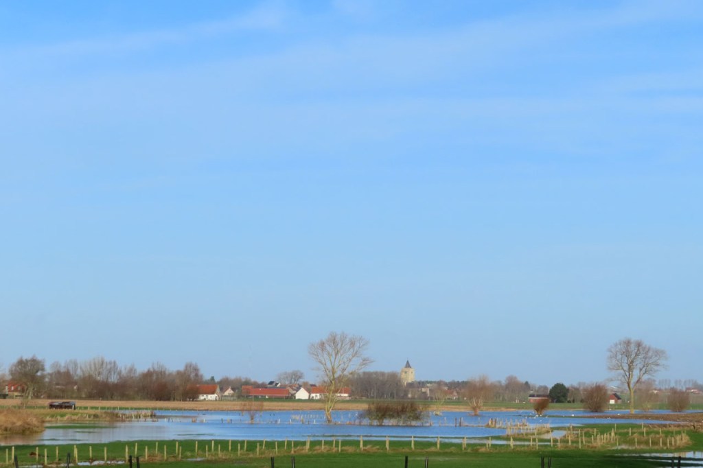 Vandaag dan toch nog eens de fiets genomen. Het was mooi fietsen maar het kon niet overal. Ik had van Knokkebrug graag naar de Blankaart gefietst, al wist ik eigenlijk al wel op voorhand dat dit waarschijnlijk niet zou kunnen. Plan B was dan eigenlijk naar Diksmuide fietsen maar ter plaatse besloot ik om voor plan C te gaan, naar de andere kant richting Fintele. Van de Fintele had ik dan graag naar West Vleteren gereden maar ook hier wist ik dat de kans klein zou zijn. Langs het weggetje richting Vleteren vroeg ik aan een tegemoetkomende wandelaar naar de situatie en hij raadde het me, met de fiets, niet aan. Ik heb dan niet meer verder geprobeerd en keerde maar meteen terug om langs een andere route te rijden.