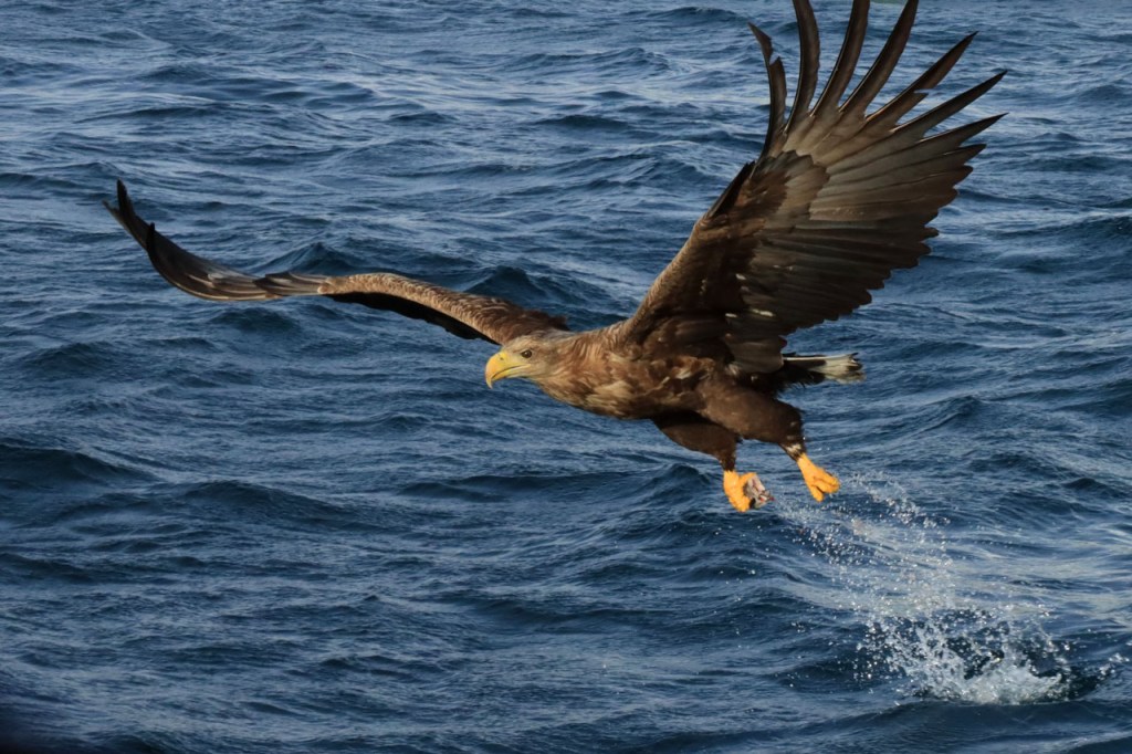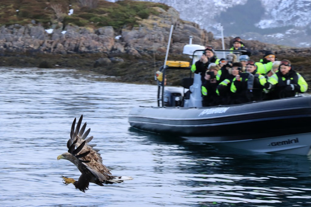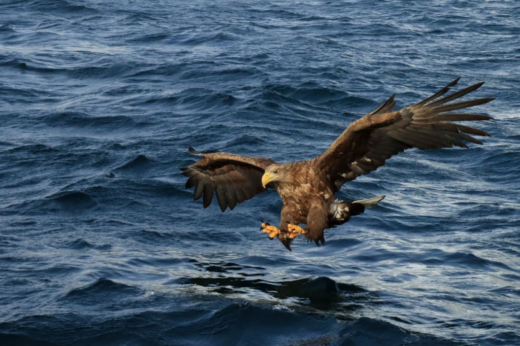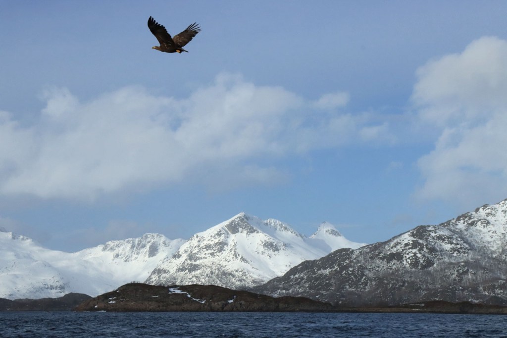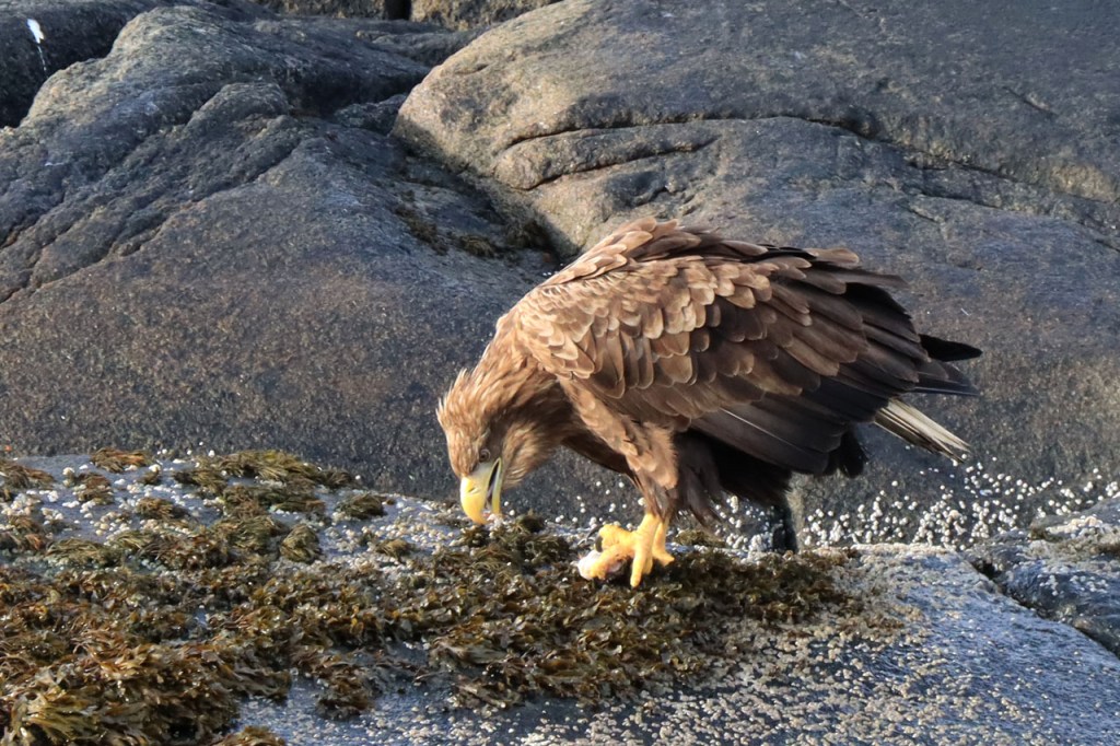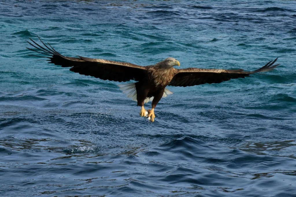 Vanmorgen gingen we de boot in, op jacht naar zeearenden. Het is wel een beetje valsspelen, ze gooien wel wat aas uit en de vogels kennen het systeem ondertussen voldoende om te weten wanneer er gratis snacks te krijgen zijn 🙂 , maar het was toch prachtig en indrukwekkend. Ongetwijfeld één van de hoogtepunten van de reis. De ervaring van het zien was voor een keer nog mooier dan de foto’s maken. De verplaatsingen waren wel niet zo comfortabel. Het ging er af en toe stevig aan toe, door de combinatie van snelheid en golven, maar ook dat was wel eens een leuke ervaring.