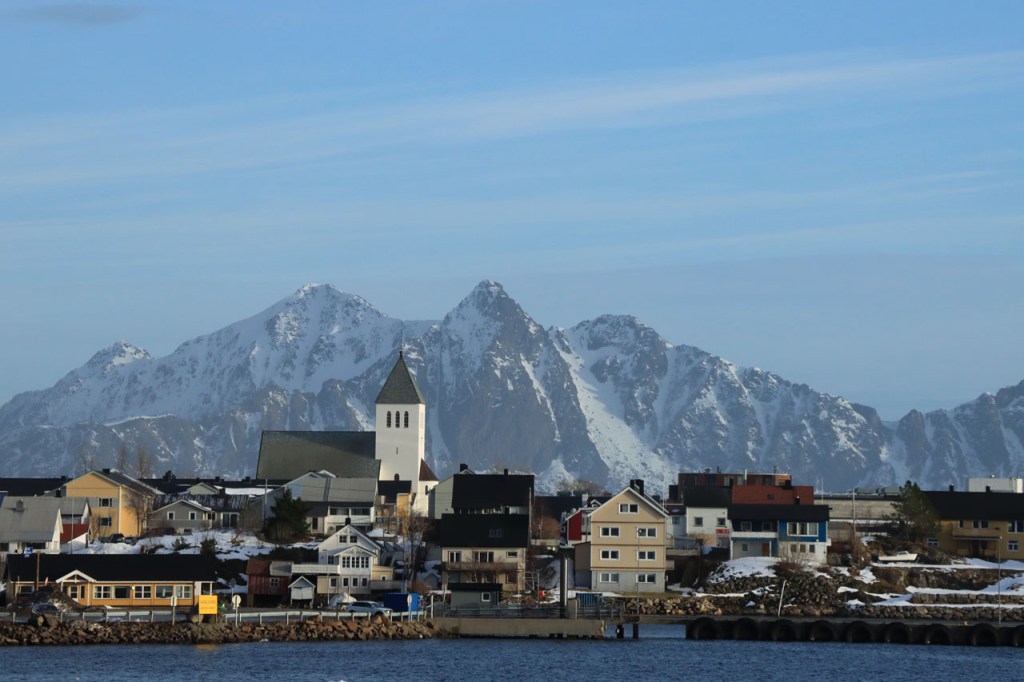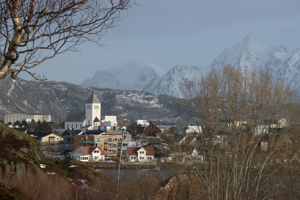 Na de middag wandelde ik dan naar de Lofoten kathedraal in Kabelvag, het volgende stadje. Dat had gisteren eigenlijk onze eerste stop moeten zijn maar er was net een ongeval gebeurd en we konden er daardoor geen halt houden. Aangezien Svolvaer niet zo groot is om te ontdekken en de kathedraal wel binnen wandelafstand lag, ging ik dus vandaag op bezoek. Eigenlijk nog een meevaller, het licht was vanmiddag veel beter dan gisteren ochtend.