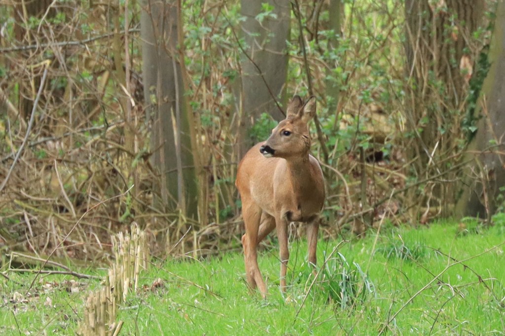 Ik zag vandaag niet alleen een ree maar hoorde er ook één. Terwijl er eentje in het veld naast het bos stond, hoorde ik er in het bos een andere blaffen. Verder zag ik een aantal nieuwe lentegasten: de scholekster, de wulp en de patrijs. Verder blijken ook de kieviten uitgevlogen te zijn uit hun winterkolonies.