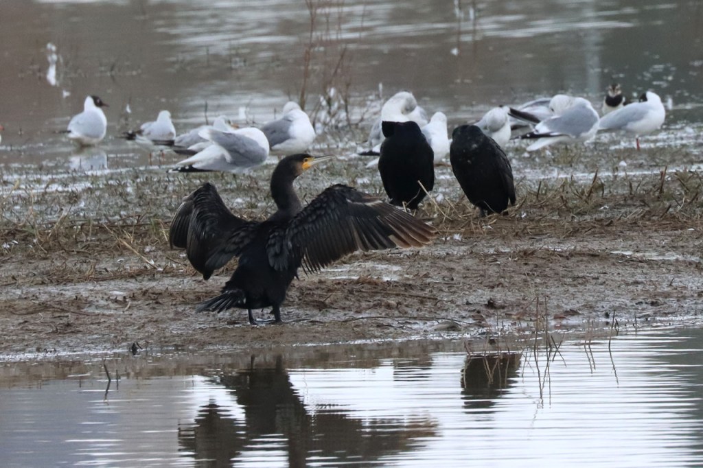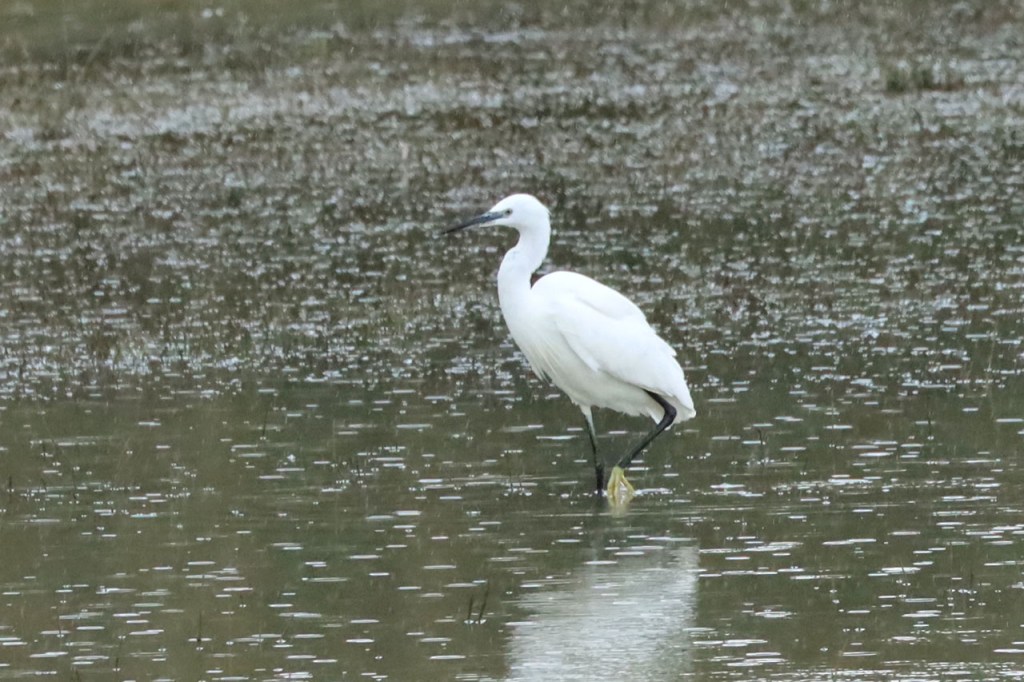 Het weer was vandaag een heel stuk minder gunstig, er hing de hele tijd wel wat vocht in de lucht en af en toe vielen er ook wel echte druppels, dus koos ik voor een wandeling. Ik wou sowieso nog wel eens langs de Verdronken Weide om te zien of er daar ook al nieuwe gasten neergestreken waren. Het bleek achteraf gezien niet zo slim, het lag er wreed nat en vettig rondom en ik zag er geen spectaculaire nieuwkomers.