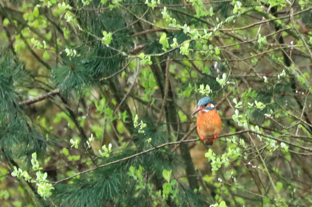 De ijsvogel van het Heiken was weer op de afspraak maar ook weer in zijn verre hoek. Gisteren passeerde ik er ook en zag ik hem niet. Als we dit als een klein onderzoek bekijken, dan betekent het dat je hem statistisch 2 keer op 3 te zien krijgt 🙂 .