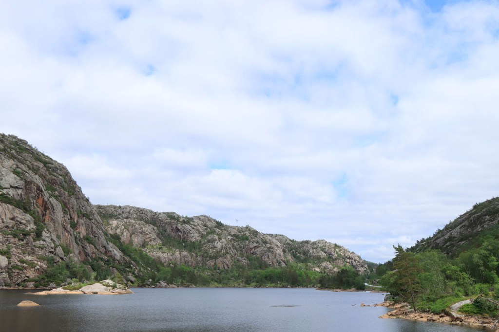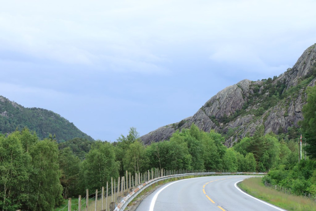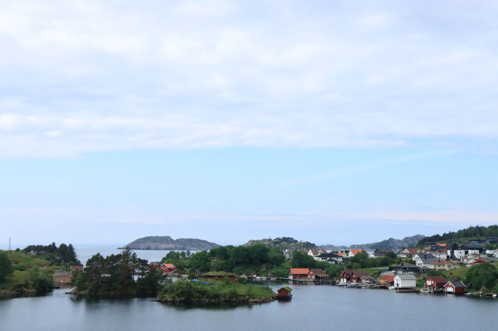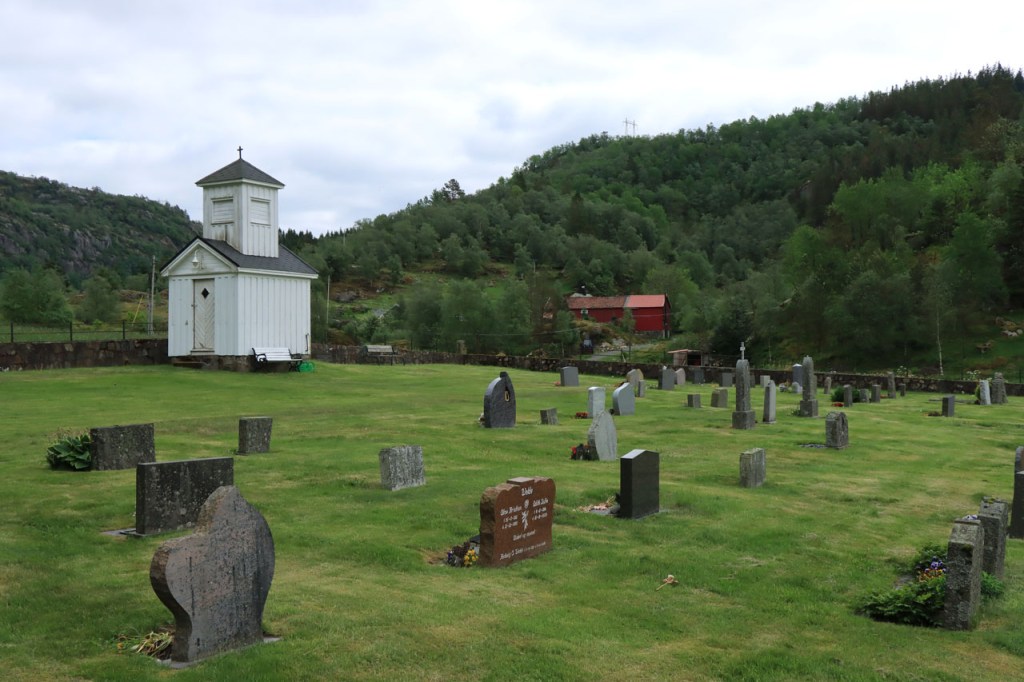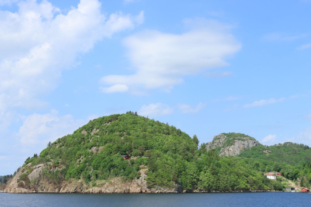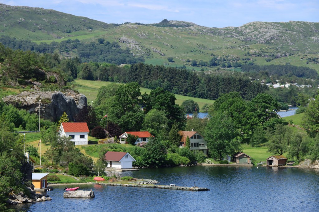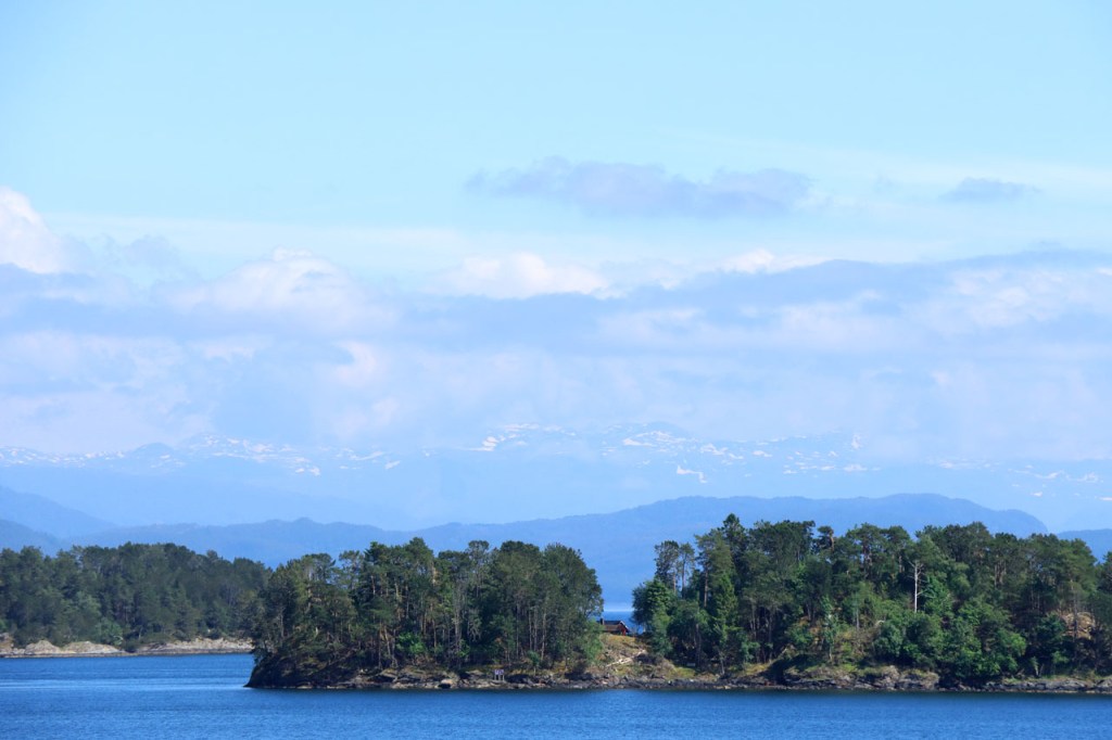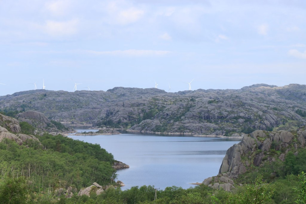 Ik heb gisteren op de camping nog wel wat mensen gezien, 2 x 2 mannen die met de kajak op de fjord gaan vissen waren en 2 vrouwen die wat kwamen kuisen en opruimen, maar niemand die iets aan me vroeg of tegen me zei. Ik heb ondertussen ook de situatie uitgewerkt. Hoewel het dus vroeger een volledig opererende camping moet geweest zijn, mijn plaatsje stond nog steeds gemarkeerd als tentplaats, huist ze tegenwoordig alleen nog campers. Zo stond het eigenlijk langs de weg ook aangekondigd maar ik had een camping nodig en ben dus toch gaan kijken. Aan de ingang staat een bareel, waar ik met de fiets automatisch langs ga, met een QR-code, via dewelke campergasten on-line kunnen inchecken en betalen waarna ze via SMS een bericht krijgen met de code om de bareel te openen. Overigens zijn er gisteren ook geen campers opgedoken. Het is wel een beetje jammer voor zo’n mooie site op zo’n mooie locatie. Ze zouden eens moeten gaan kijken naar het systeem in Nedstrand. Hoe dan ook heb ik dus gekampeerd voor de prijs van een douche, 20 Kr.