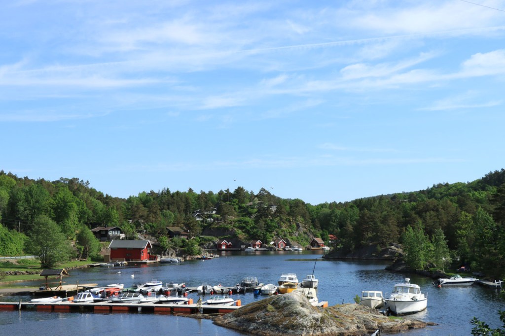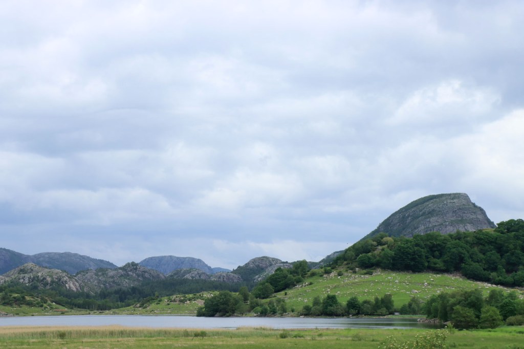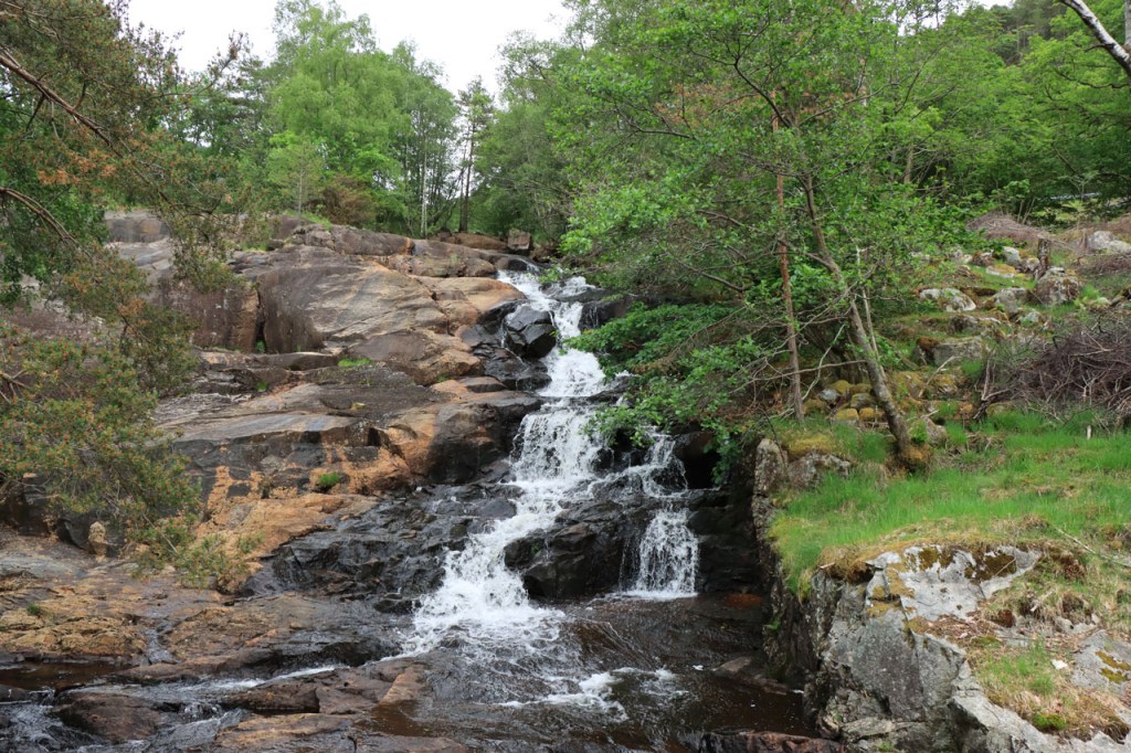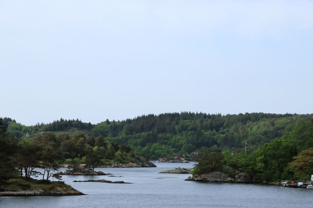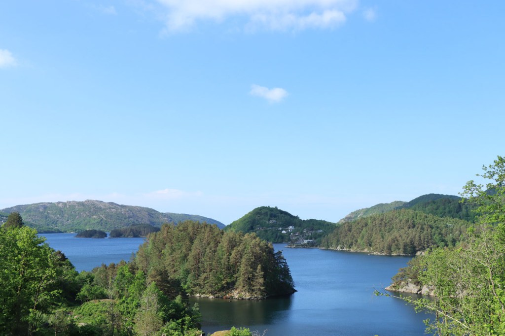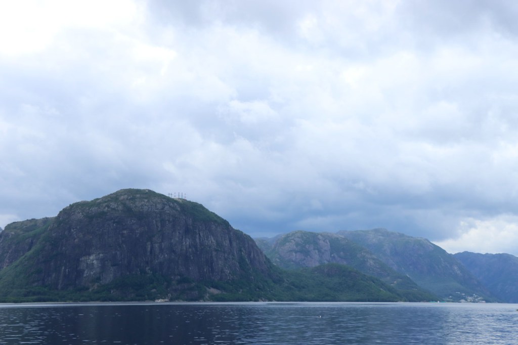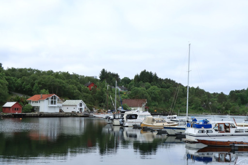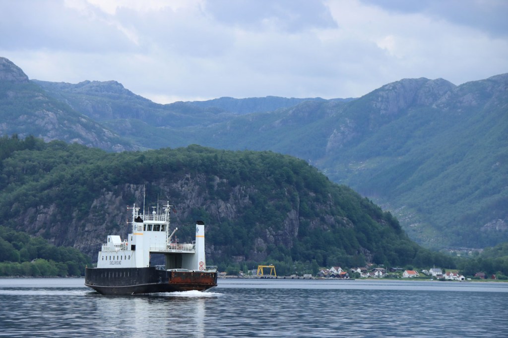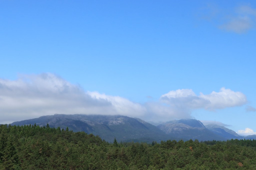 Ik heb gisteren op de camping nog wel wat mensen gezien, 2 x 2 mannen die met de kajak op de fjord gaan vissen waren en 2 vrouwen die wat kwamen kuisen en opruimen, maar niemand die iets aan me vroeg of tegen me zei. Ik heb ondertussen ook de situatie uitgewerkt. Hoewel het dus vroeger een volledig opererende camping moet geweest zijn, mijn plaatsje stond nog steeds gemarkeerd als tentplaats, huist ze tegenwoordig alleen nog campers. Zo stond het eigenlijk langs de weg ook aangekondigd maar ik had een camping nodig en ben dus toch gaan kijken. Aan de ingang staat een bareel, waar ik met de fiets automatisch langs ga, met een QR-code, via dewelke campergasten on-line kunnen inchecken en betalen waarna ze via SMS een bericht krijgen met de code om de bareel te openen. Overigens zijn er gisteren ook geen campers opgedoken. Het is wel een beetje jammer voor zo’n mooie site op zo’n mooie locatie. Ze zouden eens moeten gaan kijken naar het systeem in Nedstrand. Hoe dan ook heb ik dus gekampeerd voor de prijs van een douche, 20 Kr.