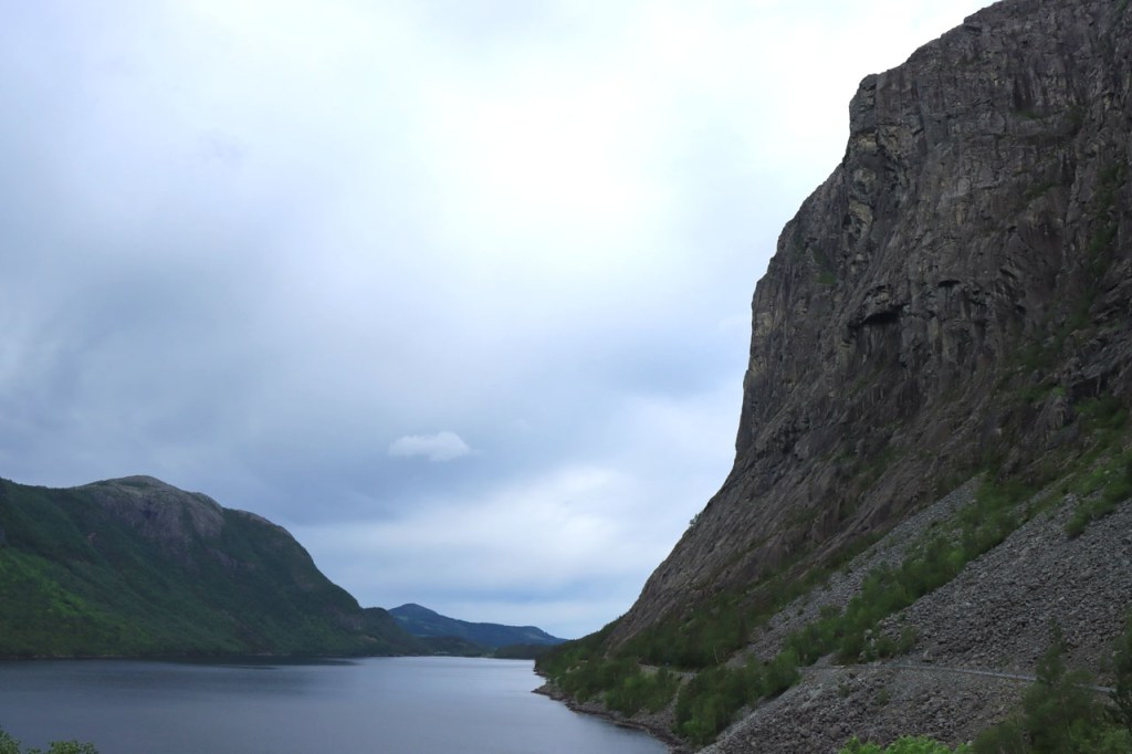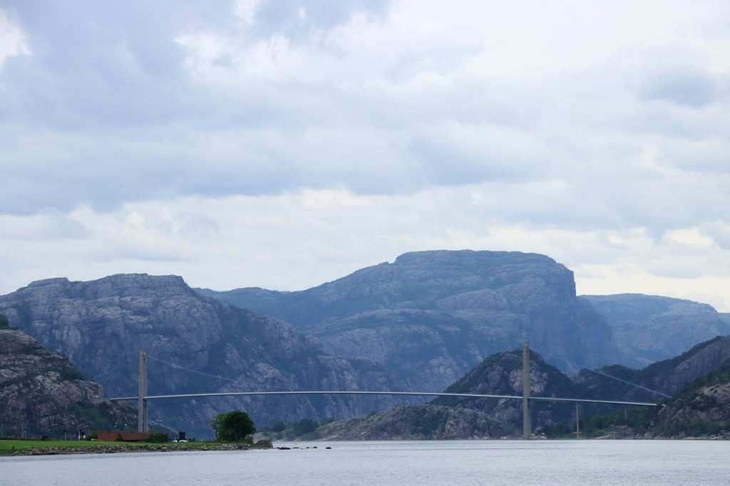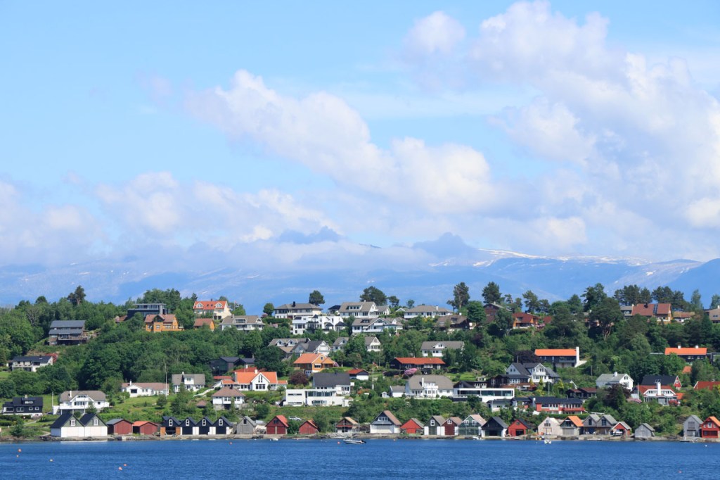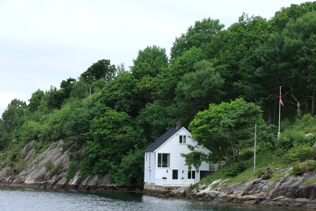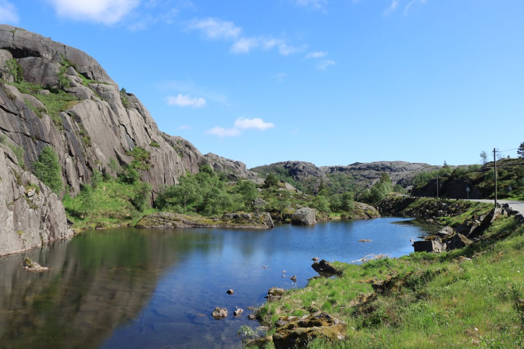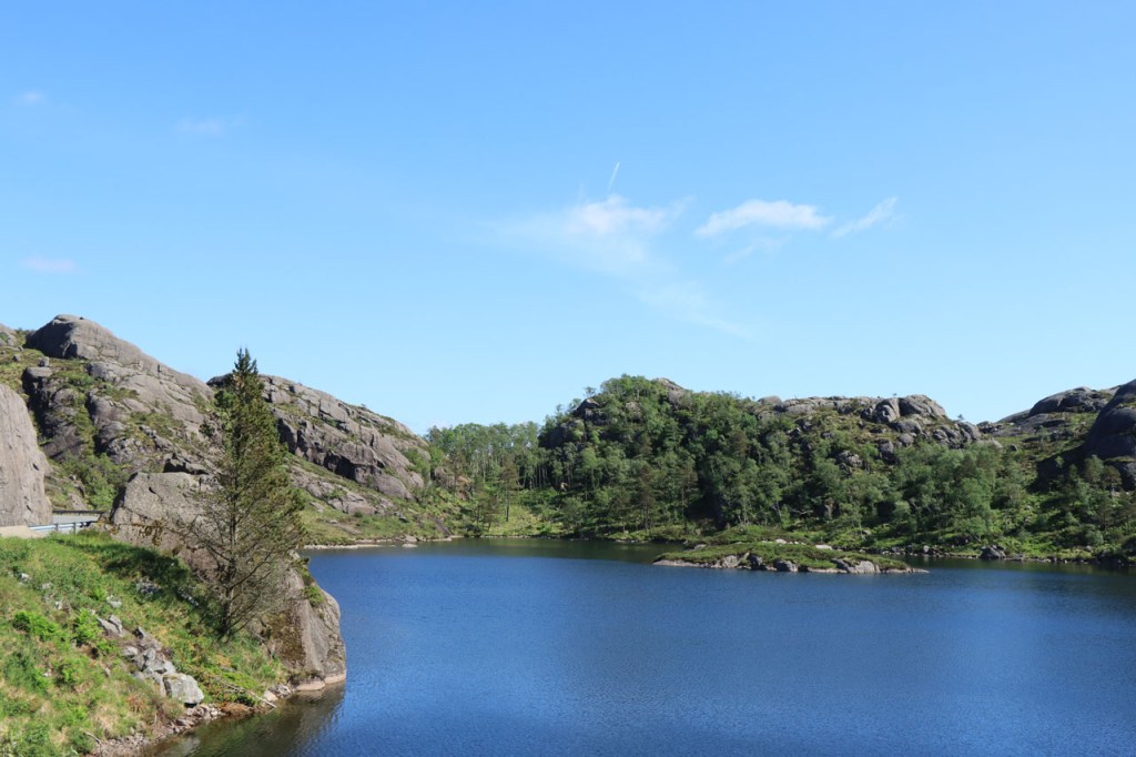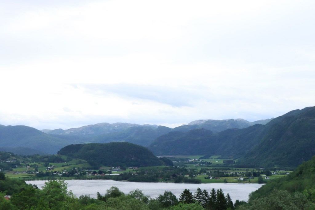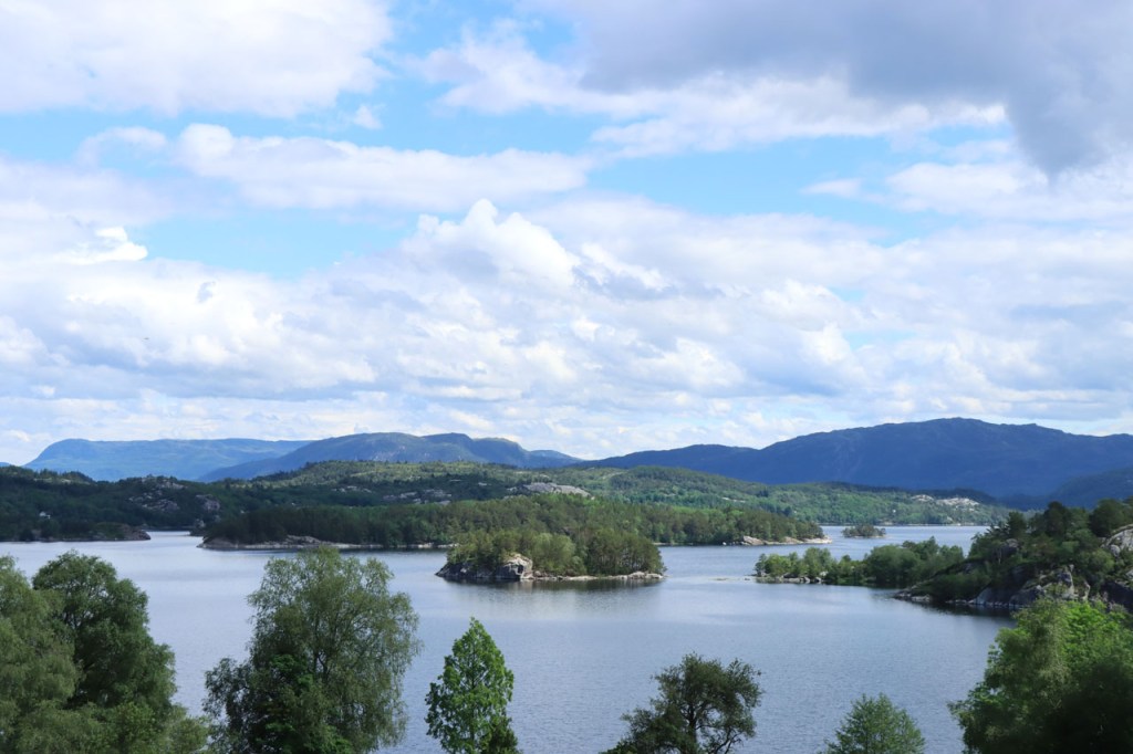 Ik heb gisteren op de camping nog wel wat mensen gezien, 2 x 2 mannen die met de kajak op de fjord gaan vissen waren en 2 vrouwen die wat kwamen kuisen en opruimen, maar niemand die iets aan me vroeg of tegen me zei. Ik heb ondertussen ook de situatie uitgewerkt. Hoewel het dus vroeger een volledig opererende camping moet geweest zijn, mijn plaatsje stond nog steeds gemarkeerd als tentplaats, huist ze tegenwoordig alleen nog campers. Zo stond het eigenlijk langs de weg ook aangekondigd maar ik had een camping nodig en ben dus toch gaan kijken. Aan de ingang staat een bareel, waar ik met de fiets automatisch langs ga, met een QR-code, via dewelke campergasten on-line kunnen inchecken en betalen waarna ze via SMS een bericht krijgen met de code om de bareel te openen. Overigens zijn er gisteren ook geen campers opgedoken. Het is wel een beetje jammer voor zo’n mooie site op zo’n mooie locatie. Ze zouden eens moeten gaan kijken naar het systeem in Nedstrand. Hoe dan ook heb ik dus gekampeerd voor de prijs van een douche, 20 Kr.
