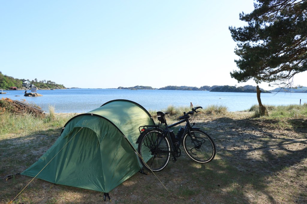 Vandaag trok ik meteen een eindje verder. Kristiansand verlaten was niet simpel, met nogal wat autowegen die in tunnels verdwijnen waar fietsers niet in mogen, maar ook via de fietspaden is het dus gelukt. Je ziet, en voelt, onmiddellijk dat je in een andere wereld terechtgekomen bent. In Denemarken had ik nogal eens vals plat maar daar doen ze hier niet aan mee, het gaat hier direct echt op of af 😉 .