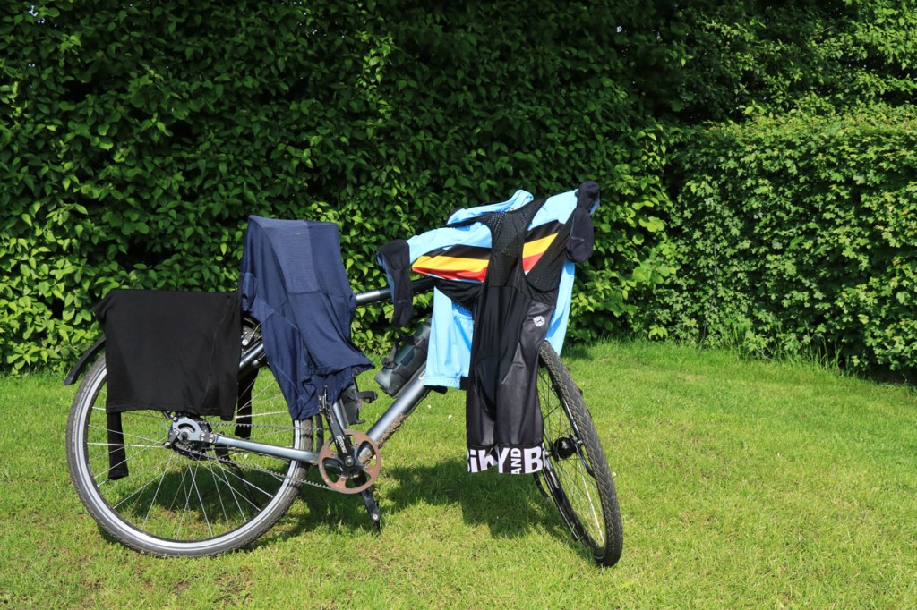 Vanmorgen opgestaan onder een bewolkte hemel maar al snel werd hij weer stralend blauw. Tijdens het opbreken, ik stond in de zon en uit de wind, dacht ik eraan om eens in korte mouwen te fietsen maar ik ben blij dat ik dat uiteindelijk toch niet deed. Vooral voor de middag hield de wind het toch weer best fris.