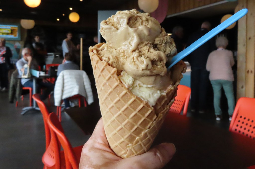 De camping kon ik van bij de veerboot al zien liggen aan de overkant. Bij nader inzien maakte deze echter geen te positieve eerste indruk en ik zag ook nergens een receptie. Ik besloot dan maar nog even verder tot de volgende te fietsen maar ook daar vond ik geen receptie, net zoals bij deze nog een ietsje verder. Deze beiden waren eerder camperplaatsen waarbij je je plaatsje boekt via app of SMS. Ik werd dan terug verwezen naar de eerste camping en daar vond ik nu inderdaad ook de receptie, in een container waarvan ik dacht dat die als ijskraam diende. Toch nog een heel gedoe voor een camping die je al van aan de overkant zag liggen 😉 . Ik vond er uiteindelijk wel een mooi plaatsje maar als camping zal ze toch nooit in mijn top drie komen.