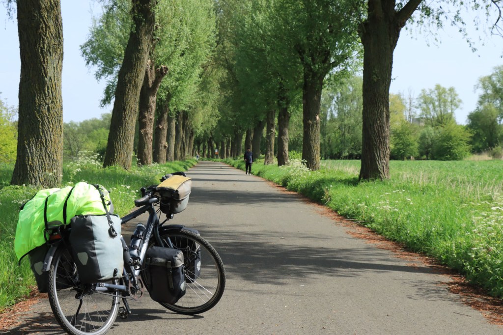 Na 100 meter mocht ik vanmorgen al terugkeren vanwege een probleempje. Mijn voorband, die ik gisteren nog stevig oppompte, stond wat zachtjes. Ik besloot dan om terug te keren en hem, nog met een echte pomp, terug op te pompen en te zien waar ik uit zou komen. Het probleem bleek dan bij het ventiel te zitten. Toen ik dat wou los zetten om er terug lucht in te pompen, had ik meteen het hele topje vast. Wat je kan los draaien, dat kan je ook weer vast draaien. Ik schroefde dus het topje terug op het ventiel, blies weer lucht in de band en heb er verder geen probleem meer mee gehad 🙂 .