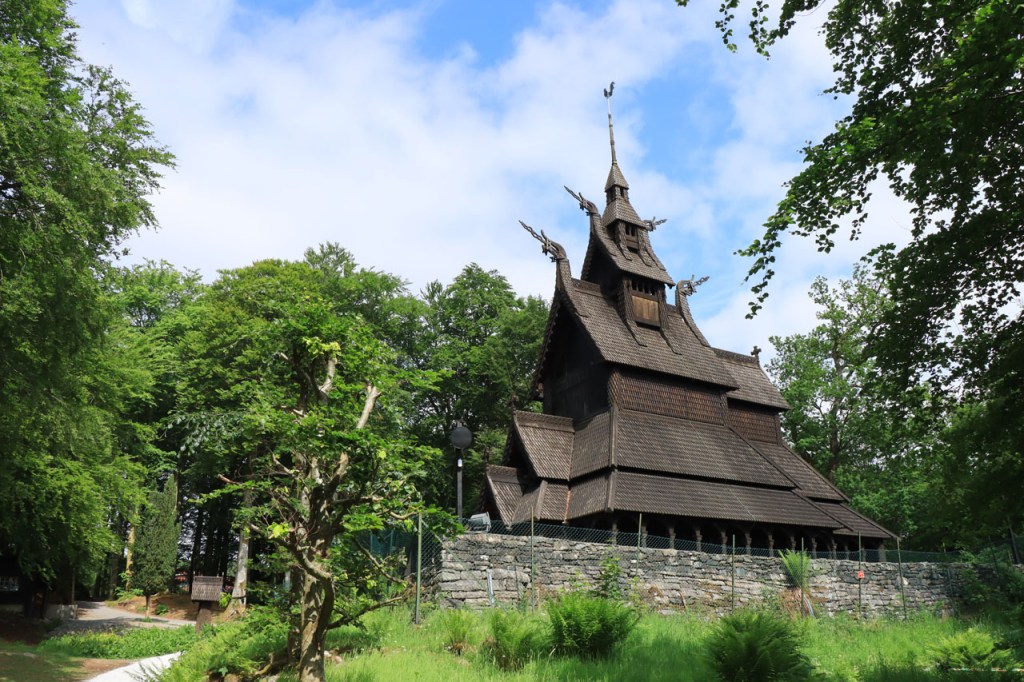 Bergen is een heel mooie en aangename maar ook een grote stad en ik was er al 4 keer eerder. Ik had dan ook al lang besloten om ze deze keer voorbij te laten gaan. Ik zou wel tot Fantoft rijden. Ik had ergens gelezen dat daar een mooi staafkerkje stond en die had ik bij mijn vorige keren nog niet bezocht. Staafkerken zijn oude Noorse kerkjes in hout die opgebouwd zijn rond palen, staven dus. De kerkjes zijn ook puur uit hout gemaakt, er werd geen gebruik gemaakt van nagels of lijm maar enkel met houten pennen of verbindingen. Het opvallendste aan de staafkerk van Fantoft was de ligging, midden in het bos. Je moet ze dus wel even vinden, nog Fantoft nog het kerkje worden uitbundig aangeduid met wegwijzers. Wat dat betreft had het toch makkelijker geweest om naar het centrum te rijden 🙂 . Ook wegkomen was niet makkelijk. Je zit er toch al in de ruime agglomeratie rond Bergen, met veel wegen waarvan niet altijd duidelijk is waar ze uiteindelijk naartoe leiden. Het duurde kilometers voor ik echt zeker was dat ik op de goeie weg was en het waren geen simpele kilometers 😉 . Het had vandaag wat korter gekund maar ook wat langer kunnen geworden zijn.