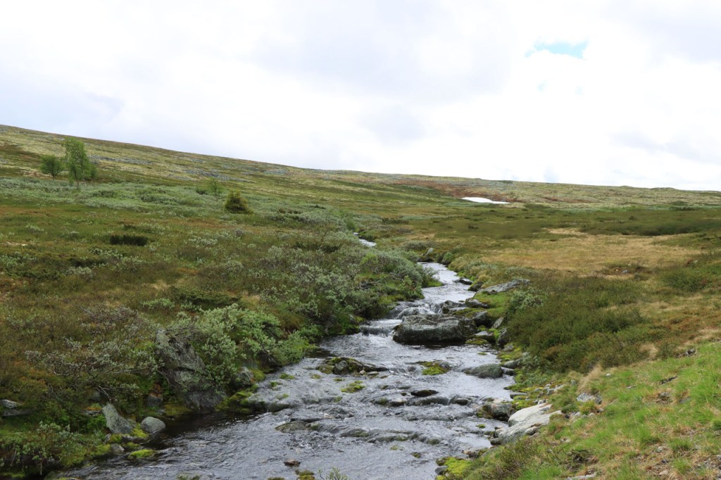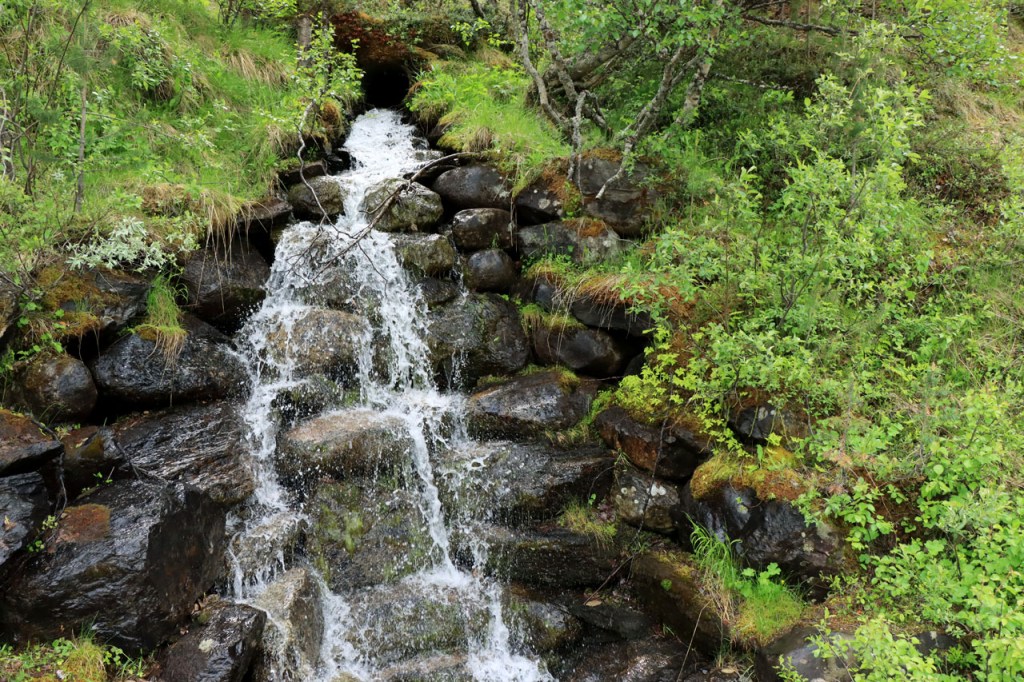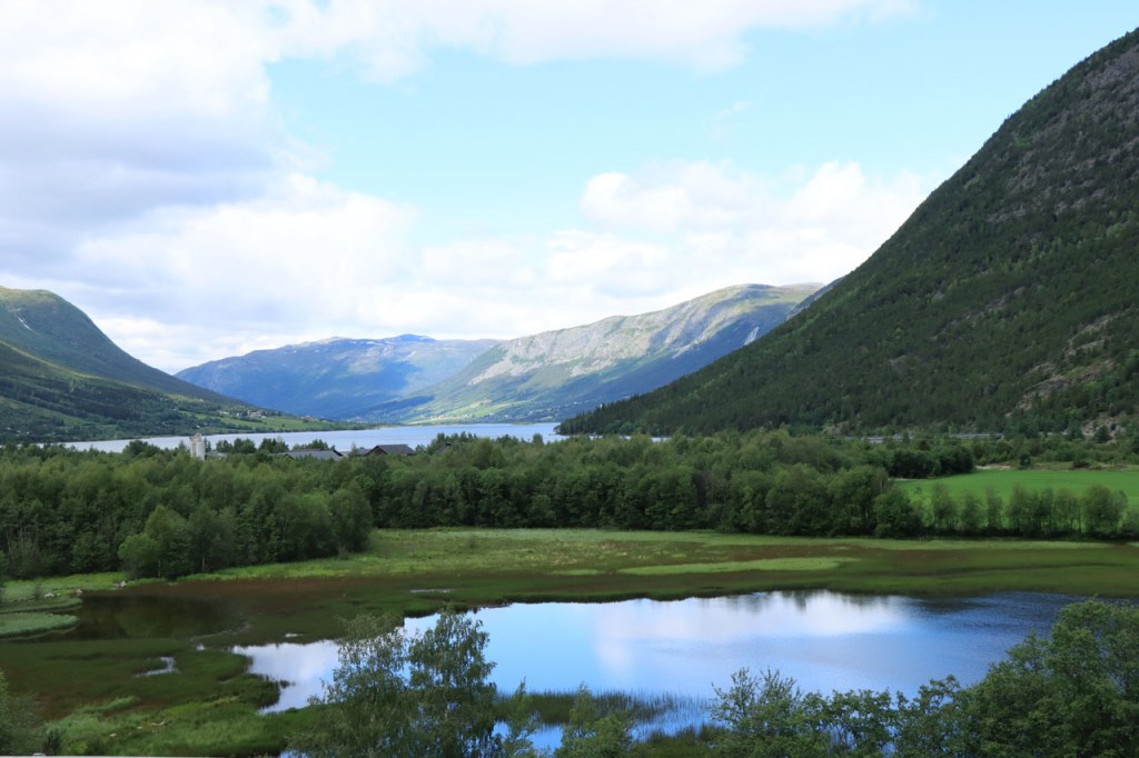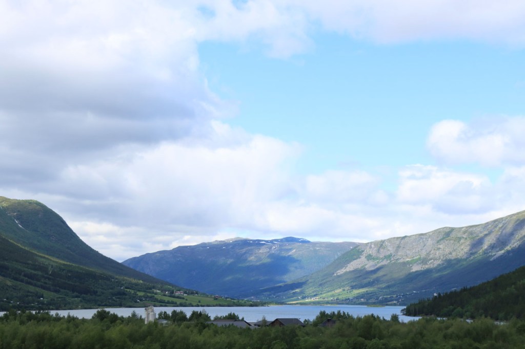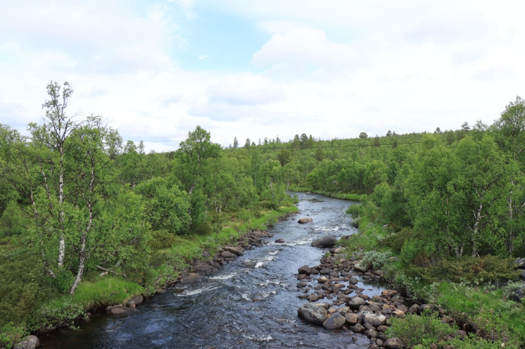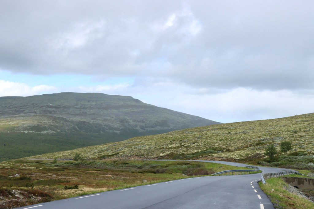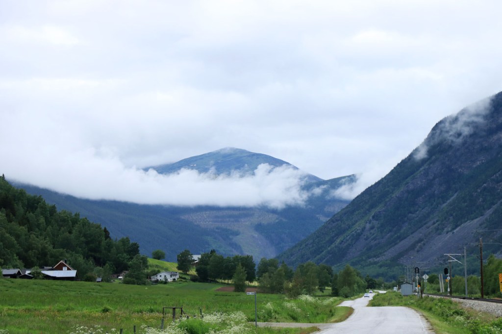 De makkelijkste route voor vandaag zou de E6 zijn maar dat was geen optie. Bij de eerste brug ging ik dus naar de overkant om daar de kleinere weg te nemen, langs de linkeroever zag ik trouwens voor dat eerste stuk geen mogelijkheid op mijn kaart. De weg aan de overkant nam echter de hoge route, weer klimmen dus. Je vraagt je af waarom. De spoorweg loopt wel mooi vlak langs het water, dan moet er toch mogelijkheid zijn om daar nog een weg naast te leggen. Hij hoeft zelfs niet verhard te zijn, de hoge weg was dat ook niet altijd. Hoe dan ook, wat een makkelijk ritje langs het water had moeten worden zou dat niet zijn. Bij de volgende brug keerde ik terug naar de andere kant om te zien of ik daar een vlakkere route kon vinden. Dat lukte bijzonder goed, tot ik met valse middelen terug naar de andere kant gestuurd werd. De Noren zetten bij elk pad of spoor dat voorbehouden is voor voetgangers en fietsers een bord maar beloven daarbij niet dat het pad of spoor ook dezelfde richting als de weg zal blijven volgen. Ik dacht bij een bepaald bord dat het fietspad onder de E6 zou duiken en deze aan de andere kant verder zou volgen. Het pad ging echter weer de rivier over en ik mocht dus terug klimmen. Achteraf bleek het misschien toch wel een meevaller. Ik zag aan de overkant grote werken rondom de E6, die de situatie daar waarschijnlijk alleen maar ingewikkelder zou maken. Ik moest dus wel weer klimmen maar vond een directe, rustige route.