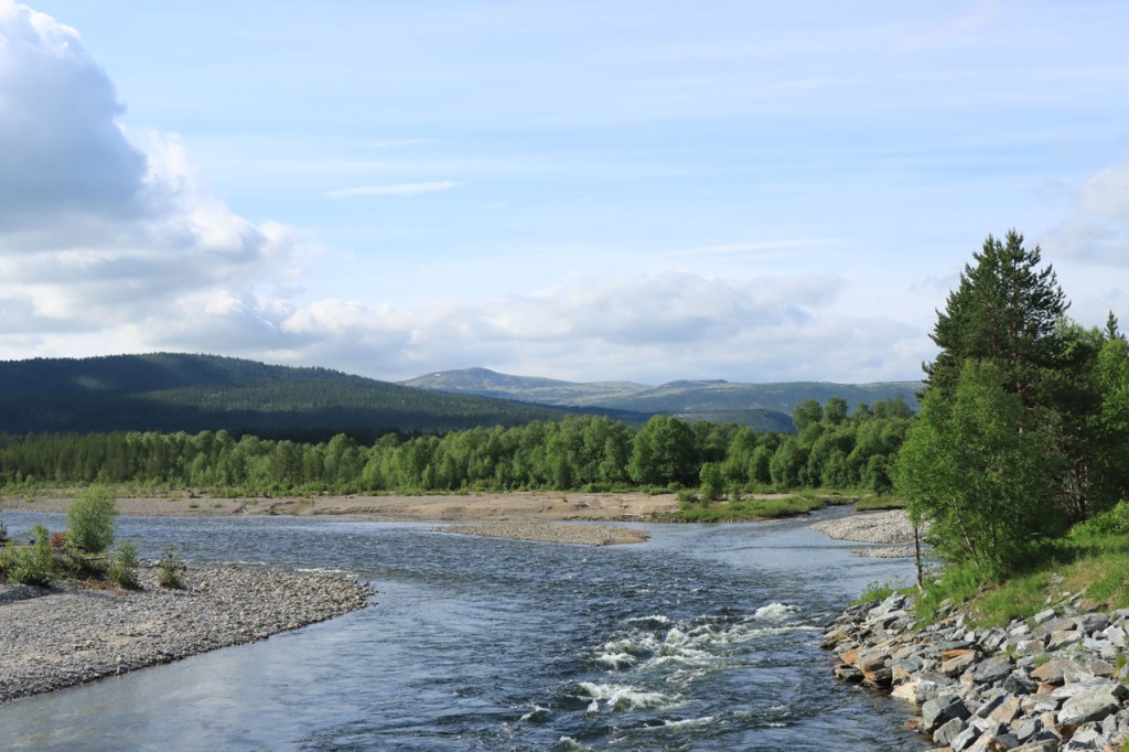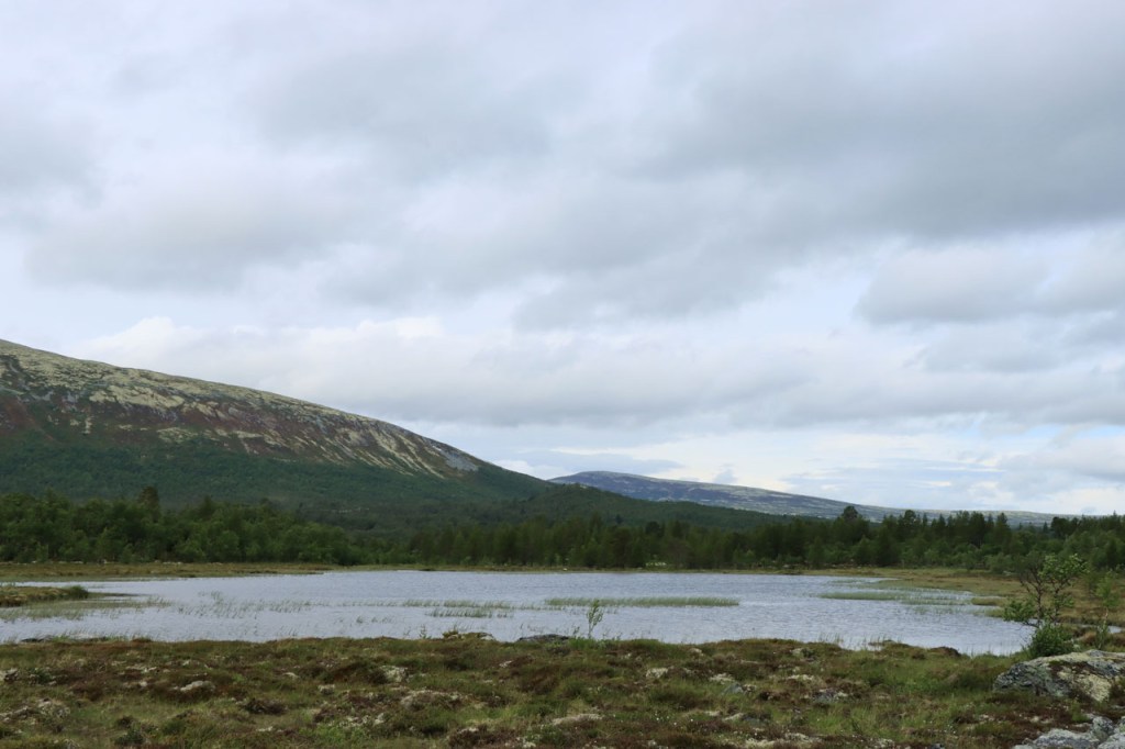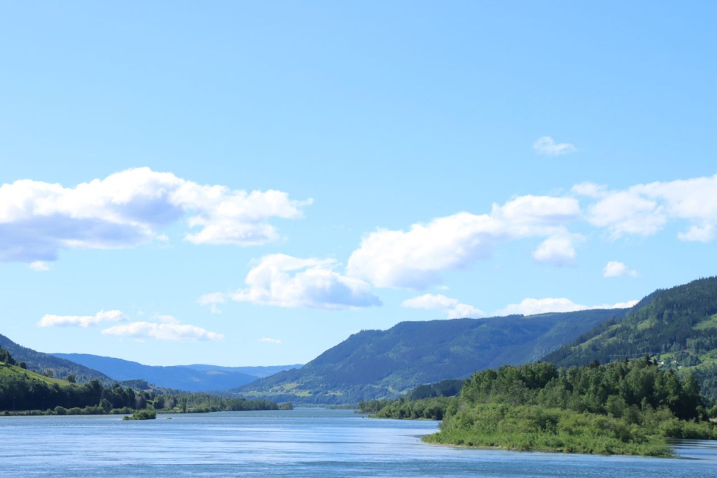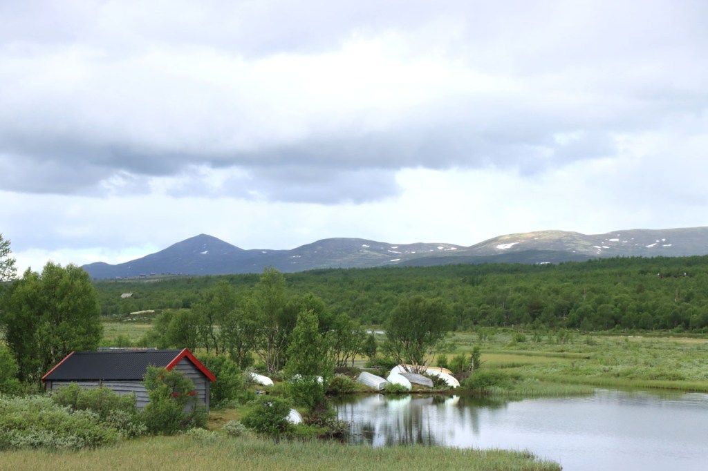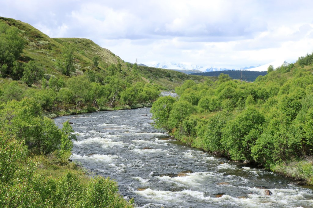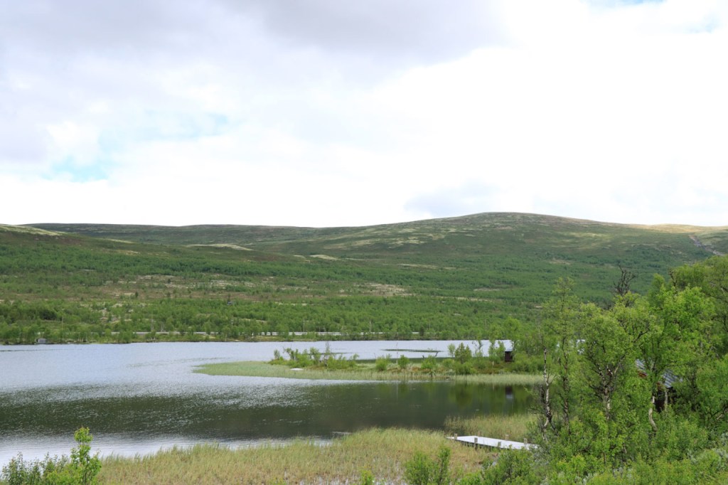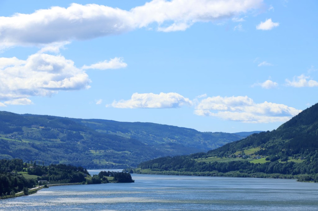 De makkelijkste route voor vandaag zou de E6 zijn maar dat was geen optie. Bij de eerste brug ging ik dus naar de overkant om daar de kleinere weg te nemen, langs de linkeroever zag ik trouwens voor dat eerste stuk geen mogelijkheid op mijn kaart. De weg aan de overkant nam echter de hoge route, weer klimmen dus. Je vraagt je af waarom. De spoorweg loopt wel mooi vlak langs het water, dan moet er toch mogelijkheid zijn om daar nog een weg naast te leggen. Hij hoeft zelfs niet verhard te zijn, de hoge weg was dat ook niet altijd. Hoe dan ook, wat een makkelijk ritje langs het water had moeten worden zou dat niet zijn. Bij de volgende brug keerde ik terug naar de andere kant om te zien of ik daar een vlakkere route kon vinden. Dat lukte bijzonder goed, tot ik met valse middelen terug naar de andere kant gestuurd werd. De Noren zetten bij elk pad of spoor dat voorbehouden is voor voetgangers en fietsers een bord maar beloven daarbij niet dat het pad of spoor ook dezelfde richting als de weg zal blijven volgen. Ik dacht bij een bepaald bord dat het fietspad onder de E6 zou duiken en deze aan de andere kant verder zou volgen. Het pad ging echter weer de rivier over en ik mocht dus terug klimmen. Achteraf bleek het misschien toch wel een meevaller. Ik zag aan de overkant grote werken rondom de E6, die de situatie daar waarschijnlijk alleen maar ingewikkelder zou maken. Ik moest dus wel weer klimmen maar vond een directe, rustige route.