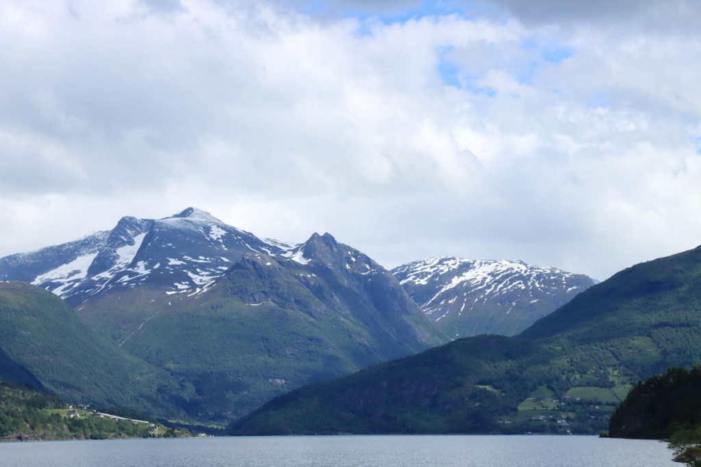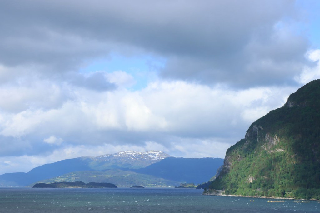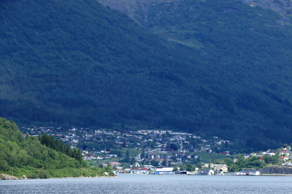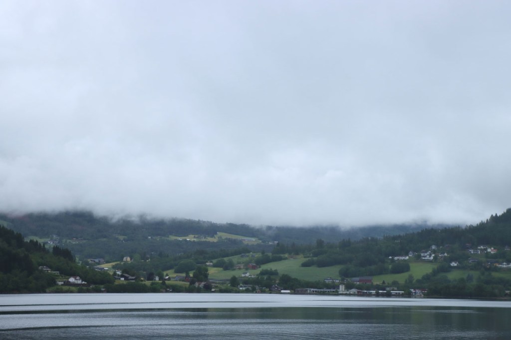 Na de passage over de fjell mocht ik terug dalen naar zeeniveau, naar de fjord dus. Daar toonde de fjord ook welk wreed spel ze soms kunnen spelen. Na goed 50 kilometer zag ik Stryn al liggen maar toen had ik dus wel nog een kleine 30 kilometer, en dus zo’n 2 uur arbeiden, te gaan.