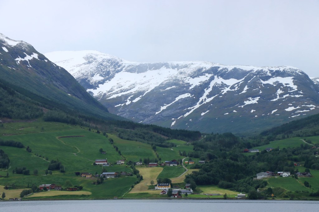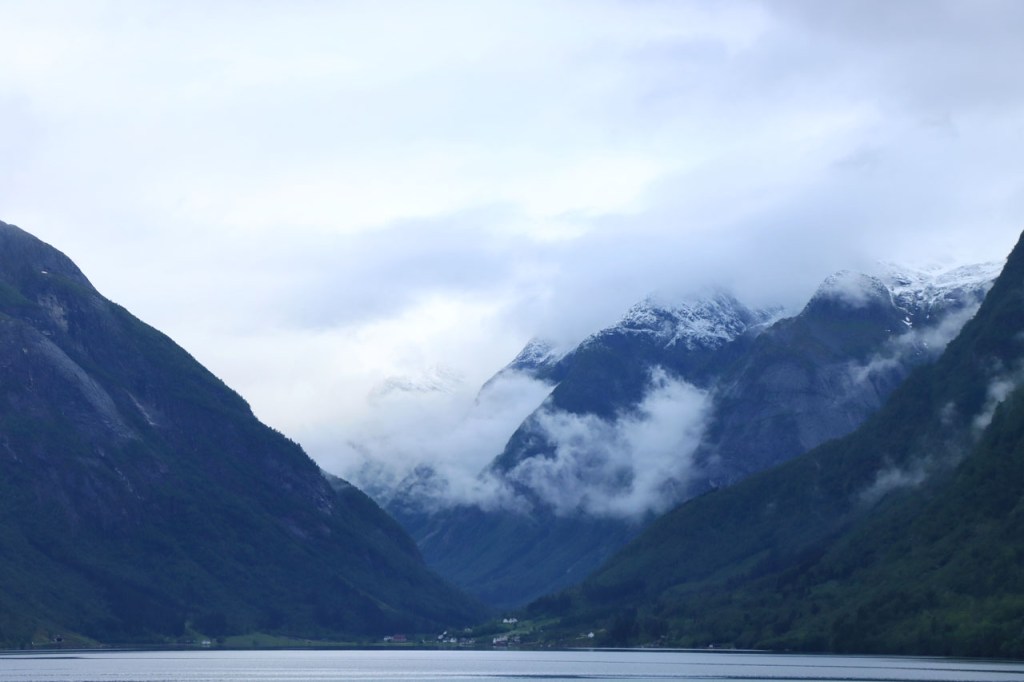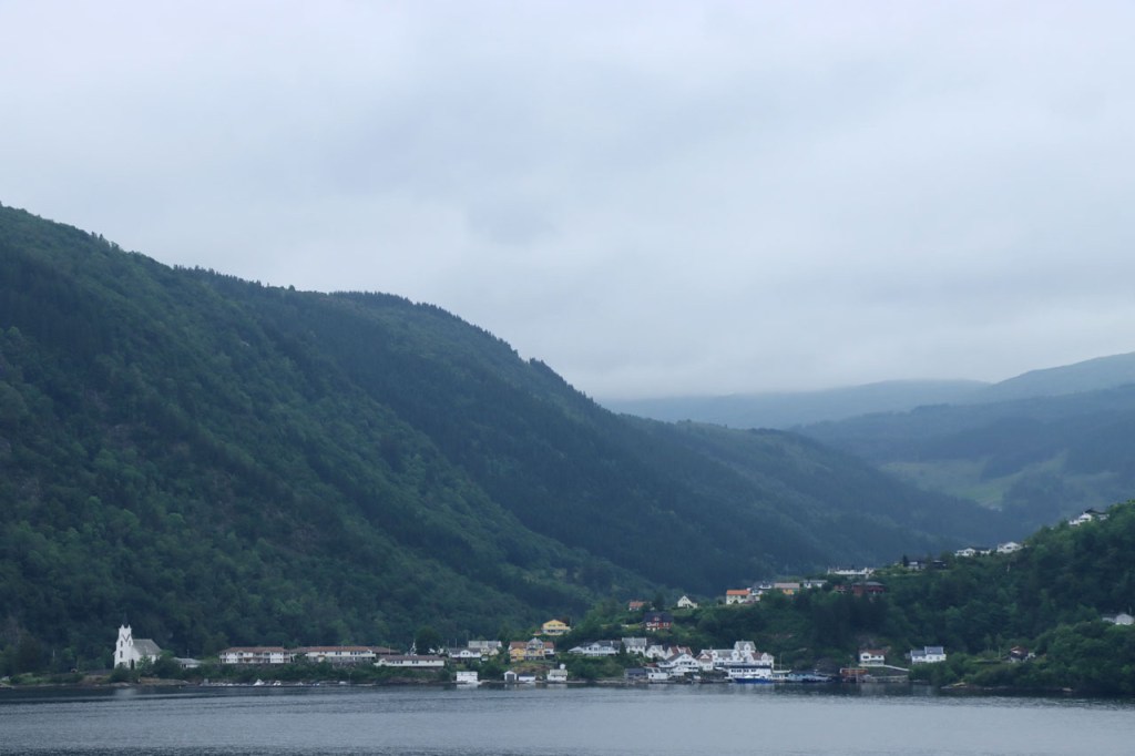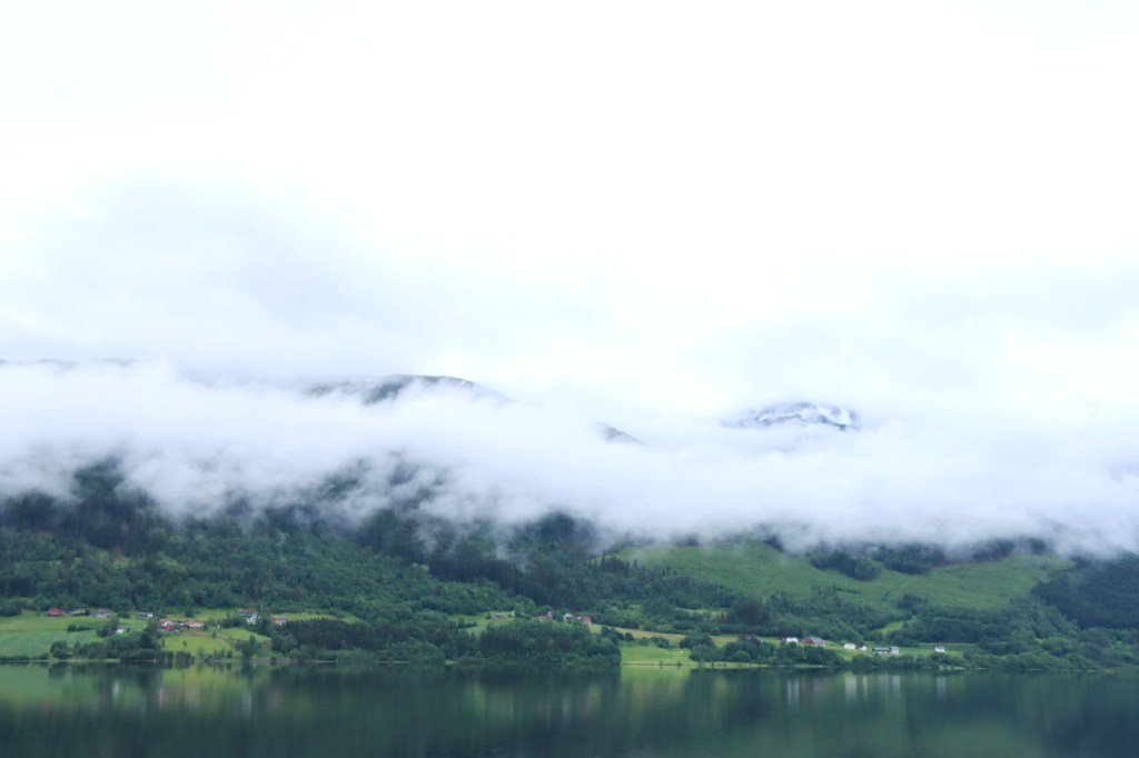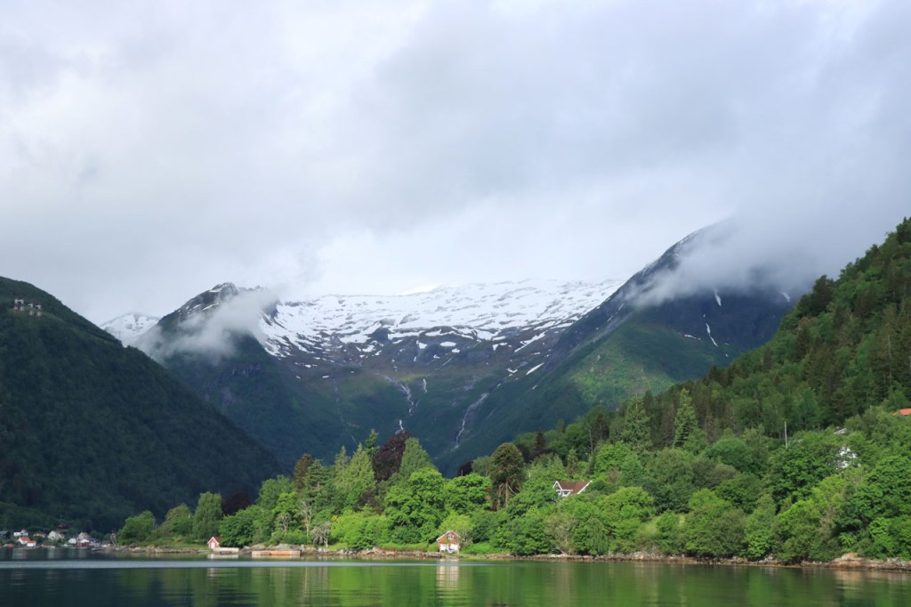 Na de passage over de fjell mocht ik terug dalen naar zeeniveau, naar de fjord dus. Daar toonde de fjord ook welk wreed spel ze soms kunnen spelen. Na goed 50 kilometer zag ik Stryn al liggen maar toen had ik dus wel nog een kleine 30 kilometer, en dus zo’n 2 uur arbeiden, te gaan.