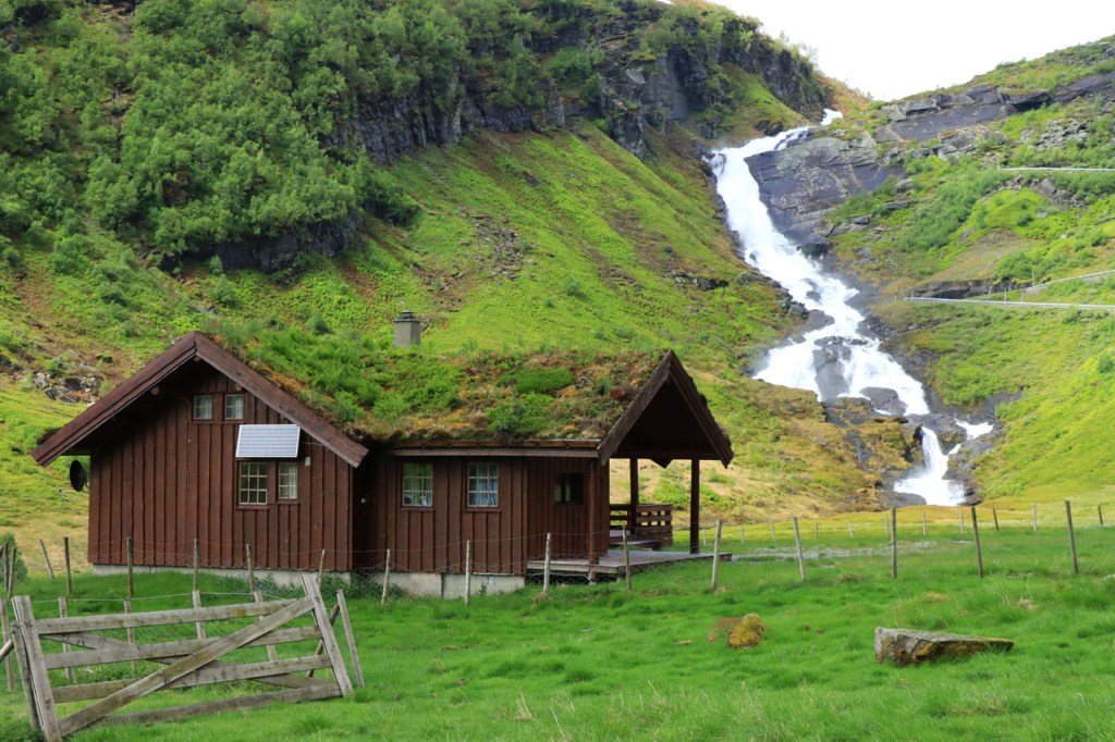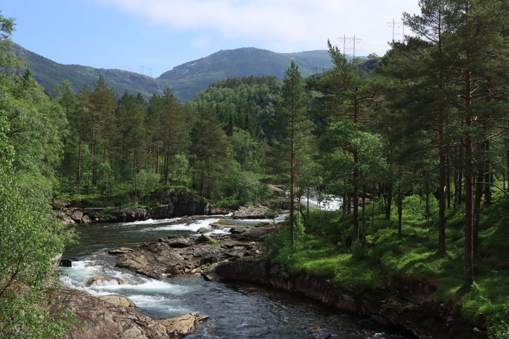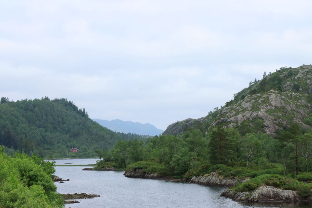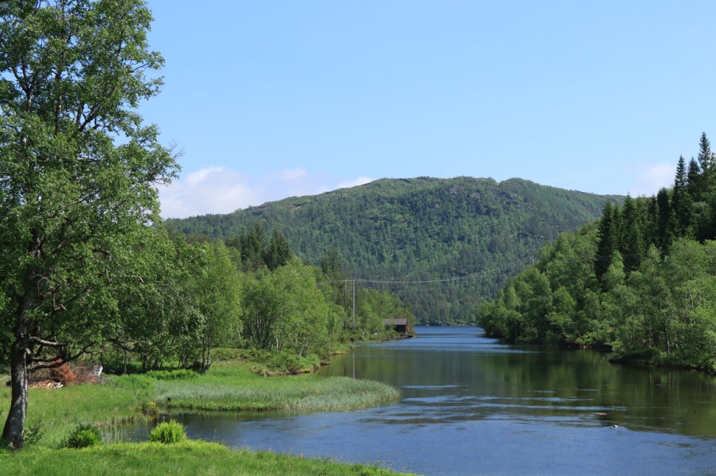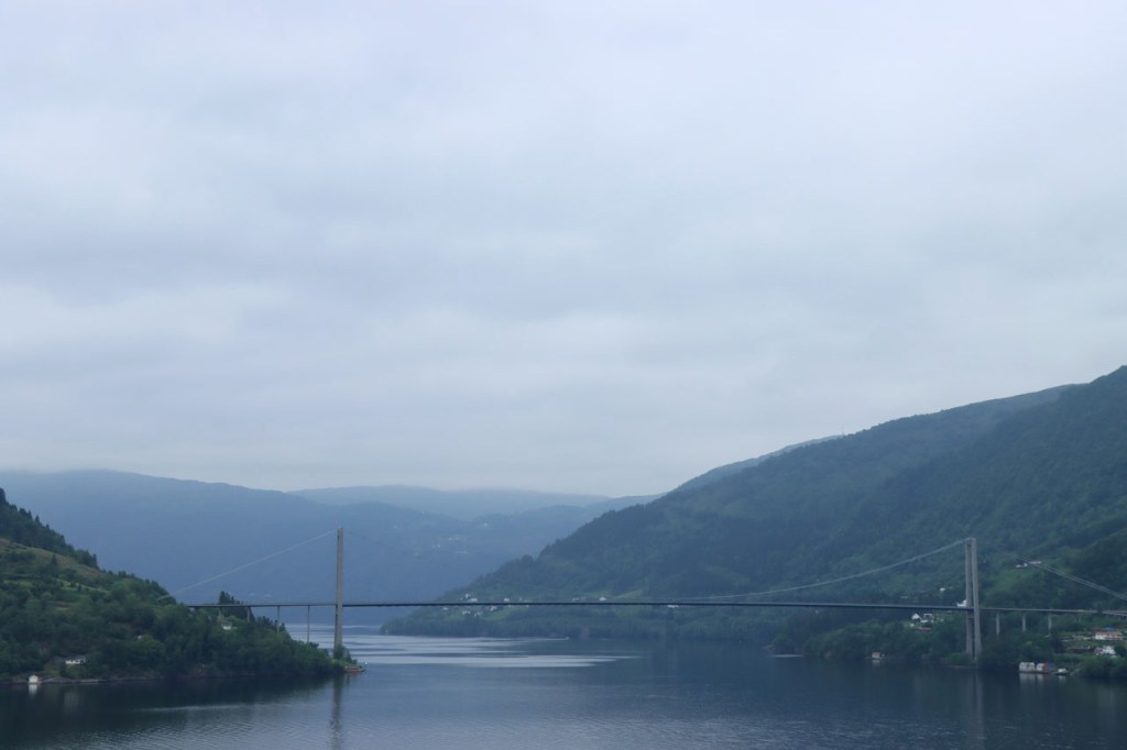 Gisteren heb ik bij Bergen eigenlijk de kust als dusdanig achtergelaten maar dat wil niet zeggen dat ik meteen de zee niet meer te zien krijg, hij werkt zich in Noorwegen soms een heel eind landinwaarts 😉 . Toch kom ik al stilaan in een ander Noorwegen, het Noorwegen van de meren, rivieren, watervallen en hogere bergen, vandaag toch al boven de 400 meter, en plateaus.