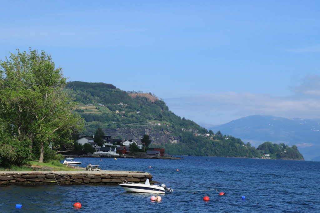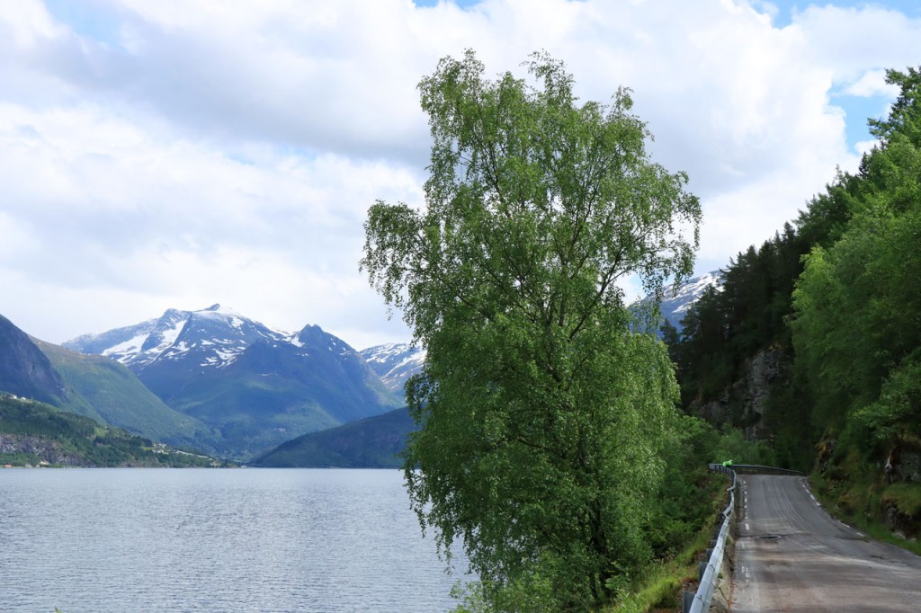 Vanaf Kvanndal kwam ik op wegen waar ik al eerder gefietst heb, 15 jaar geleden dus. Ik herinner me dat ik toen de veerboot nam vanuit Kinsarvik. Op de kaart kijkend herinner ik me ook dat ik de avond ervoor kampeerde bij Lofthus, in een boomgaard die er wat plaatsen als camping bij hield. In het kleine kookhoekje had hij ook een ijskast met drank en snacks die op vertrouwen te nemen en te betalen waren. Ik stond daar op een hoek van de boomgaard en kon ’s avonds bij, toen occasioneel, mooi weer met een koud biertje in de hand genieten van een prachtig uitzicht over de fjord. Eén van de mooie herinneringen aan die reis. Ik weet ook nog dat er, naar ik meen de dag na mijn passage, een loopwedstrijd zou gaan van Lofthus naar Kinsarvik, bepaald geen makkelijk parcours want de weg liep er niet bepaald beneden langs de rand van de fjord.