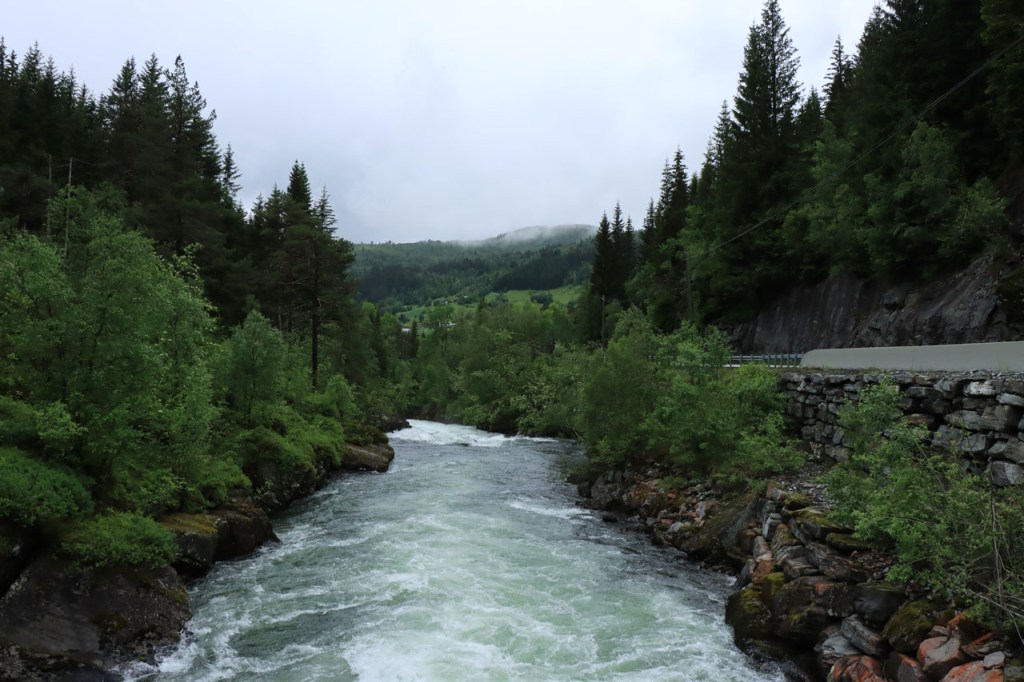 Ik had vandaag 2 opties om naar Voss, mijn volgende bestemming, te rijden: een kortere, waarbij ik vandaag naar Voss zou rijden, en een langere, waarbij ik pas morgen in Voss zou aankomen. Ik had vooraf bij de planning de langere ingekleurd maar kreeg daarover toch twijfels. De kortere was waarschijnlijk wel een stuk drukker en zat vol van tunnelen, eerder korte maar toch. De beslissing werd eigenlijk voor mij gemaakt voor ik aan de splitsing kwam. Onder andere door de extra kilometers die je als fietser voorgesteld krijgt, was ook de kortere route niet echt aangewezen om in 1 dag te doen en ik zag daar geen campings. Ook de langere route had overigens de nodige kleine tunnels, voor mij telkens goed voor wat extra kilometers om ze te omzeilen.