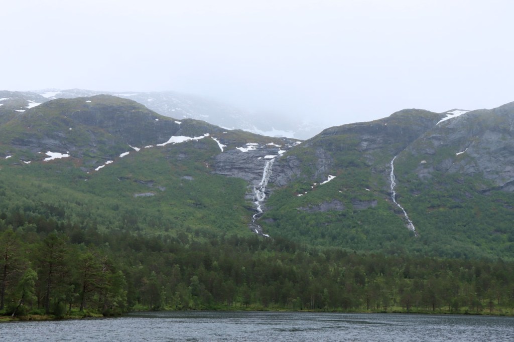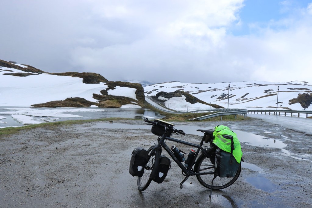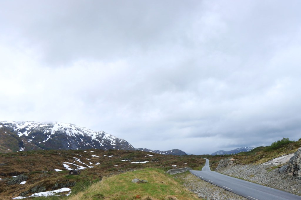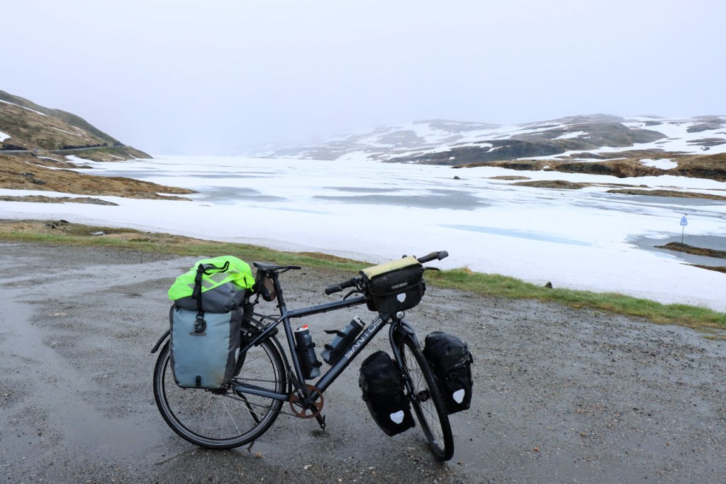 De fjell boven was erg mooi en bijzonder maar het was er ook nog steeds nat en koud, ik heb dus geen beelden van het bevroren meer boven en van de sneeuw langs de kant of de wolken waar ik door ging … Met een zonnetje was dit allemaal prachtig geweest. Er was aan het begin bevroren meer ook een hotel en cafetaria, waar ik een duur broodje zalm at en er maar meteen een handdoek bij vroeg … en kreeg 🙂 .