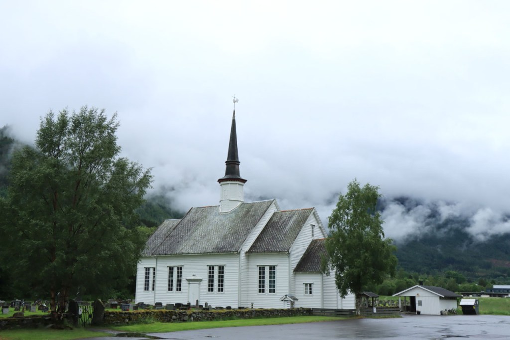 Bergen is een heel mooie en aangename maar ook een grote stad en ik was er al 4 keer eerder. Ik had dan ook al lang besloten om ze deze keer voorbij te laten gaan. Ik zou wel tot Fantoft rijden. Ik had ergens gelezen dat daar een mooi staafkerkje stond en die had ik bij mijn vorige keren nog niet bezocht. Staafkerken zijn oude Noorse kerkjes in hout die opgebouwd zijn rond palen, staven dus. De kerkjes zijn ook puur uit hout gemaakt, er werd geen gebruik gemaakt van nagels of lijm maar enkel met houten pennen of verbindingen. Het opvallendste aan de staafkerk van Fantoft was de ligging, midden in het bos. Je moet ze dus wel even vinden, nog Fantoft nog het kerkje worden uitbundig aangeduid met wegwijzers. Wat dat betreft had het toch makkelijker geweest om naar het centrum te rijden 🙂 . Ook wegkomen was niet makkelijk. Je zit er toch al in de ruime agglomeratie rond Bergen, met veel wegen waarvan niet altijd duidelijk is waar ze uiteindelijk naartoe leiden. Het duurde kilometers voor ik echt zeker was dat ik op de goeie weg was en het waren geen simpele kilometers 😉 . Het had vandaag wat korter gekund maar ook wat langer kunnen geworden zijn.