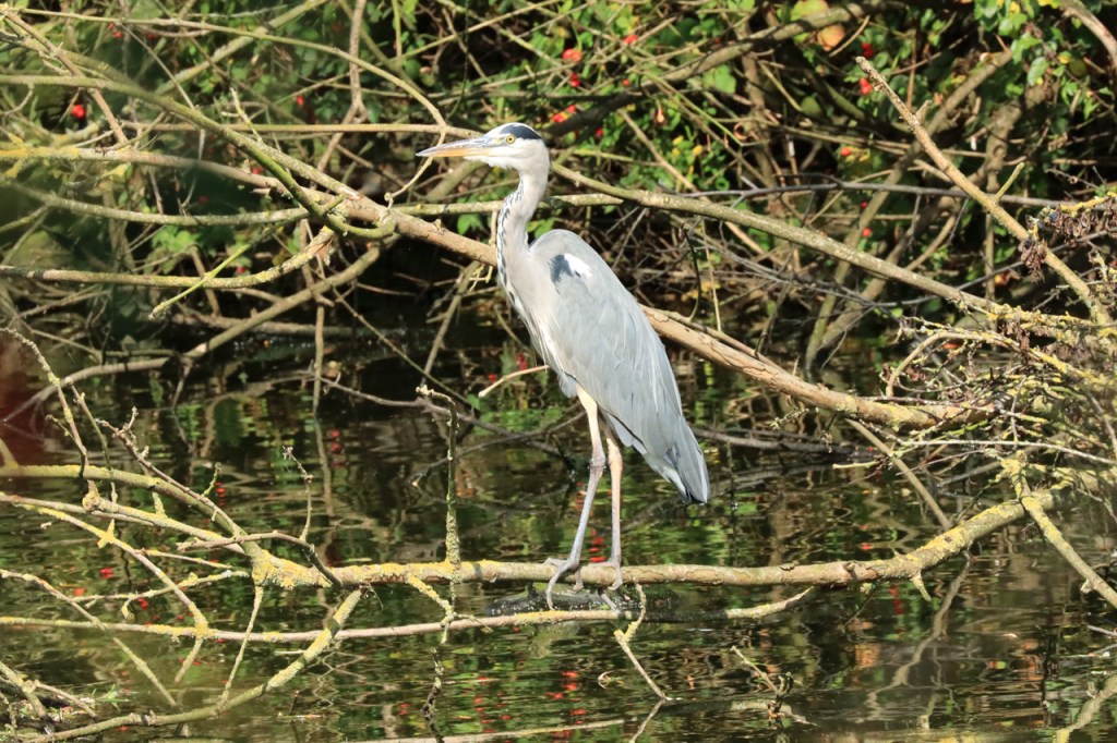 De ijsvogel zat vandaag weer waar je hem eerder mag verwachten, kort boven het water dus. Ik zag hem zelfs enkele keren duiken en de laatste keer blijkbaar met succes, al zijn de foto’s wat onscherp om te zien wat hij precies ving.