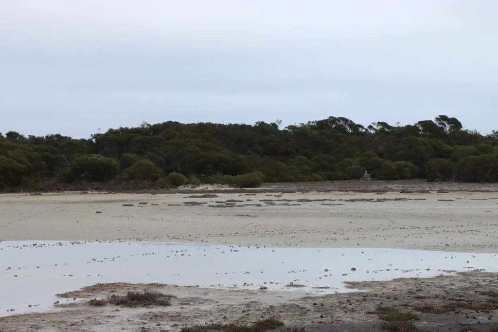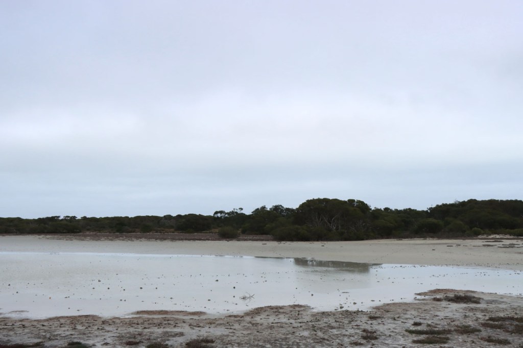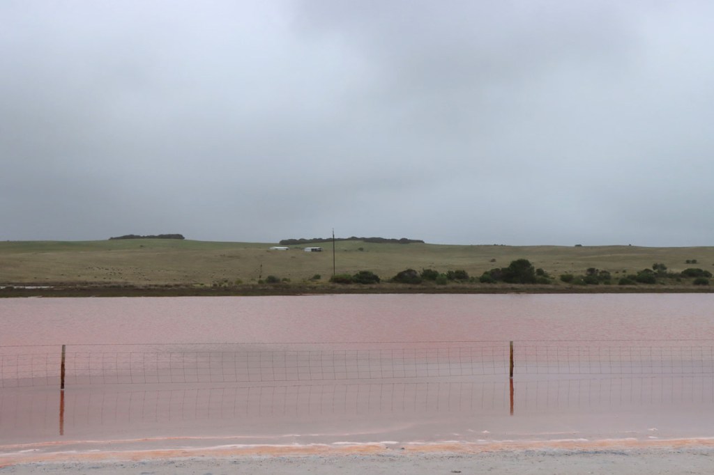 Ik passeerde ook de streek van de “Pink Lakes”. Door algen in het water kleurt dit roos maar onder de grijze hemel van vandaag leek dat toch maar beperkt. Ik zag mogelijk ook niet het meest explicite van de meren, niet datgene waarnaar men vanuit Adelaide uitstappen organiseert.