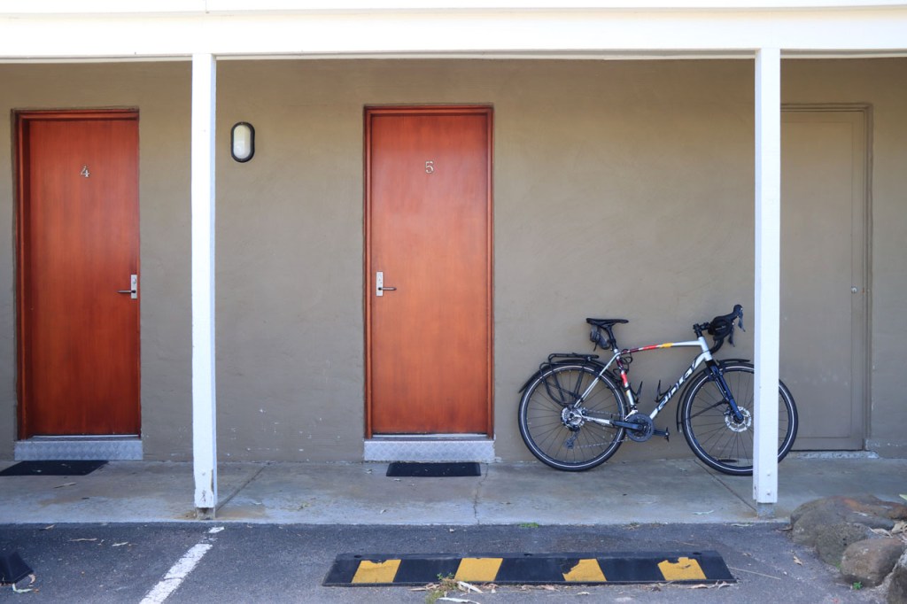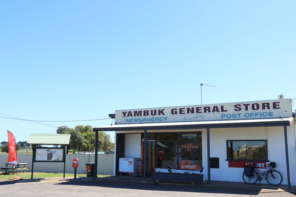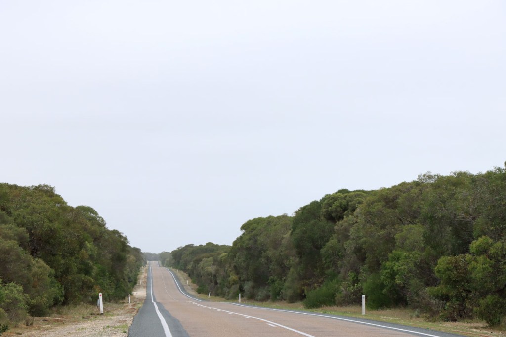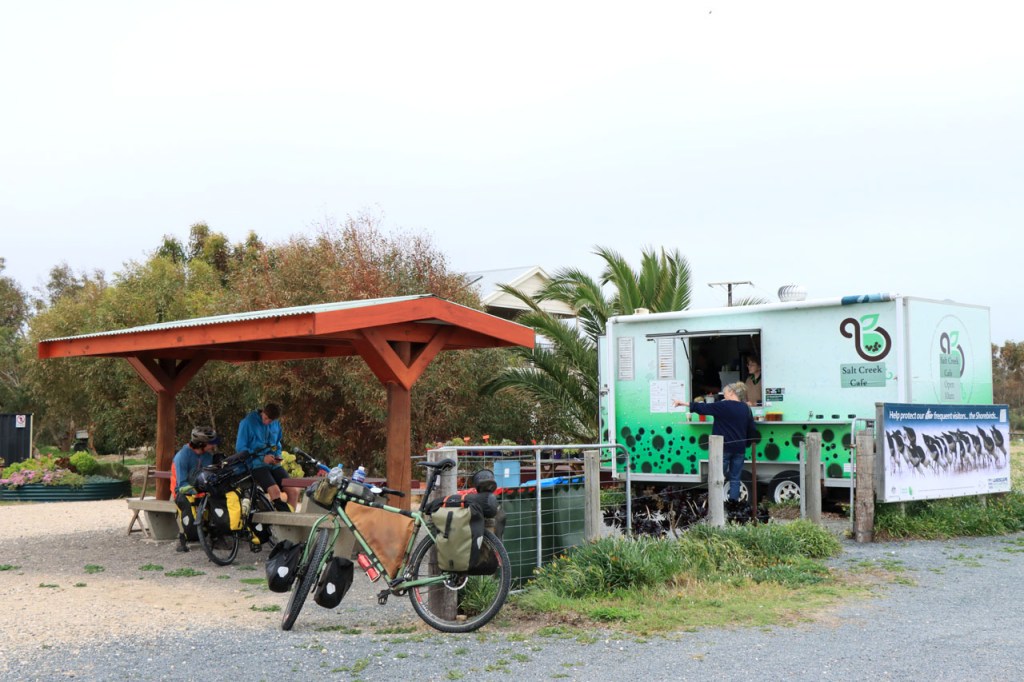 Een lange rit dus, zo’n 150 Km en allemaal over dezelfde weg. De rit was echter onontkoombaar, er was gewoon niets tussen Melingie en Kingston. Het “Salt Creek Cafe” was, na 60 Km, de enige mogelijkheid om te pauzeren. Ik ontmoette er ook 2 jonge Melbourners, één ervan kwam ik eergisteren al eens tegen. De gasten kamperen wild en zijn dus niet aan accommodaties gebonden. Mijn gids zag hier ook een mogelijkheid om te overnachten in een hostel maar online kon ik daar niets van terugvinden en dat risico heb ik dus niet genomen. Ik zag vandaag wel het gebouw maar de zaak was schijnbaar ook één van die covid slachtoffers, niet meer actief dus.