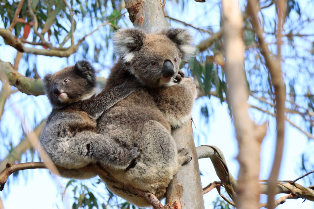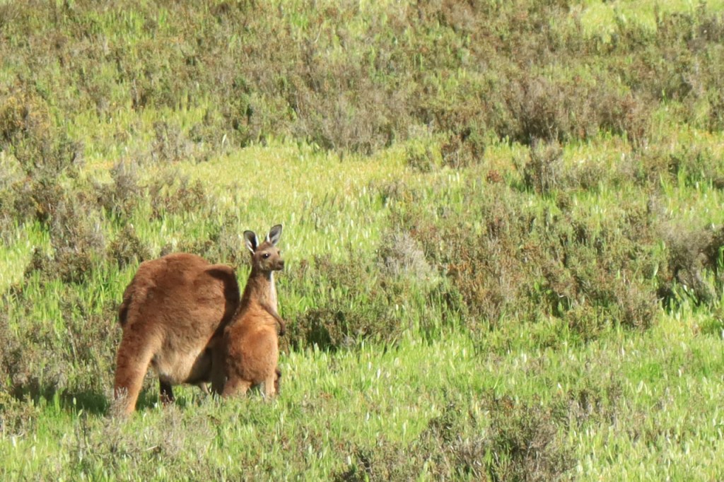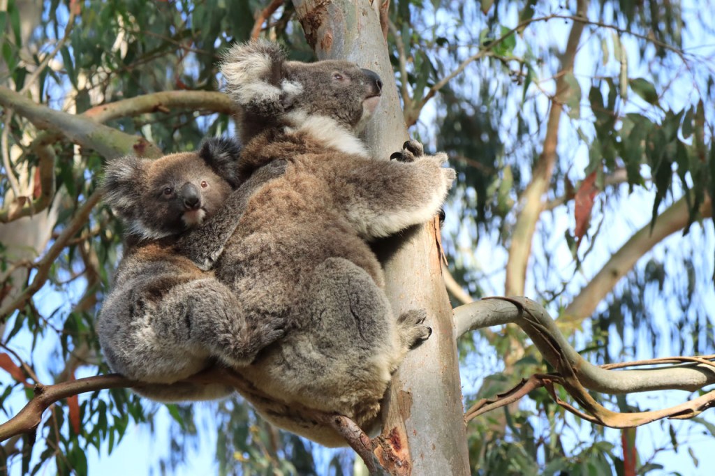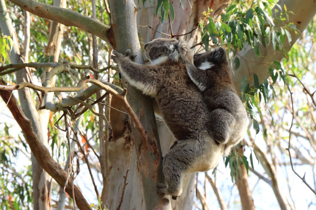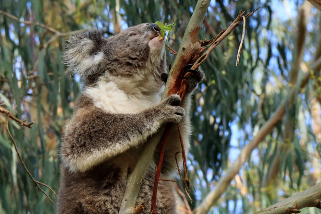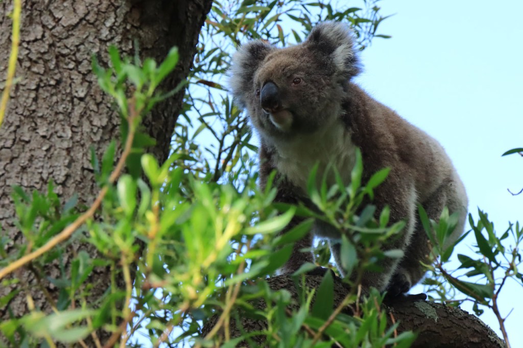 Ondanks de lange lastige weg kon ik toch mijn geluk niet op vandaag. Wanneer je naar Australië komt dan reken je erop om kangoeroes te zien, ze zijn wel eerder nocturnel maar ze zijn zowat overal en behoorlijk goed zichtbaar. Bovendien zullen ze wel wat drukker zijn bij avondschemering en ochtendgloren maar zijn, zoals de reeën bij ons, toch ook gewoon overdag actief. Koala’s zijn een andere zaak. Ook die hoop je stilletjes wel te zien maar die zitten overdag wel rustig hoog in hun boom en de kans om ze daar te spotten is echt wel klein en net dat is me vandaag dus wel gelukt 🙂 .