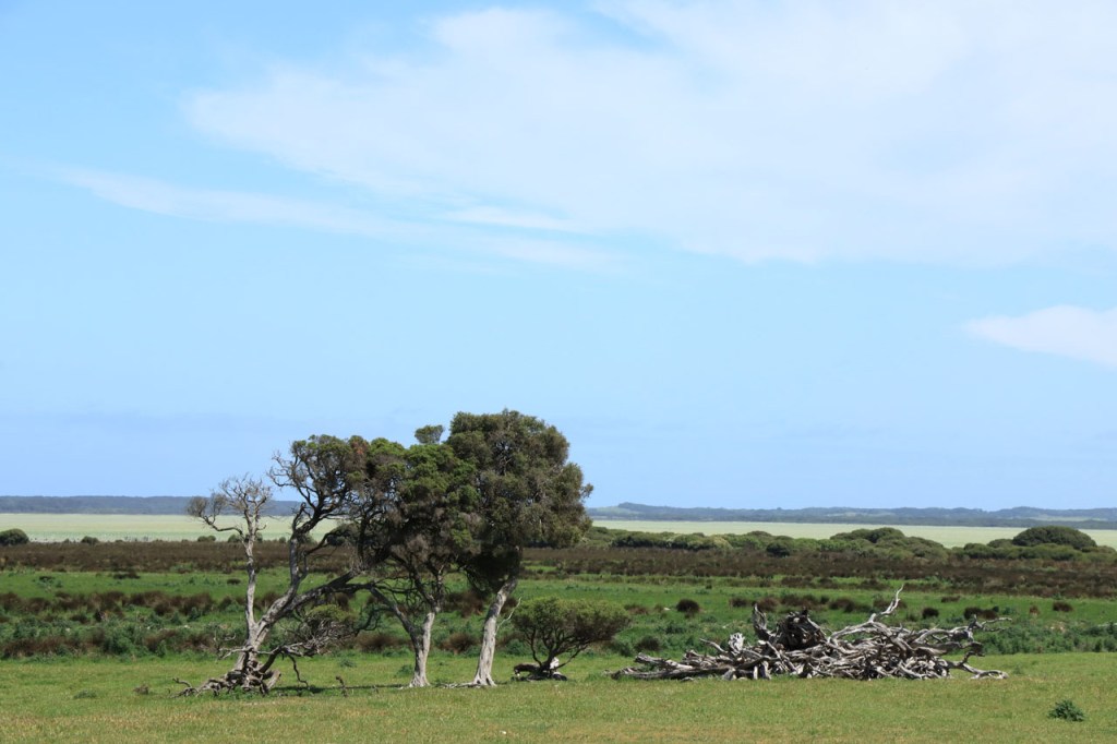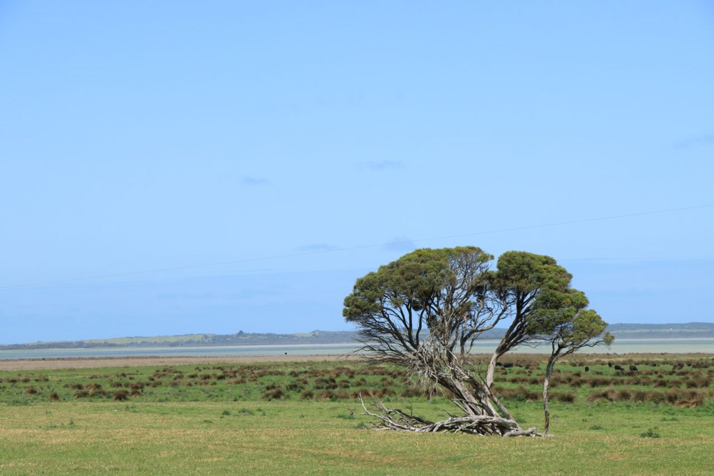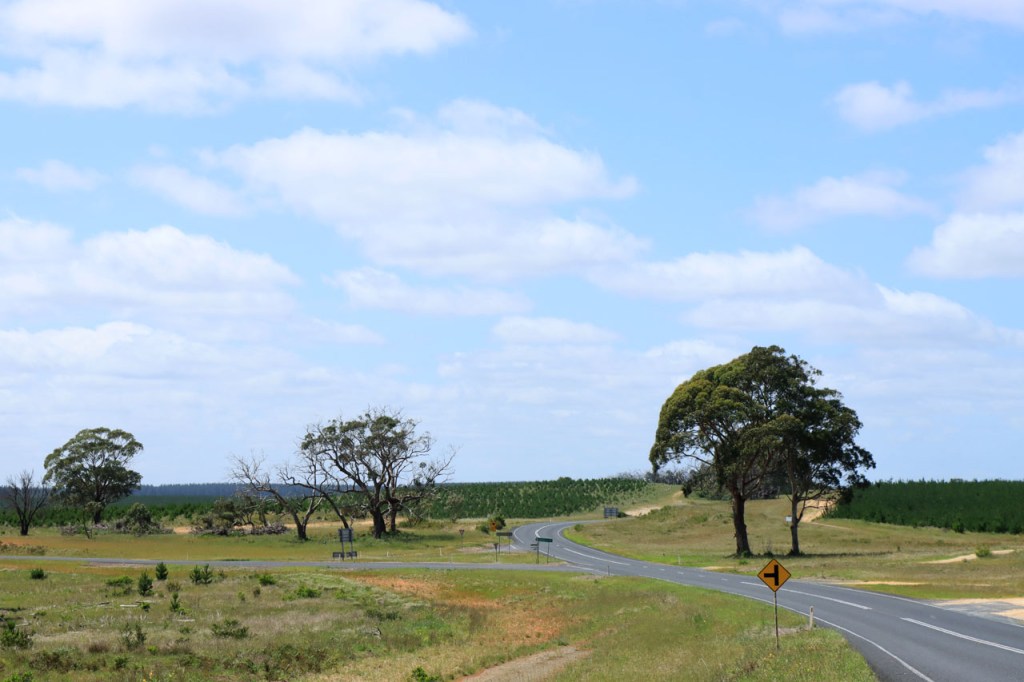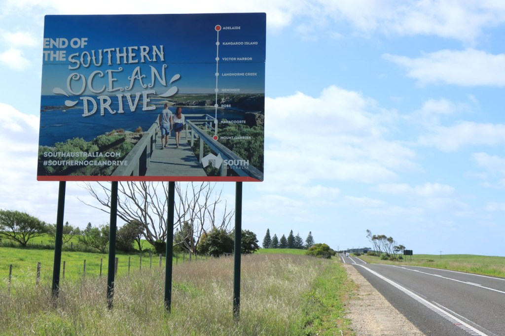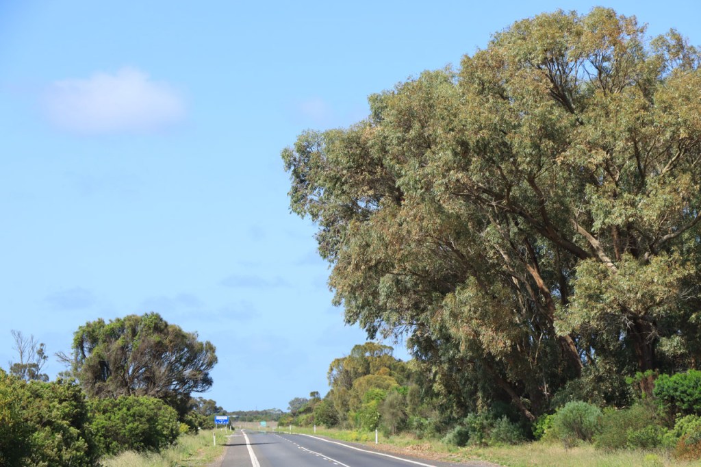 Vandaag weer een stevige rit en het was daar geen aangename route voor. Hoewel het eigenlijk een kleinere weg was, was het er relatief druk en met een vrij groot aandeel vrachtverkeer. Bovendien bolde de weg ook niet echt door het constant op en neer golven van de weg. Even voor Nelson stak ik de staatsgrens over, van South Australia naar Victoria. Het was meteen ook het einde van de Southern Ocean Drive, die de afgelopen dagen zowat mijn vaste companion was, die hoort bij South Australia. Ik ging er ook meteen een half uur in de toekomst, een nieuwe tijdszone 🙂 .