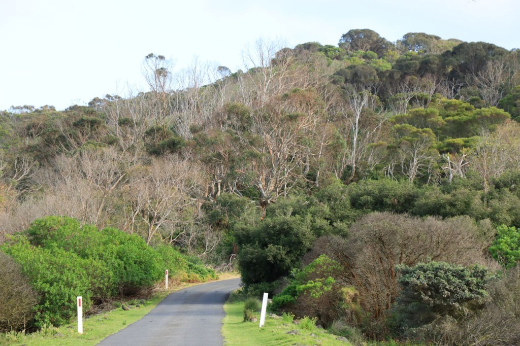 Een beetje voorbij de Twelve Apostels verliet de weg terug de kustlijn, als je het fijn bekijkt dan loopt die grote oceaan weg niet echt veel langs de oceaan 🙂 . Als je over de Great Ocean Road hoort dan gaat het steeds over het spectakel langs het stuk kust dat ik deed maar niemand heeft het over de bergen waar je over moet. De eerste was vooral lang maar de tweede was pas echt lastig, vooral in het begin bijzonder stijl en zonder enige onderbreking. Het was echt wel een stevige rit vandaag.