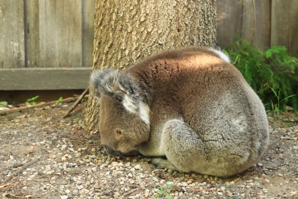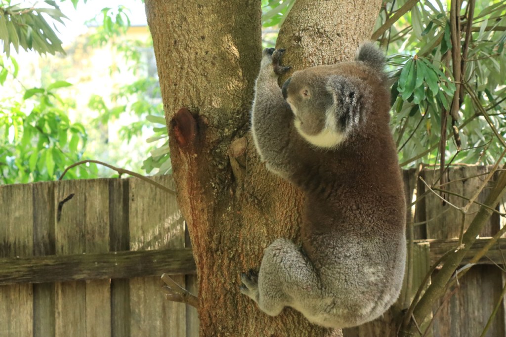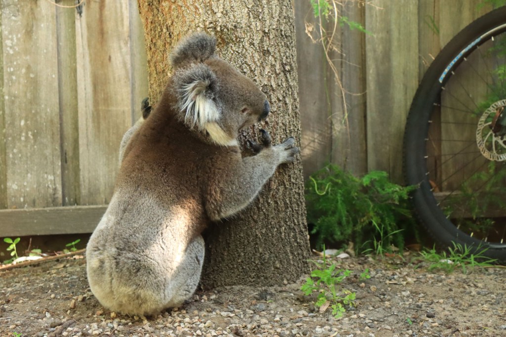 Er verscheen deze namiddag zomaar een koala in de tuin van de hostel. De foto’s zijn door de glazen deur genomen maar die was blijkbaar goed proper 🙂 .