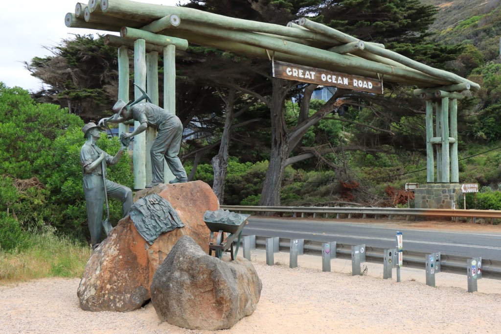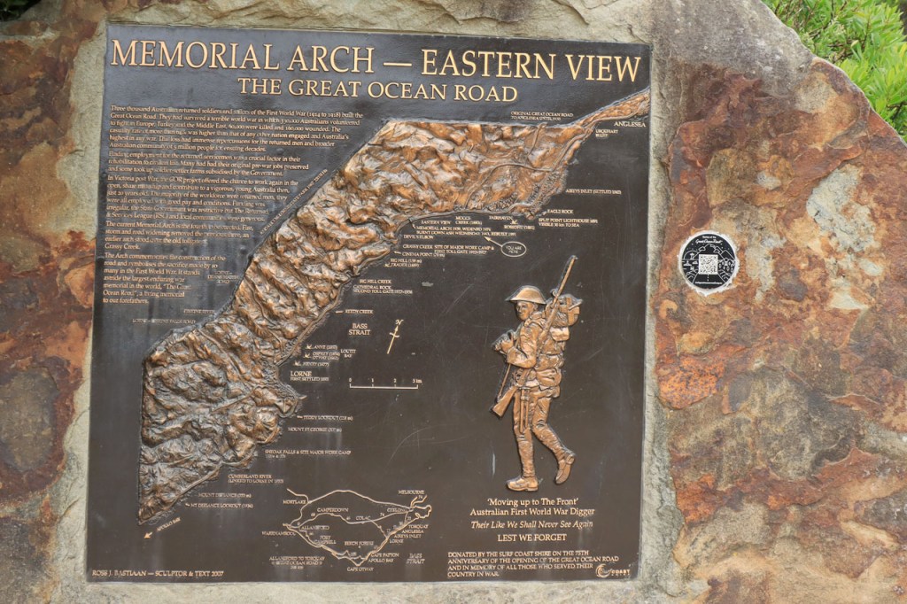 Aan de Great Ocean Road werd begonnen in 1919, door uit wereldoorlog 1 teruggekeerde soldaten, en er werd tot 1932 aan gewerkt. Ze werd opgedragen aan de gesneuvelde soldaten van die eerste wereldoorlog en geldt daardoor als het langste oorlogsmonument. Ook nu wordt er weer aan gewerkt. Op 4 november wordt een groot stuk, van het deel dat ik vandaag deed, afgesloten voor onderhoudswerken. Best dat ik geen week later ben dus 🙂 .