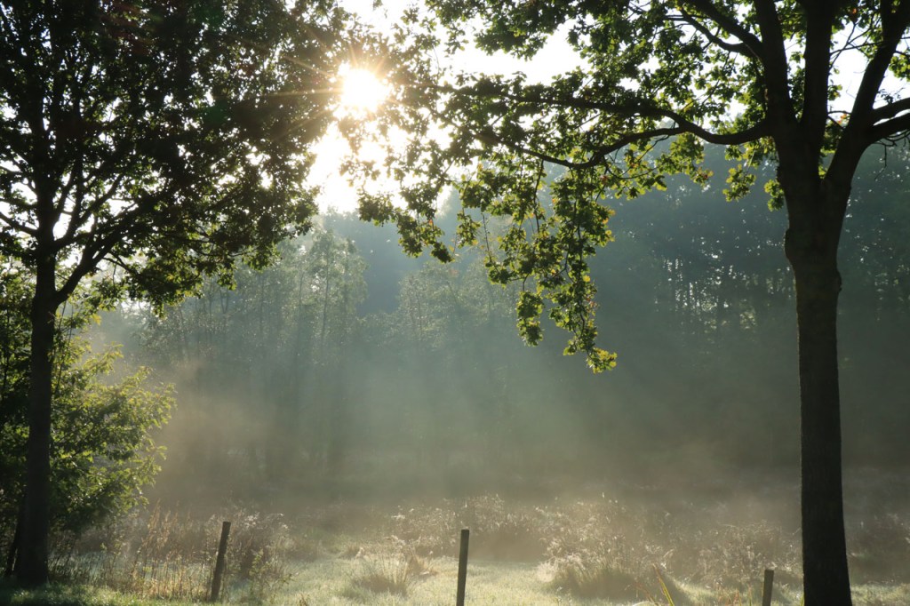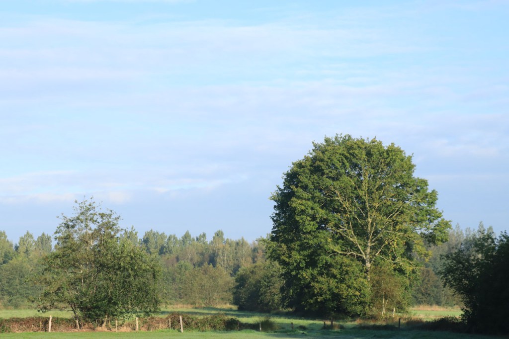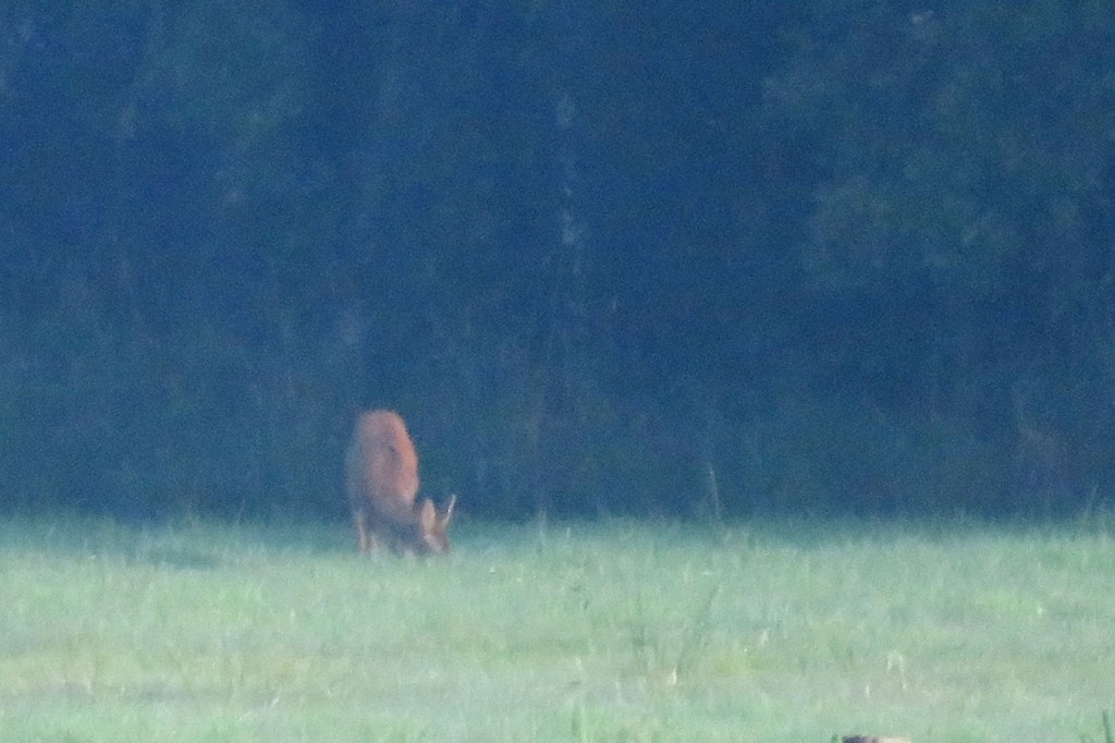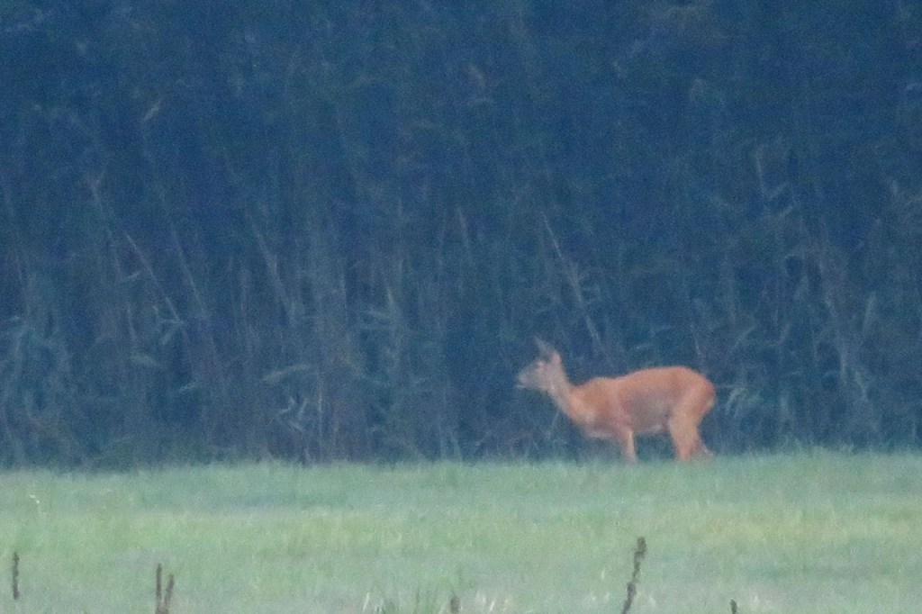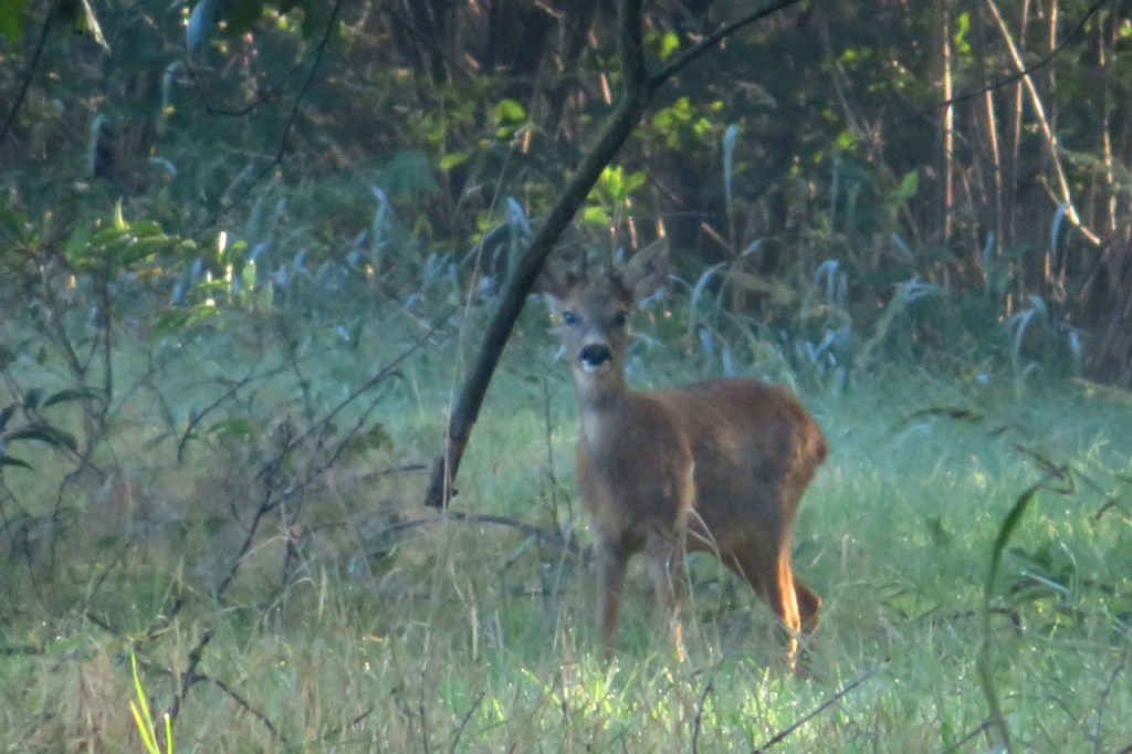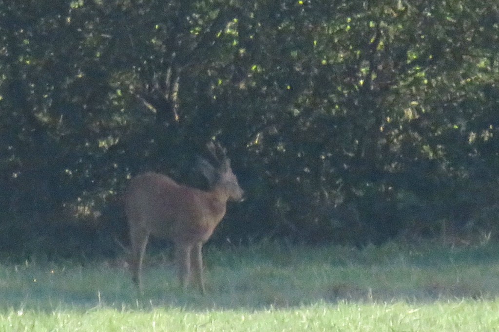 Vandaag begon ik met een mooie ochtendwandeling, een beetje mijn standaardwandeling hier zoals de Verdronken Weide dat is in Ieper. Vanmorgen was ze wel bijzonder mooi door de omstandigheden. Een individuele reis doe ik, vanwege plaats en gewicht, wel zonder grote zoomlens, ik moest me vandaag dus ook met mijn pocketcameraatje behelpen voor “ver weg” foto’s. Dat cameraatje zoomt ook wel goed maar, zoals al wel eens eerder gezegd, verliest dus wel vlugger aan kwaliteit van het beeld, zeker als het licht niet ideaal is. Ik zag vanmorgen 5 aparte, individuele reeën. De laatste 2 zaten wel echt ver weg. De middelste zag ik het mooist, met de zon er mooi op, maar die kreeg ik niet echt in beeld. Er hingen wat bladeren in de voorgrond, waar mijn camera op focuste, en met die kleine camera kan ik niet overschakelen naar manuele focus.