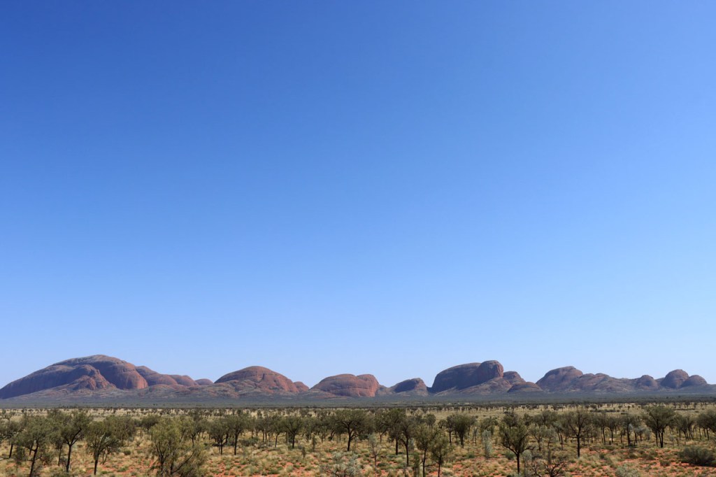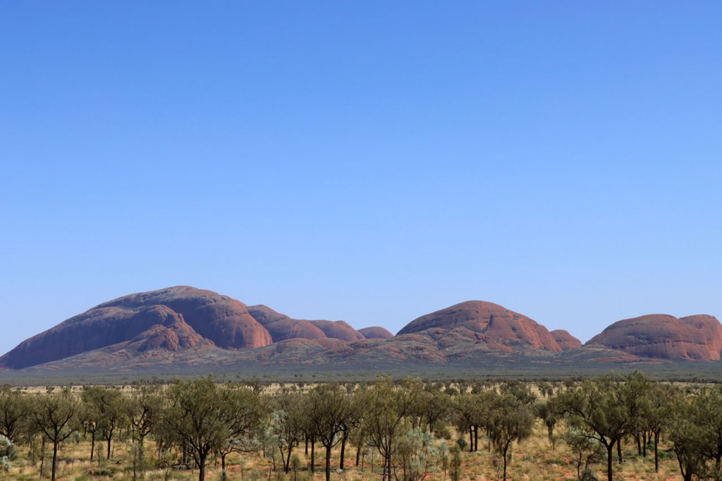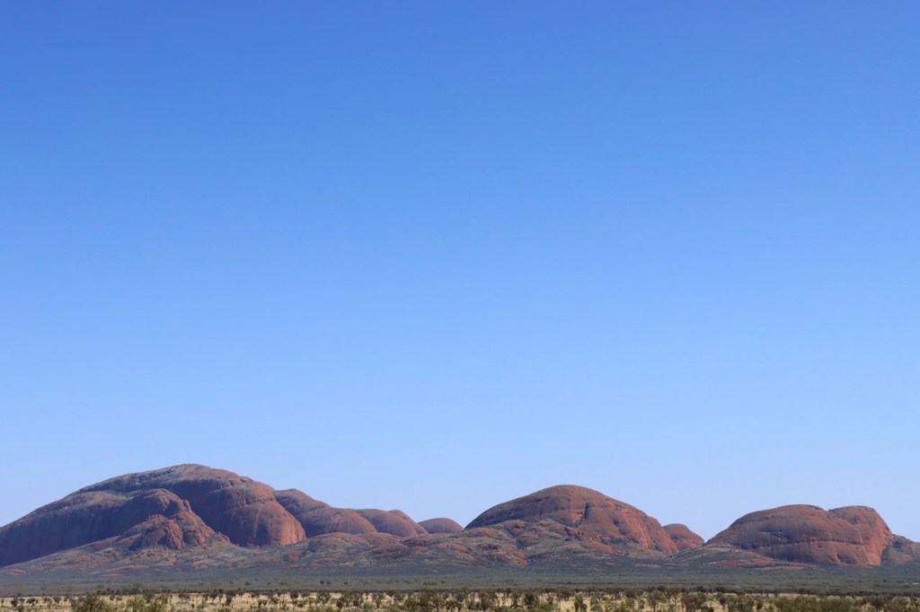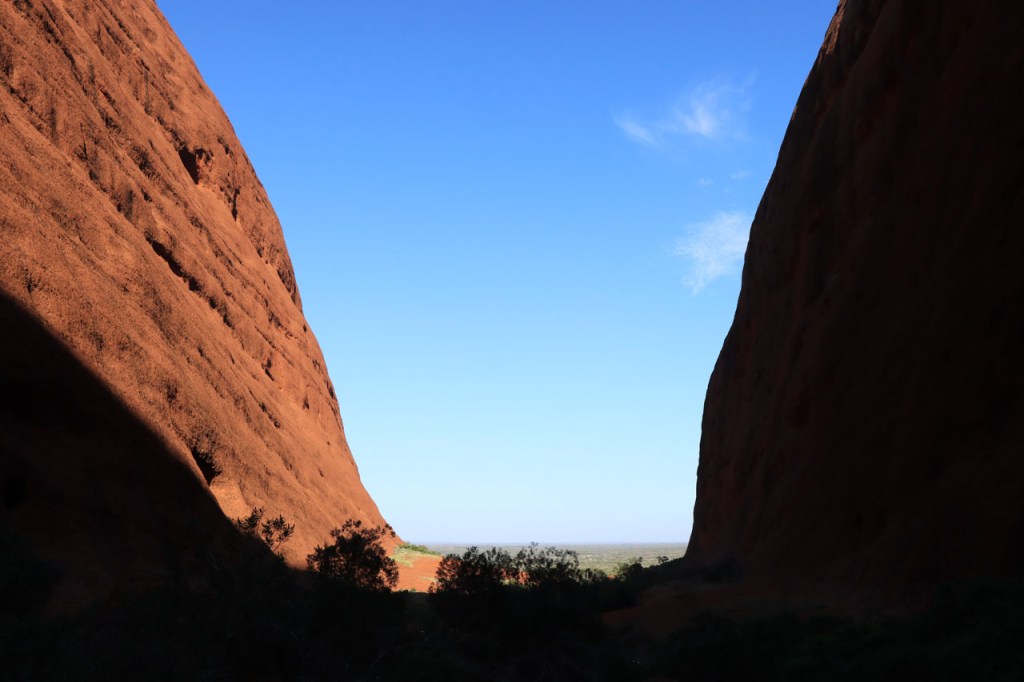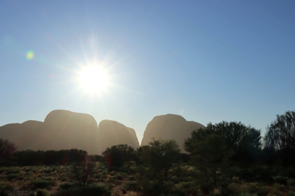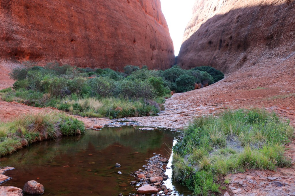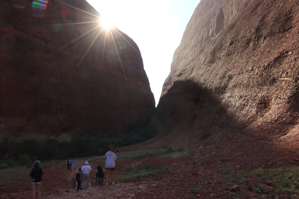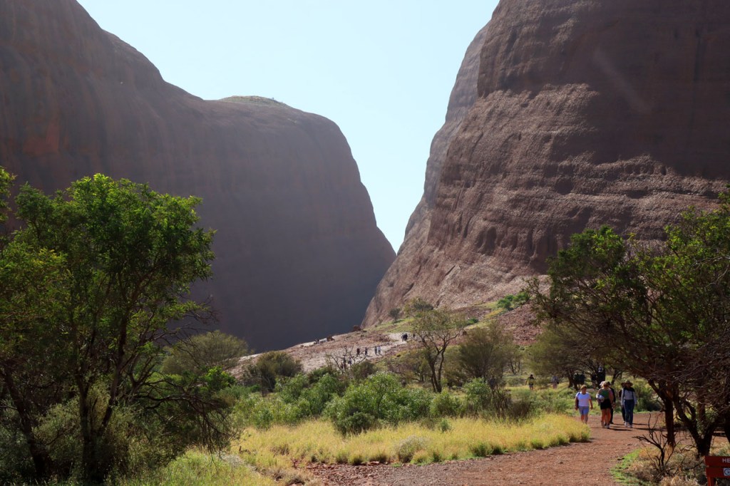 Ons doel, na de zonsopgang, was Kata Tjuta of de Olgas, de laatste van de 3 bergen in de streek. Fooluru, officieel Artilla of Mount Conner, is een geval apart, en een paar miljoen jaar ouder, maar Uluru en Kata Tjuta zijn aan elkaar verbonden. Van de 3 uitstappen was deze toch wel de minste maar meteen ook de kortste. Het leek me dat dit programma speciaal samengesteld was om nog in een voormiddag te kunnen doen, voordat mensen in de namiddag dan hun reis naar andere oorden verderzetten. Alle vluchten, en één bus, lijken omstreeks de middag te vertrekken. Voor mij volgde om 12u45 dus weer de lange rit terug naar Alice Springs. Ik geloof niet dat ik op zo’n korte tijd al zo veel op de bus gezeten heb en zaterdag begint er nog een heel lange rit, die pas zondag zal eindigen.