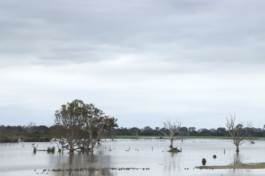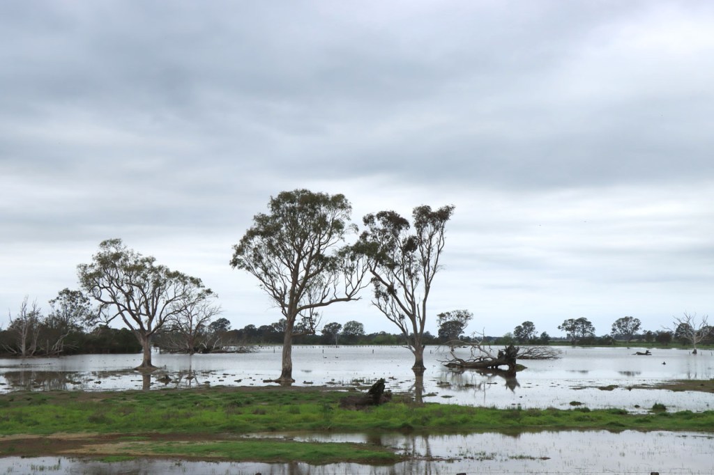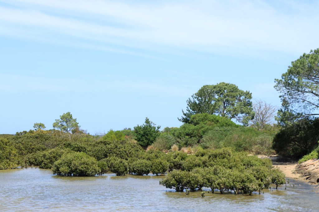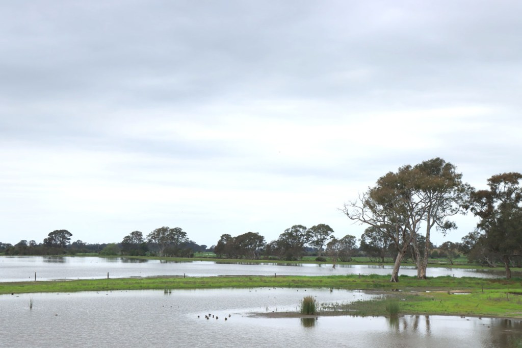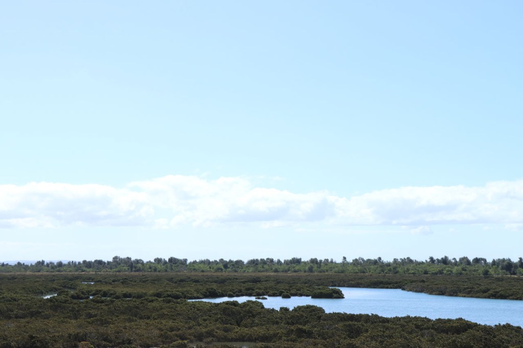 Eerst nog een paar dingetjes die ik gisteren vergat. De laatste foto’s zijn geen overstromingen, al zien ze er zo wel een beetje uit, maar de uitlopers van enkele meren in de buurt. Ik was gisteren extra blij dat ik steeds met helm rij toen ik te maken kreeg met een “angry bird attack”, zo’n grote wit-zwarte ekster/kraai type. Ik kreeg al eerder te maken met schijnaanvallen van deze vogels waarbij ze, ik veronderstel met hun bek, een klakkend geluid maken boven je hoofd. Deze ging echter nog wat verder en kwam me met zijn vleugels stevig op mijn hoofd kletsen. Eerst dacht ik dat hij met zijn bek mikte maar dat zou allicht sporen nagelaten op mijn helm en die waren niet te zien. Hoe dan ook, leuk was het niet. Vandaag was het weer een frisse maar stralend blauwe start met de wind, gelukkig, meestal in het voordeel. Na de middag fietste ik weer in korte mouwen maar toen ik op mijn bestemming toekwam, begon het weer alweer om te slaan. De logische route zou vandaag gewoon langs de grote weg gaan, die rechtstreeks langs mijn bestemming liep, maar dat zag ik niet zitten en dus nam ik na een paar kilometer de optie langs wat kleinere wegen. Na 66 Km kwam ik dan wel terug op de grote weg terecht en al bij al bleek het met de drukte nog wel mee te vallen, wel wat drukker dan ervoor maar niet overdreven. Mijn bestemming ligt, zoals de naam als suggereert, de toegang van de zee naar enkele grote meren, ik veronderstel dus minstens voor een deel brakke meren. Vandaag zag ik bij het binnenrijden van het stadje meteen de toeristeninfo, ik ben dus maar meteen eens gaan informeren in plaats van gewoon op zoek te gaan 🙂 .