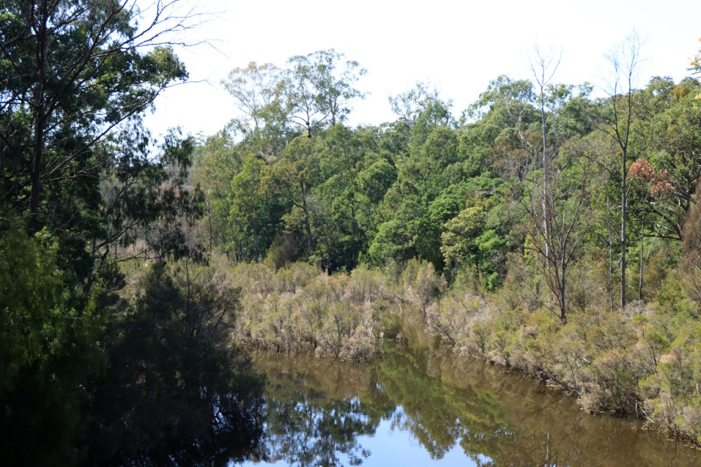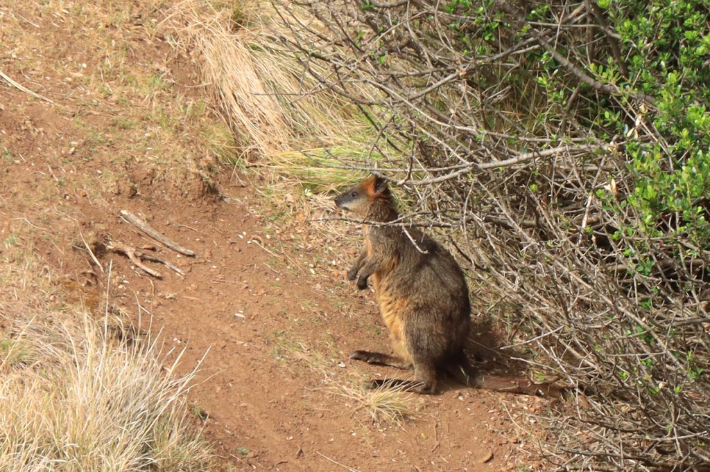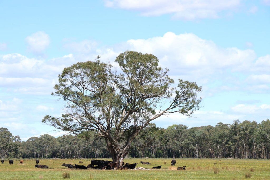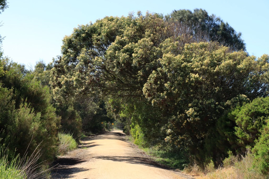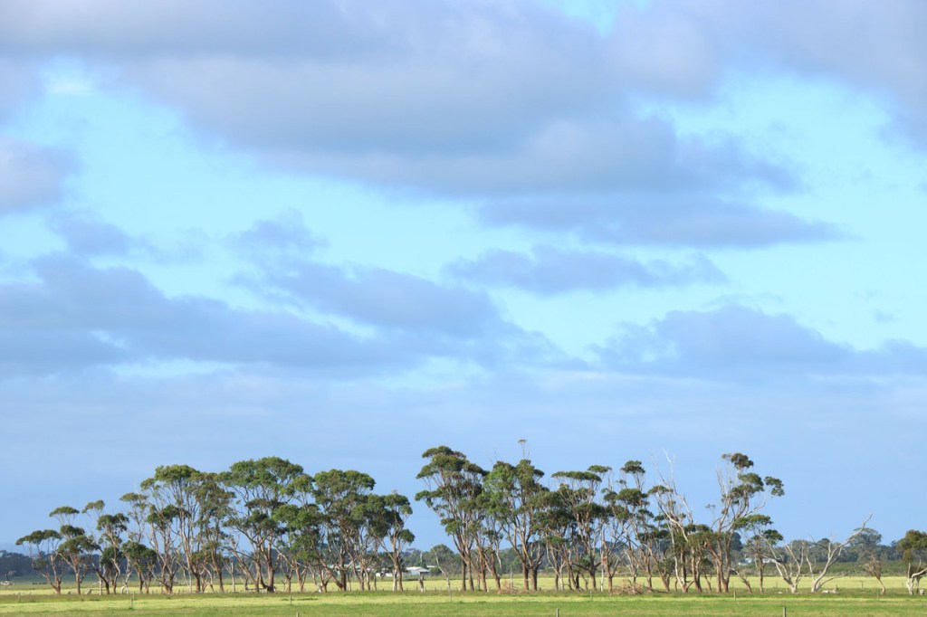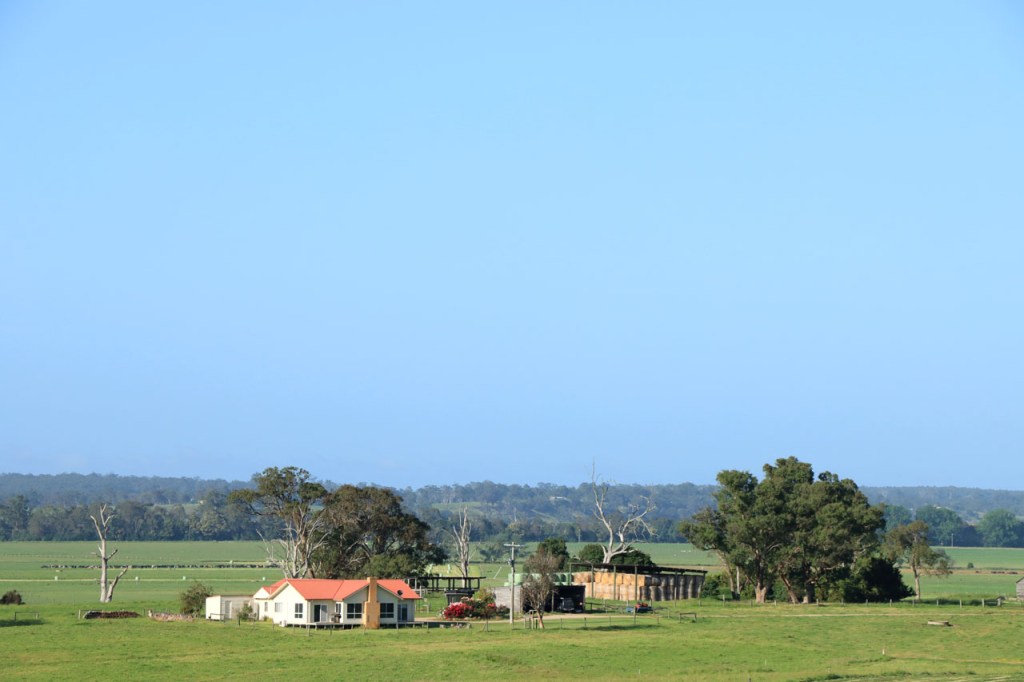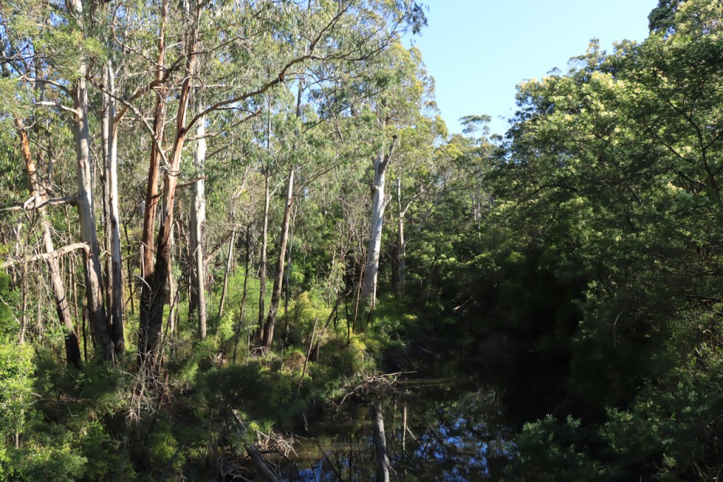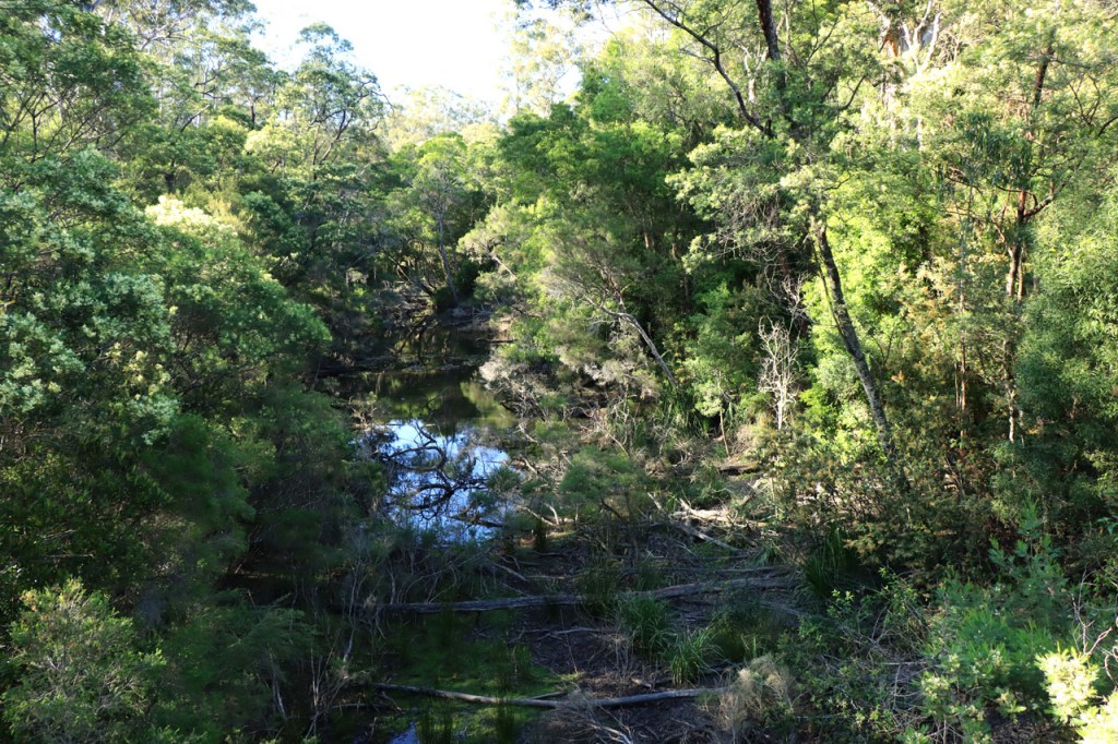 Ik ga vandaag nog eens beginnen met een stukje over gisteren, over het Australisch accent. Over het algemeen kom ik wel behoorlijk goed weg maar af en toe loop ik toch vast. Gisteren vroeg ik aan de gastvrouw, die net op de gang passeerde met een paar nieuwe gasten, het wifi paswoord. Zij antwoordde me, dacht ik, byabfirst . Ik wist niet vanwaar dat kwam maar ik hoorde daarin by a b first. Even verder kwam ik echter in de gemeenschappelijke ruimte, met o.a. de zaken men gewoonlijk in de kamer krijgt, en daar hing het wifi paswoord op de frigo: buyabeerfirst. In het Australisch klinkt dat dus hetzelfde 🙂 . Vanmorgen was het weer stralend blauw. Het lijkt een tendens te worden, ’s morgens mooi blauw maar tegen de middag komen wind en wolken opzetten. De wind bleef vandaag achterweg maar over de wolken maakte ik me af en toe toch wel zorgen, je ziet wel dat het hoogstens bij een bui zou blijven maar ook dat is toch onaangenaam. Zorgen om niets zou echter blijken, het bleef bij overtrekkende wolken. Het was vandaag weer een stevige op en af rit. Ik zag een mooie omgeving, met veel bos, maar weinig foto’s.