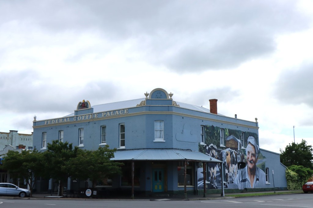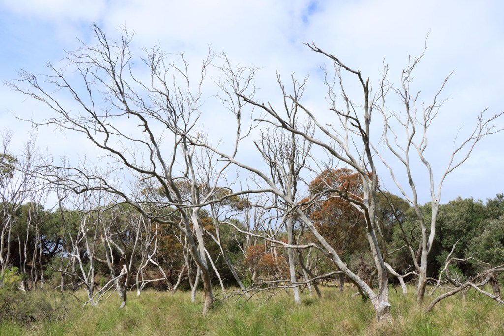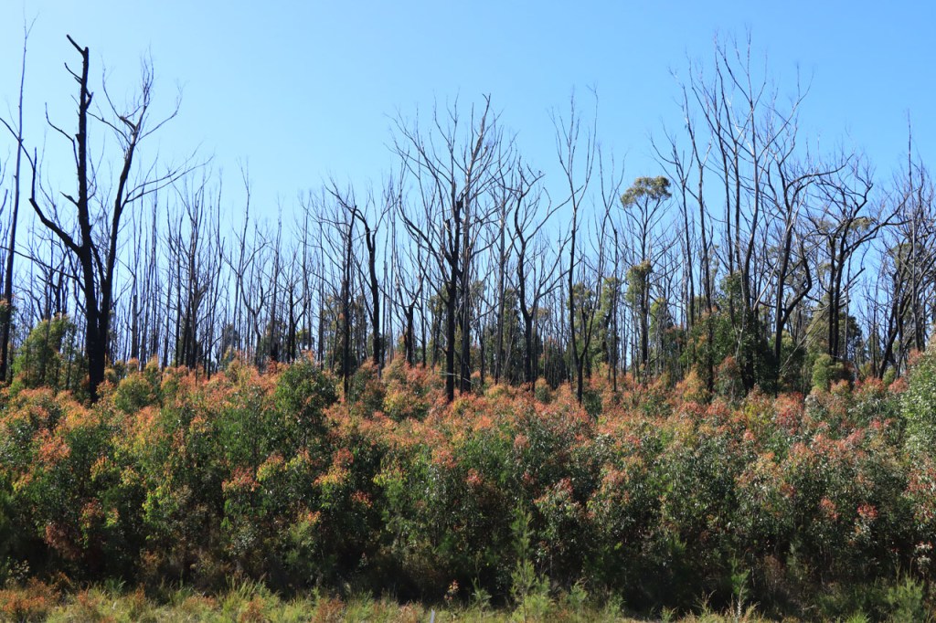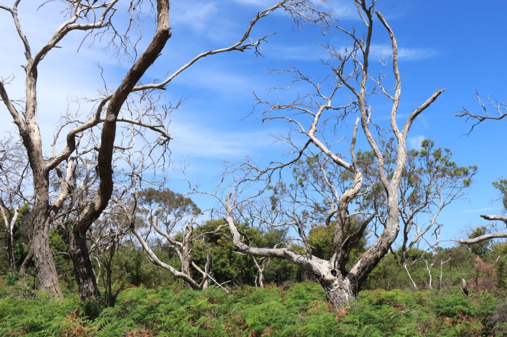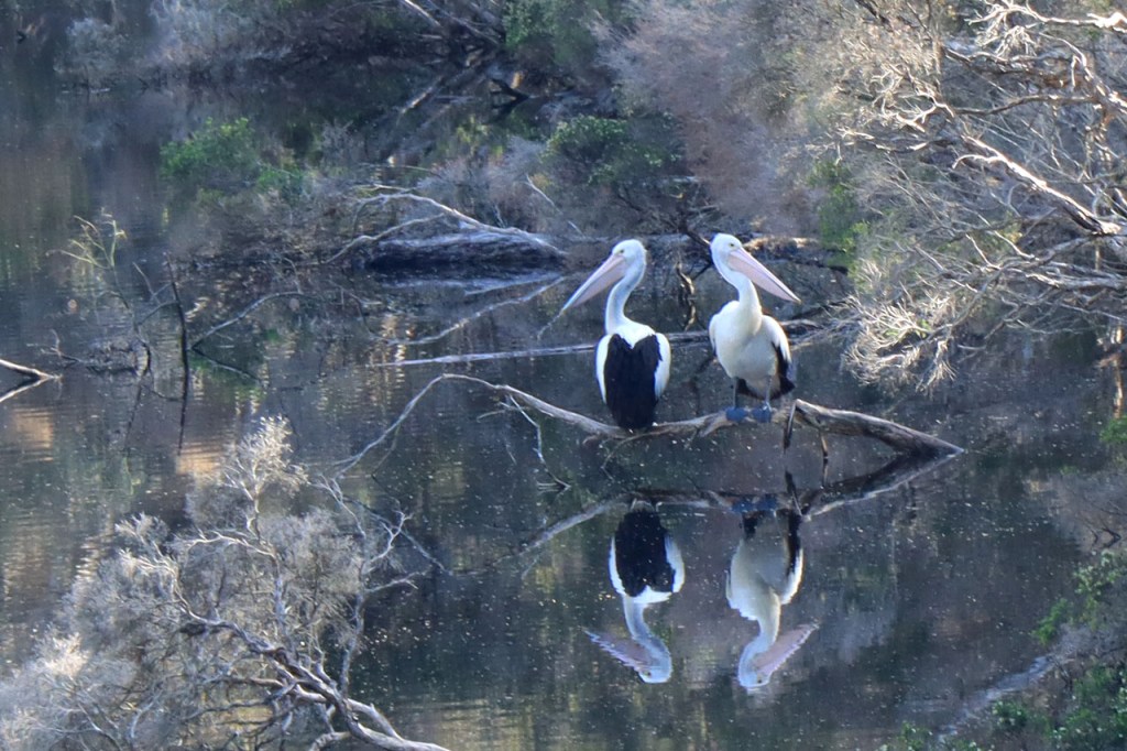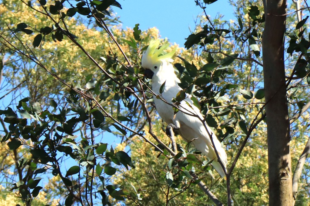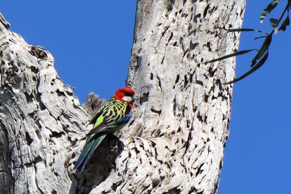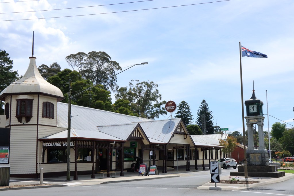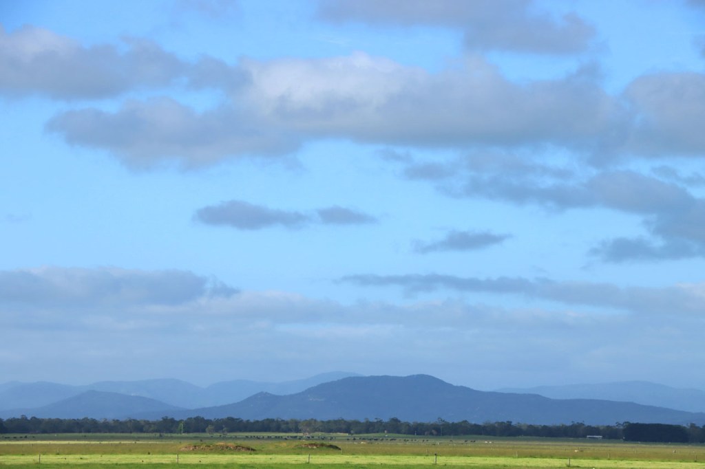 Ik ga vandaag nog eens beginnen met een stukje over gisteren, over het Australisch accent. Over het algemeen kom ik wel behoorlijk goed weg maar af en toe loop ik toch vast. Gisteren vroeg ik aan de gastvrouw, die net op de gang passeerde met een paar nieuwe gasten, het wifi paswoord. Zij antwoordde me, dacht ik, byabfirst . Ik wist niet vanwaar dat kwam maar ik hoorde daarin by a b first. Even verder kwam ik echter in de gemeenschappelijke ruimte, met o.a. de zaken men gewoonlijk in de kamer krijgt, en daar hing het wifi paswoord op de frigo: buyabeerfirst. In het Australisch klinkt dat dus hetzelfde 🙂 . Vanmorgen was het weer stralend blauw. Het lijkt een tendens te worden, ’s morgens mooi blauw maar tegen de middag komen wind en wolken opzetten. De wind bleef vandaag achterweg maar over de wolken maakte ik me af en toe toch wel zorgen, je ziet wel dat het hoogstens bij een bui zou blijven maar ook dat is toch onaangenaam. Zorgen om niets zou echter blijken, het bleef bij overtrekkende wolken. Het was vandaag weer een stevige op en af rit. Ik zag een mooie omgeving, met veel bos, maar weinig foto’s.