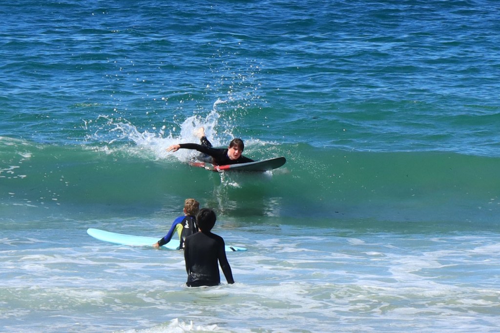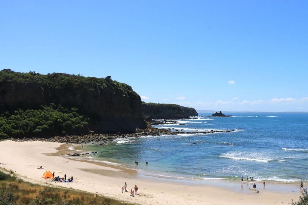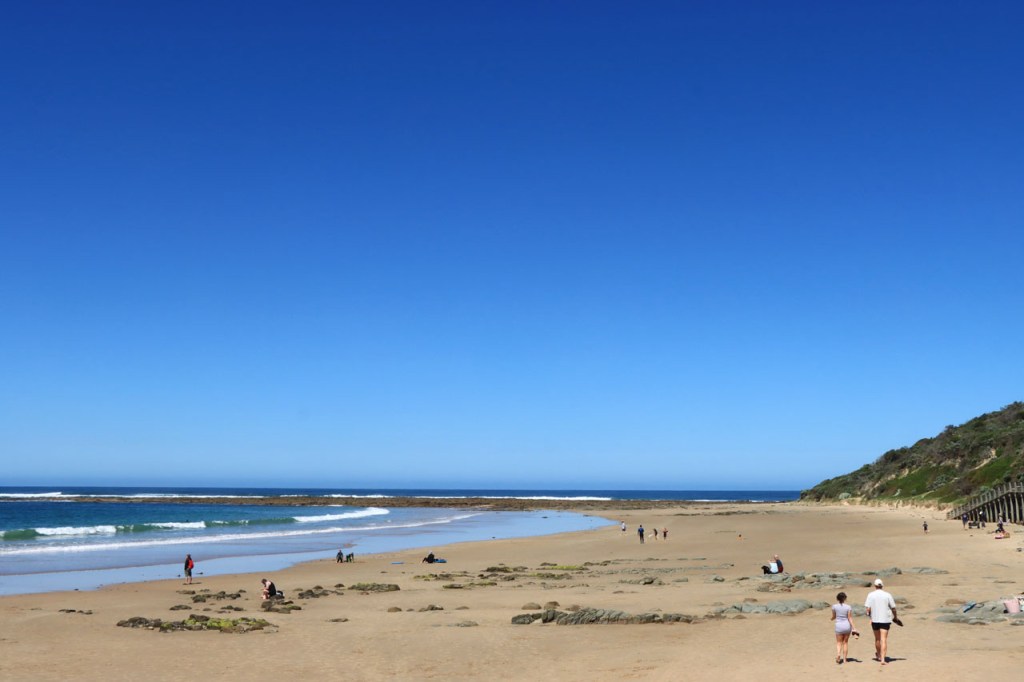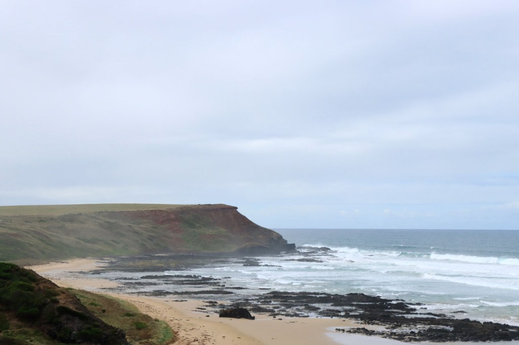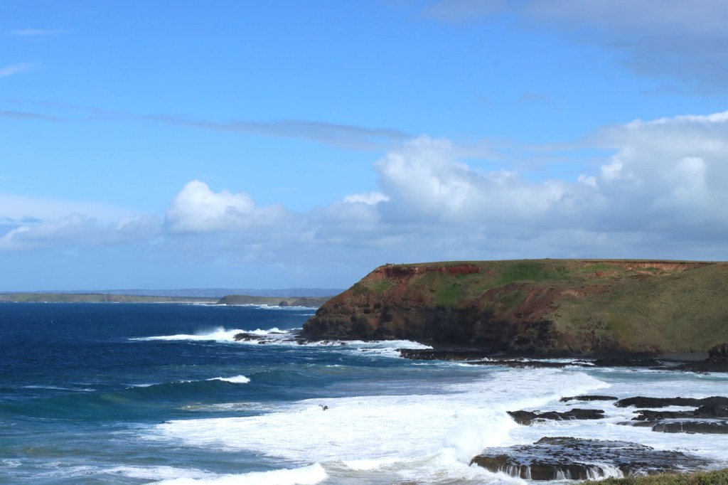 Na de grijze start gisteren, was het vandaag weer stralend blauw. Mijn slechte inschatting van de ligging van het hostel op Phillip Island had ook vandaag nog gevolgen, het zou sowieso al een eerder kort ritje worden maar met de ligging aan de rand van het eiland werd het wel heel kort. Ik dacht van dat een beetje aan te passen door te beginnen met een rondje rond Churchill Island, een klein eilandje niet ver van mijn hostel, tot ik gisterenavond per toeval ontdekte dat ook daar toegang voor moet betaald worden. Ik heb het dan maar laten vallen. Ik nam wel de wat langere route langs de kust naar Inverloch maar dat was toch al de bedoeling. Het was overigens best een mooi stukje kust van Cape Patersen naar Inverloch. Door daar ook even te stoppen bij alle uitkijkpunten, kon ik de rit ook nog wat rekken in tijd 🙂 . Met in Inverloch dan ook nog eerst even te stoppen voor lunch en koffie kon ik het toch nog tot voorbij 1 uur krijgen alvorens in te checken 🙂 . Ik hoorde gisteren van mijn kamergenoot dat het vandaag een feestdag zou zijn. Ik dacht dan dat de Melbourne Cup, die vandaag dus gereden werd, waarschijnlijk aan die feestdag gebonden was, zoals bij ons de Koppenbergcross samen hangt met Allerheiligen. Vandaag onderweg leerde ik echter dat het omgekeerd is, het is een feestdag net vanwege de Melbourne Cup. Ik ken geen ander sportevenement, waar ook, dat leidt tot een openbare feestdag! Zoals bij ons in het hoge noorden en de Alpen de kinderen als het ware met ski’s onder de voeten opgroeien, zo is dat hier langs de kust met surfboards.