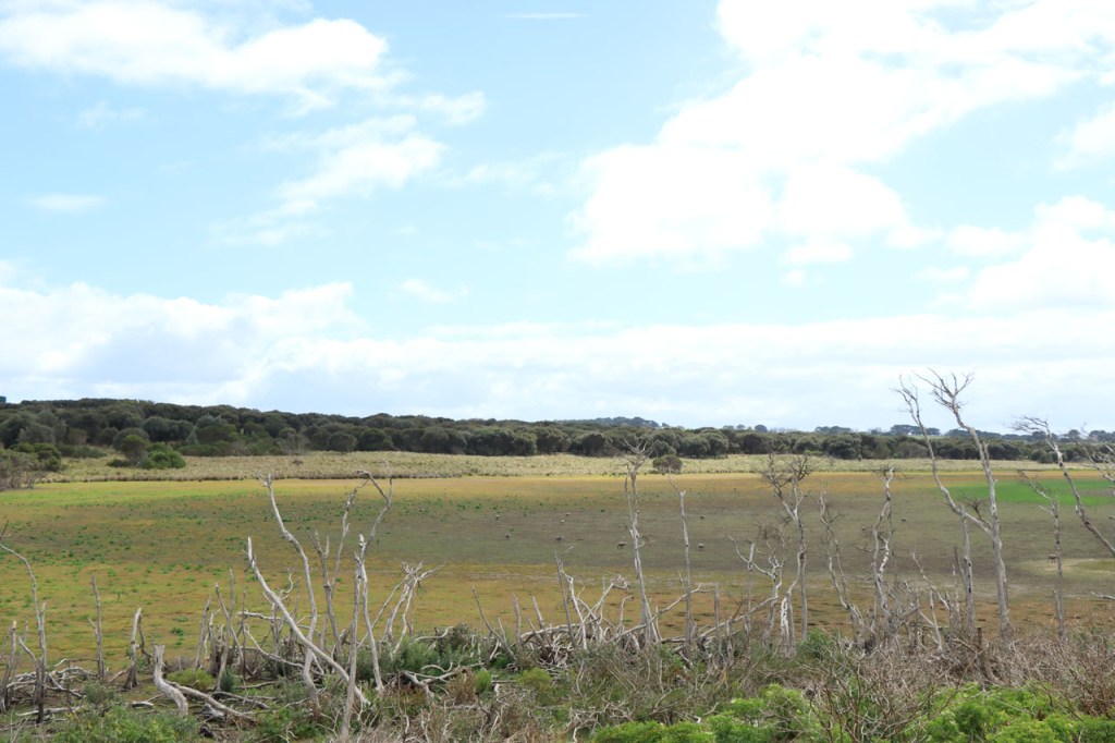 Ik was gisteren door een paar mensen gewaarschuwd dat het vandaag bijzonder warm zou worden en begon er dus wat vroeger aan om aan de grootste hitte te ontsnappen, dat is ook goed gelukt. Vanmorgen was het nog best fris en even na de middag was ik al op bestemming, voor het echt warm werd dus. Ik trok halfweg wel mijn lange mouwen shirt uit, dat was al weken geleden dat ik nog eens in korte mouwen fietste. Tijdens mijn eerste rit, Adelaide naar Kangaroo Island, vreesde ik dat het een wel heel warme reis zou worden maar sindsdien had ik van dat gevoel geen last meer. Ik voelde vandaag ook wel dat de wind gedraaid was, ik had tot hiertoe de hele tijd zuidenwind en hier betekent dat dus frisjes. Vandaag kwam hij eerder uit noordwesten en was beduidend minder fris. De rit van vandaag was vrij eventloos, over rustige wegen maar weinig spectaculair.