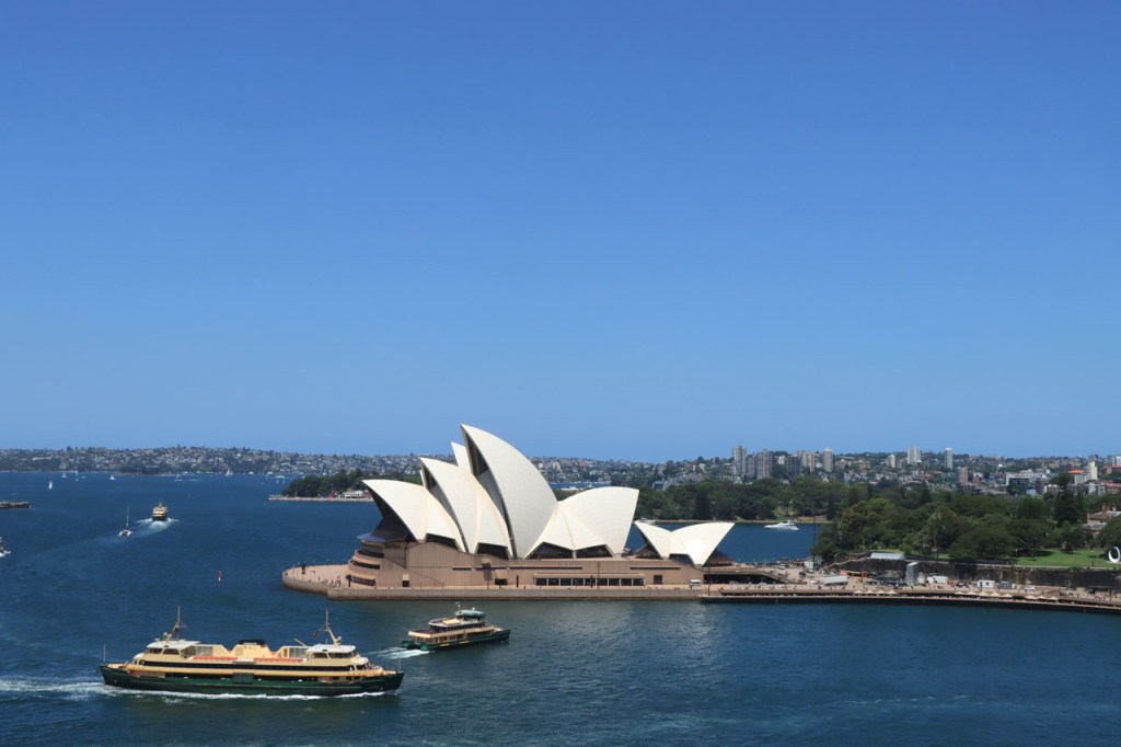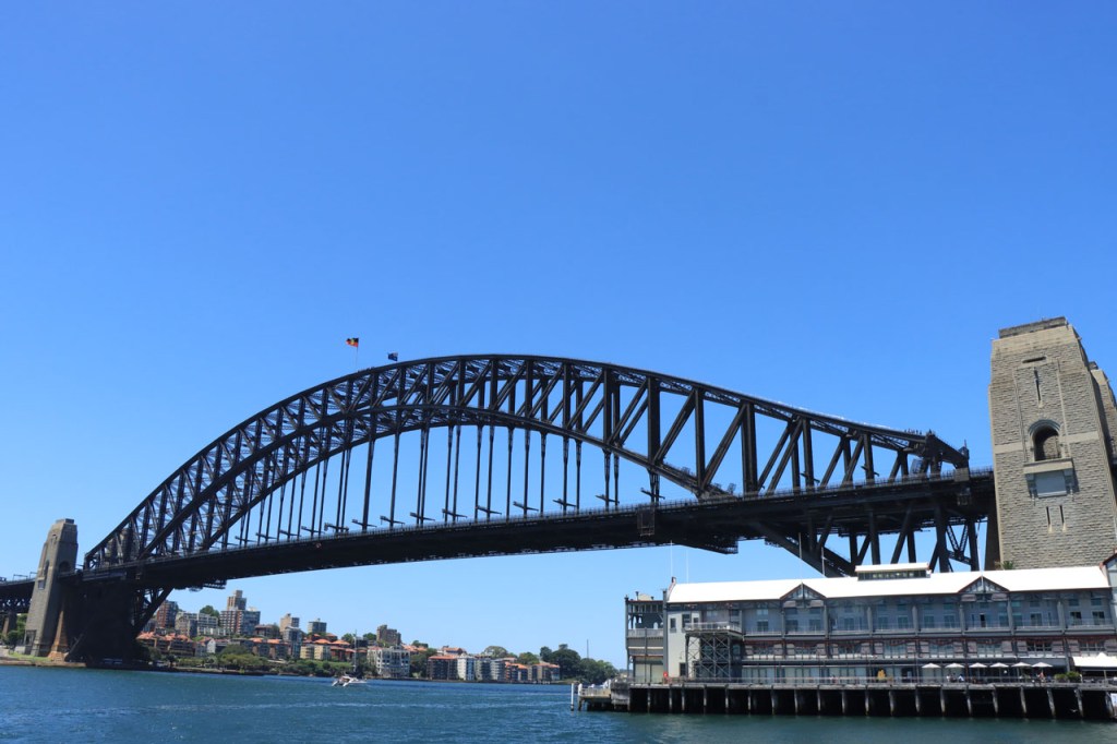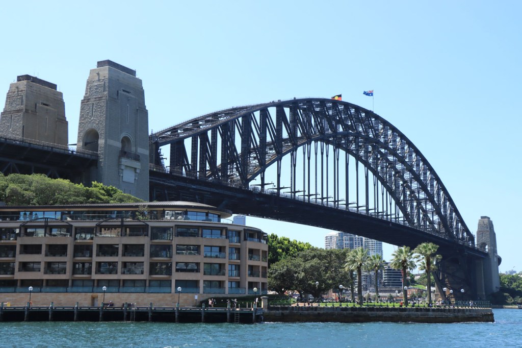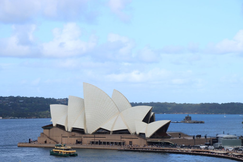 Voor de veranderlijkheid begon de dag mooi blauw. Kort na mijn vertrek werd het echter al snel weer grijs, met een lichte neiging tot vochtigheid, om een eind verder al even snel weer mooi blauw te worden. De rit van vandaag verliep in 2 etappes, onderbroken door een voetgangers/fietsers ferry. Bij de tweede etappe zou ik al vlug in de Sydney agglomeratie komen en daar had ik dus een GPS route voor gemaakt, tot aan de Harbour Bridge want routeyou wou me niet over de brug laten fietsen. Routeyou weet overigens ook niet dat er in Australië links gereden wordt, mijn Gps route liep altijd langs de andere kant van de weg 😦 . Ik reed Sydney centrum dus binnen over de beroemde Harbour Bridge. Het was wel even klauteren om daar op te geraken, er wordt gewerkt aan een fietsramp maar die zal pas in 2025 klaar zijn. Fietsers en wandelaars hebben overigens elk hun zijde van de brug, de wandelaars mogen langs de Opera kant. Aan de overkant hielp het dat ik al enige voorkennis had maar toch liep het nog een beetje mis. Daarmee zit het fietsen er dus op en ik moet eerlijk zeggen, het mocht ook wel stilaan. Het voortdurende klimmen, met bepakking, in de warmte en schijnbaar telkens weer onder een stralende zon, begon toch wel wat door te wegen.
